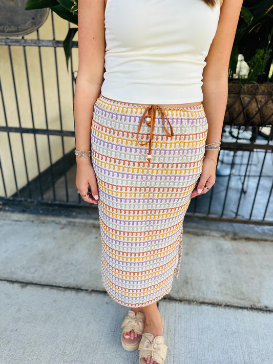 Beverly 2 PC Button Vest & Midi Skirt Knit Set- Gray