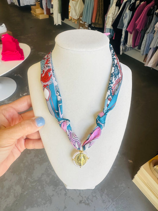 Scarf Necklace- Bright Blossom/Rhinestone Mary