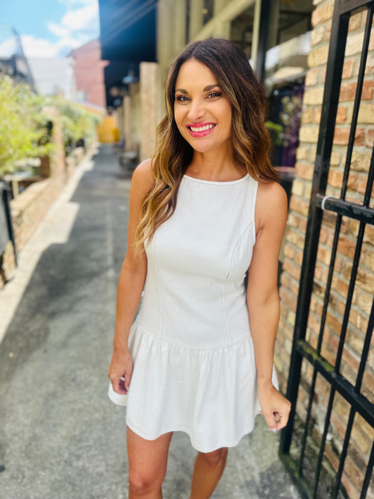 Cantrelle Pleated A-line Mini Dress- Mocha