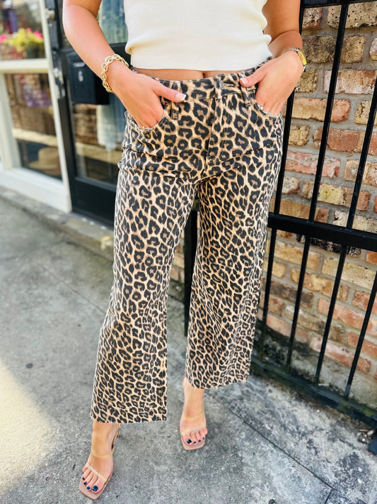 Sold outDean Leopard HR Slim Wide Leg Denim