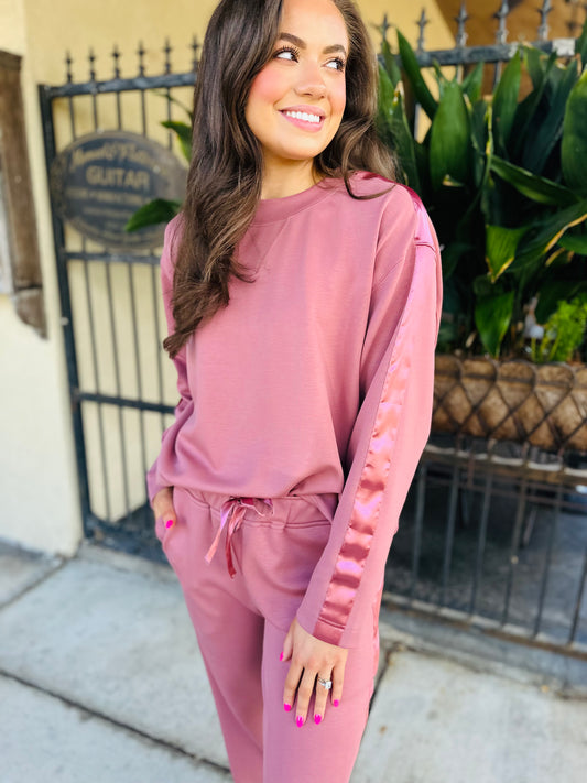 Stripe Velvet Edge Pajama SET- Pink/Red
