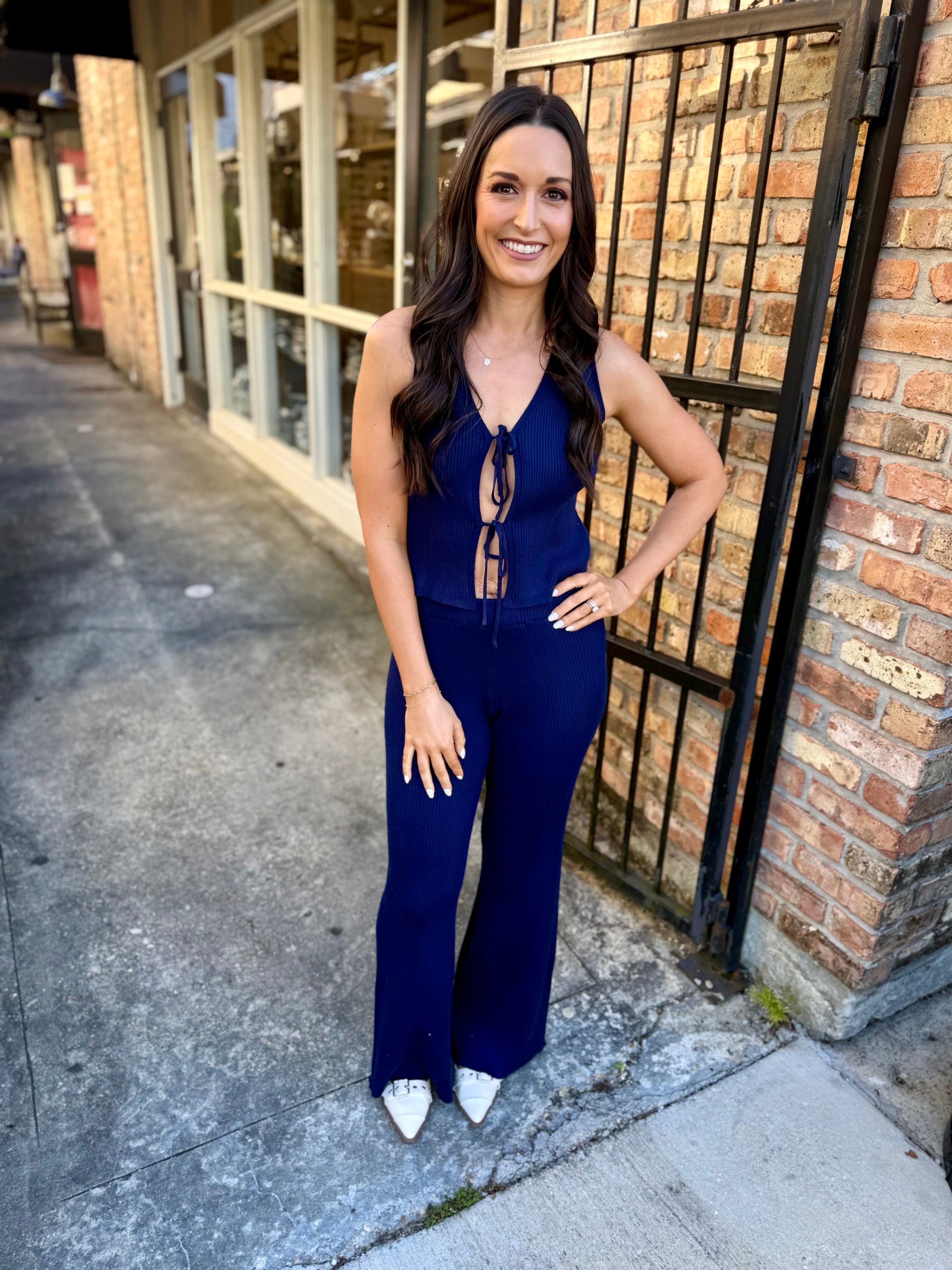 Get ready to turn heads in these navy fly away pants! Crafted with a ribbed texture for a flattering fit, the straight leg silhouette keeps things timeless and versatile. Designed to perfectly complement the matching Adamas Fly Away Tank, this duo creates an instantly put-together look. Whether you're running errands or meeting friends, these pants deliver comfort without compromising on style. Mix, match, and make them your own!
