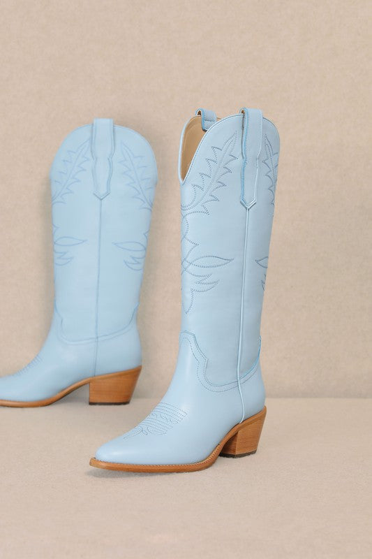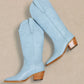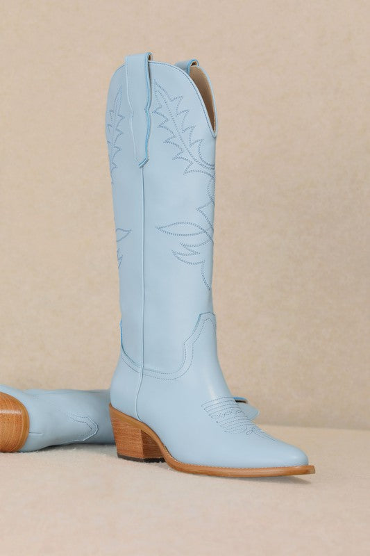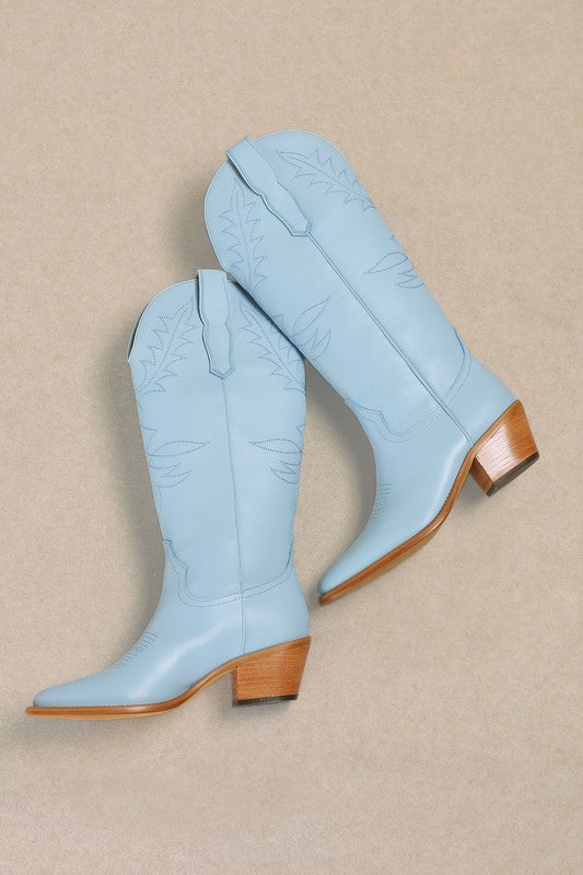 Unleash your inner cowgirl with Adel Boots in blue! These chunky heeled cowboy boots are perfect for any festival or country concert. Put some pep in your step with Adel Boots!
