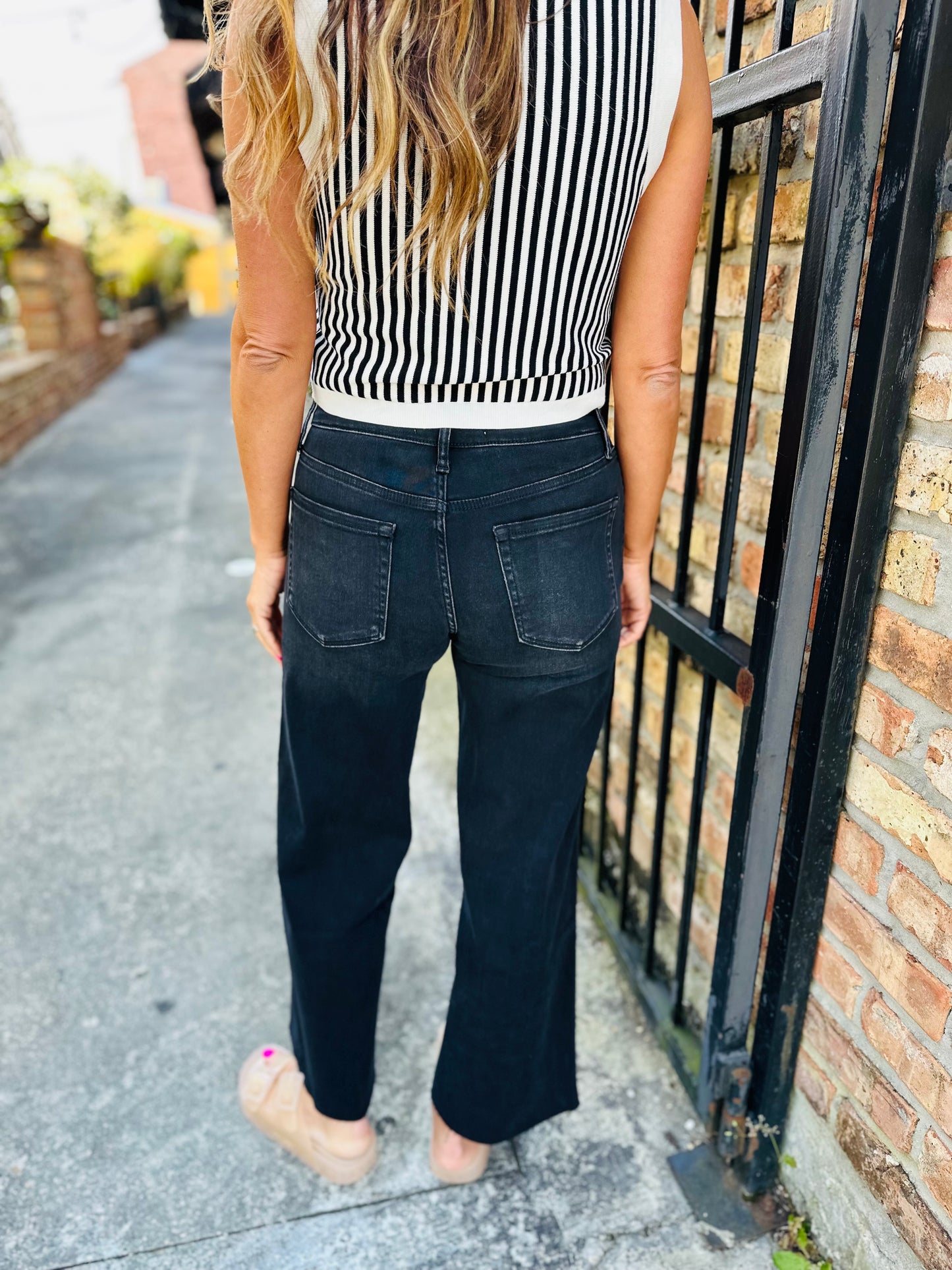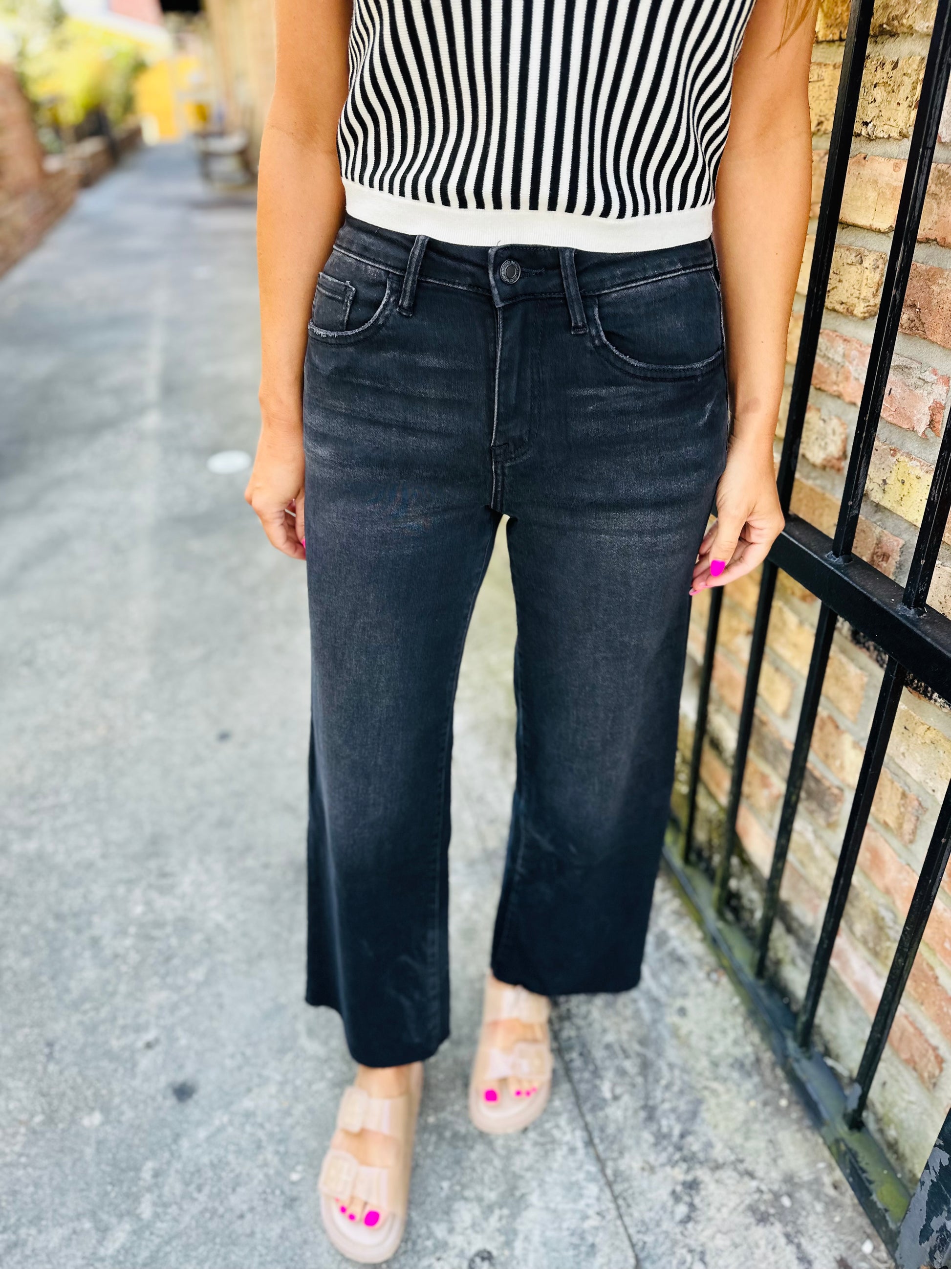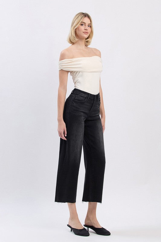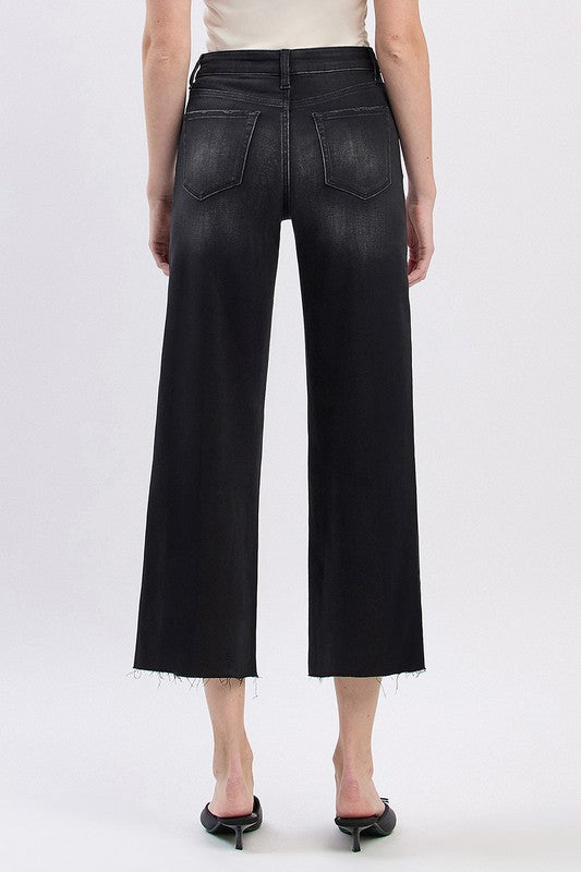 Elevate your style with Aileeah HR Cropped Wide Denim. These high rise jeans offer both comfort and fashion. Make a statement with this versatile piece that pairs perfectly with almost any top. Show off your unique edge in black.