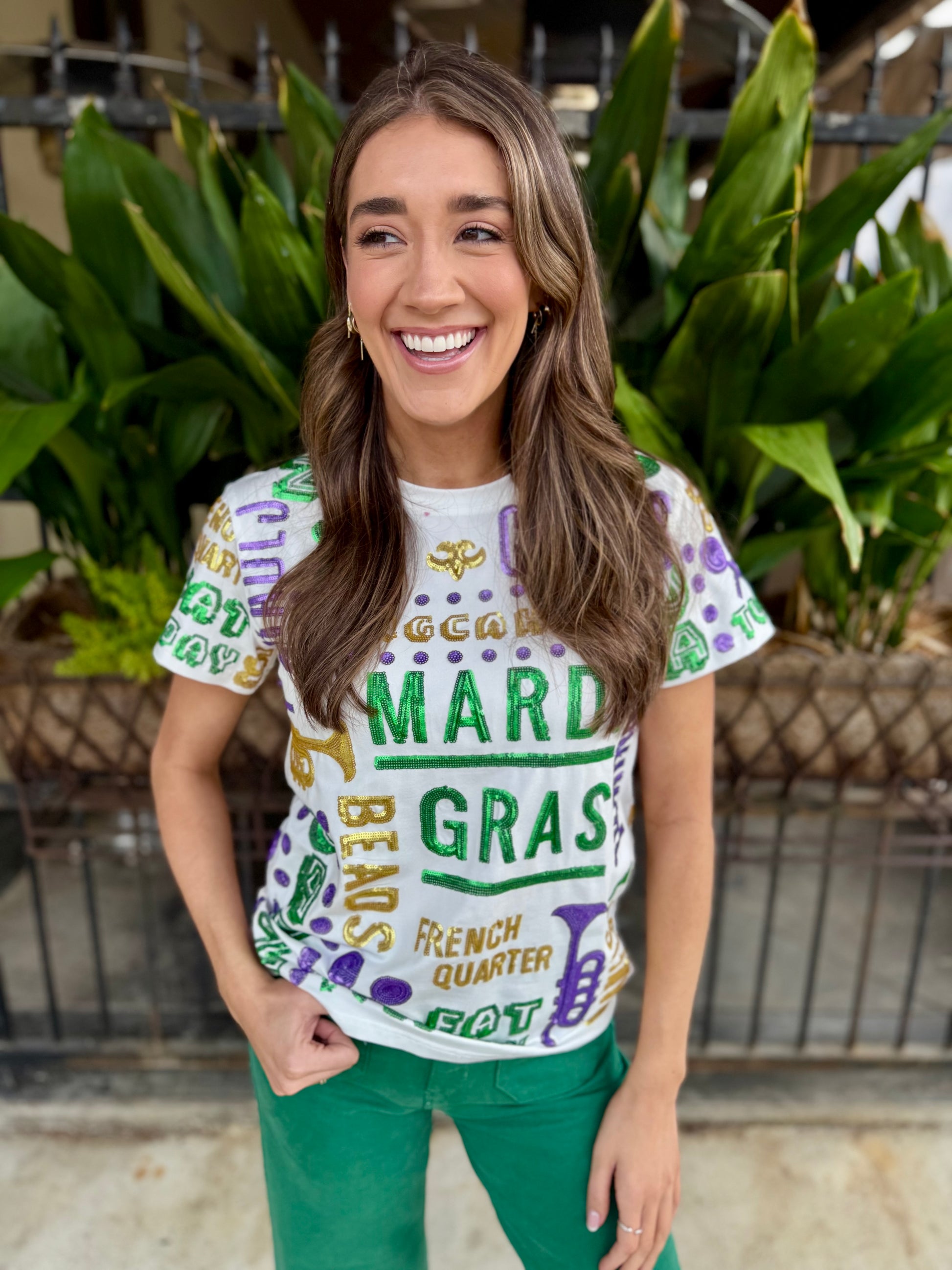 Celebrate the spirit of New Orleans with this vibrant All Things Mardi Gras Shirt! Adorned with shimmering sequins, this festive tee captures everything you love about the season—from jazzy saxophones and lively parades to colorful masks and crawfish boils. Perfect for carnival season, themed parties, or anyone who wants to bring that Big Easy energy year-round. Let the good times roll in style!