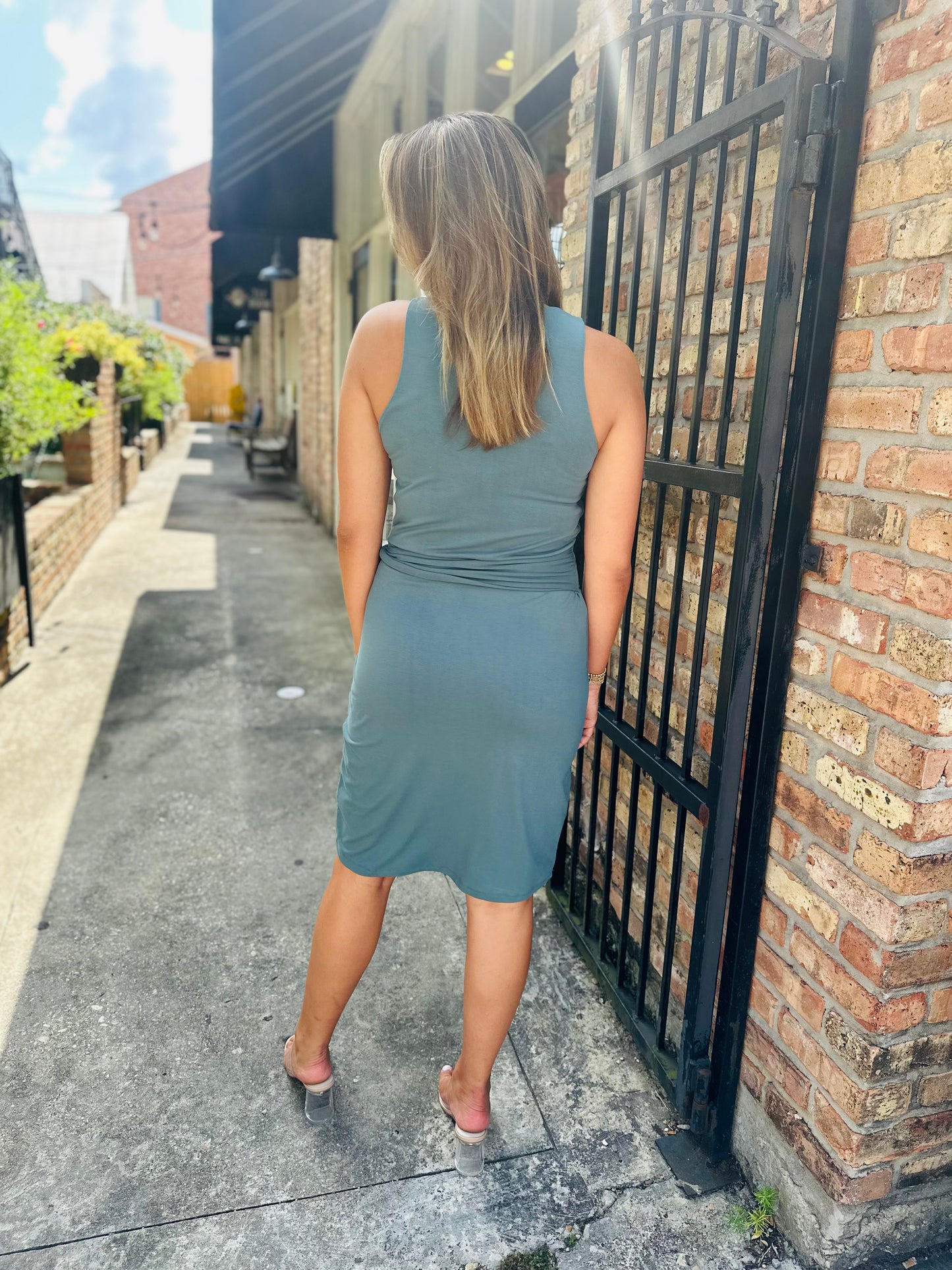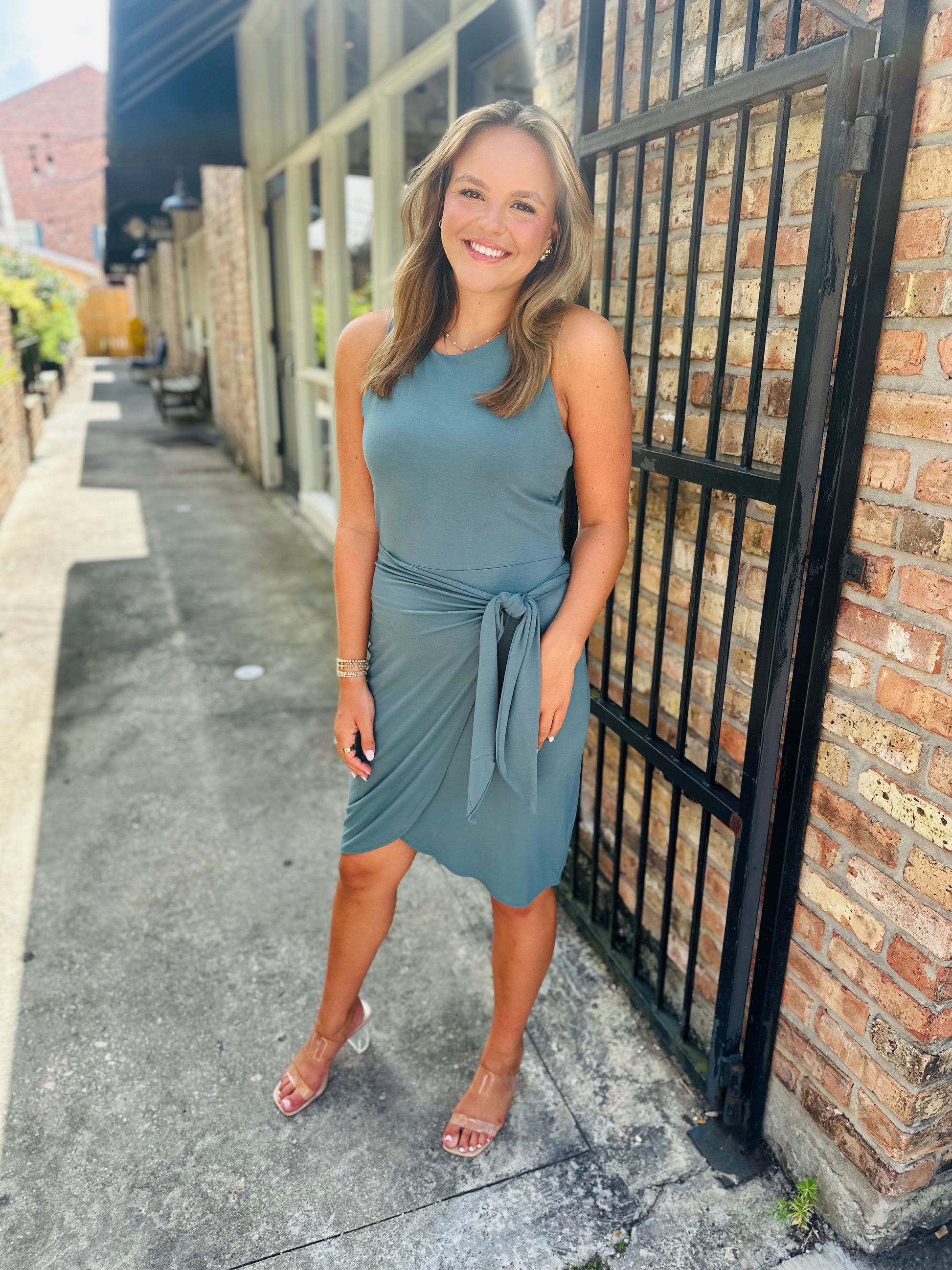 The Archer Dress in Dusty Teal combines a playful scoop neck with a chic wrap-style skirt, giving you a relaxed yet polished look. Its fitted silhouette flatters your shape while the wrap detail adds a touch of effortless charm—perfect for days when you want to feel stylish without trying too hard.