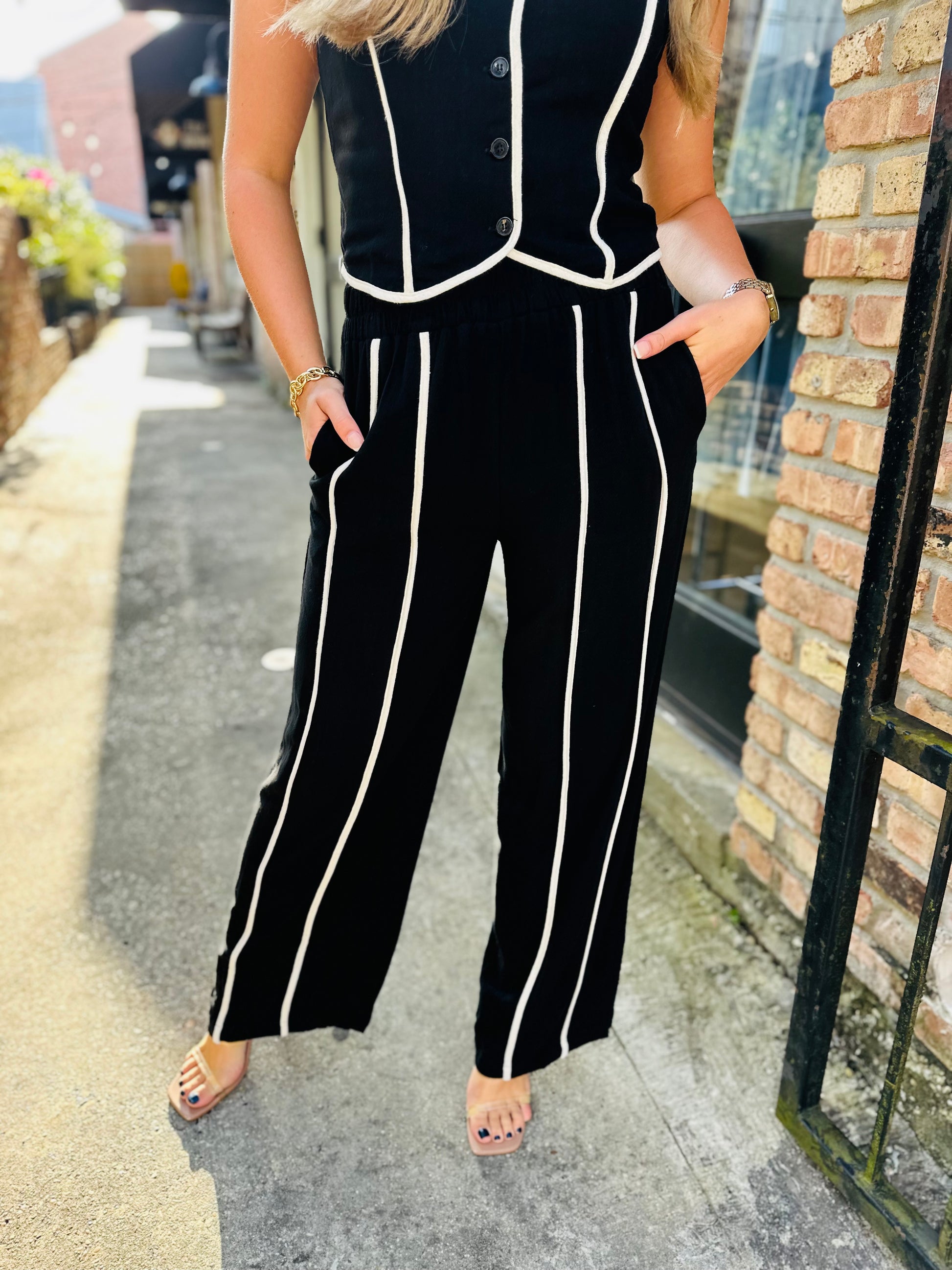 Step into laid-back style with our Binding Linen Pants. Made with a breathable linen fabric and accented with unique binding details, these pants are perfect for a casual day out or summertime dinner. The elastic waistband and side pockets provide comfort and convenience, while the matching Binding Linen Vest adds an extra touch of coordination. Embrace natural charm with these pants.