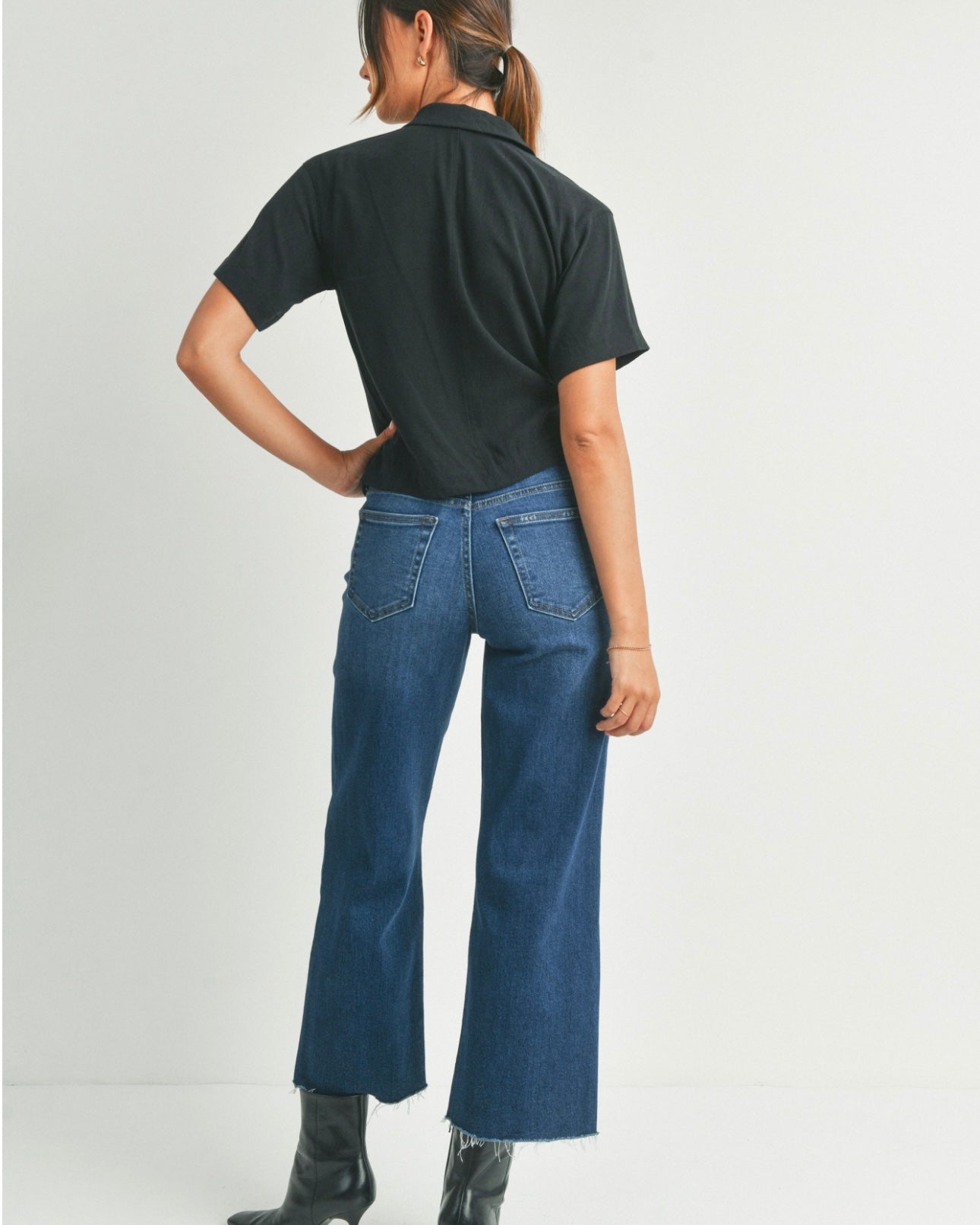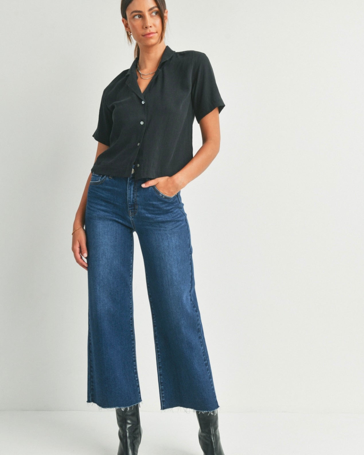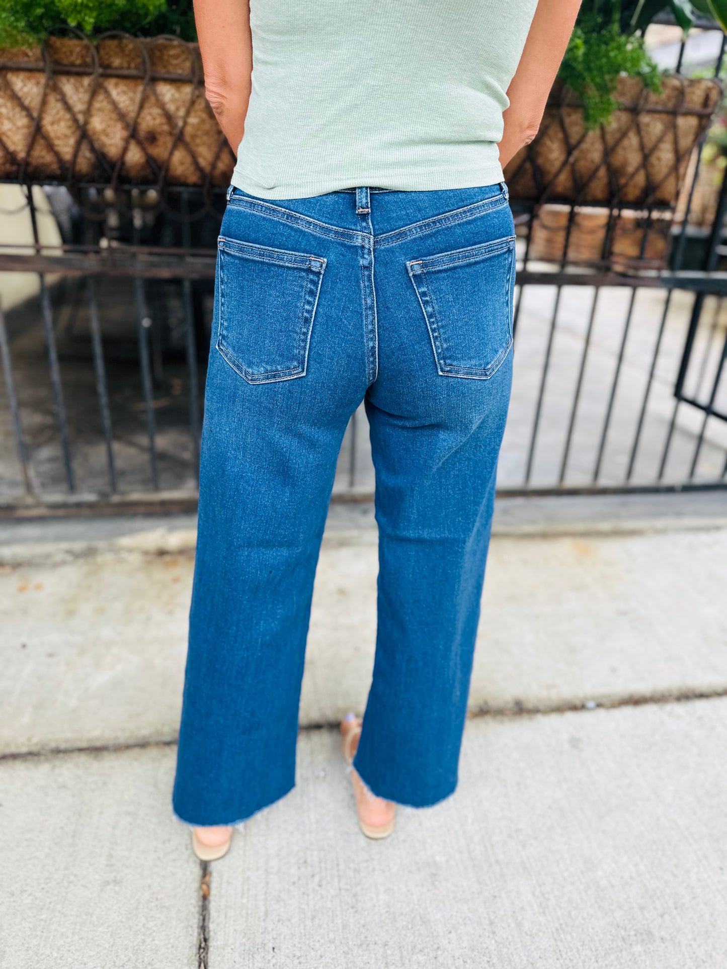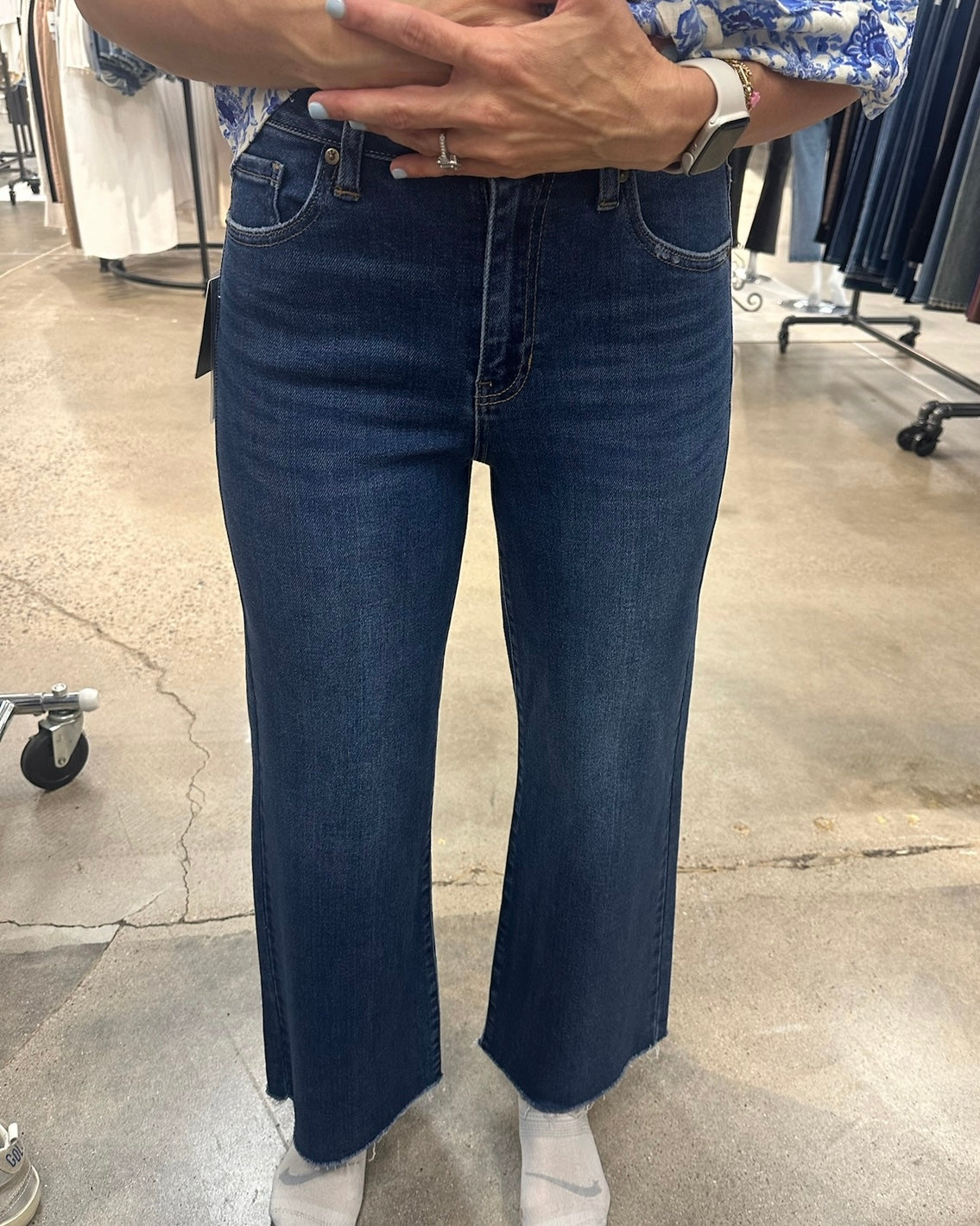 Get ready to rock the Blakely Slim Wide Leg Denim! This trendy pair features a slim wide leg cut, perfect for showing off your killer style. With a dark denim wash, these jeans will bring a touch of effortless cool to any look. Go ahead and make a statement in the Blakely jeans!