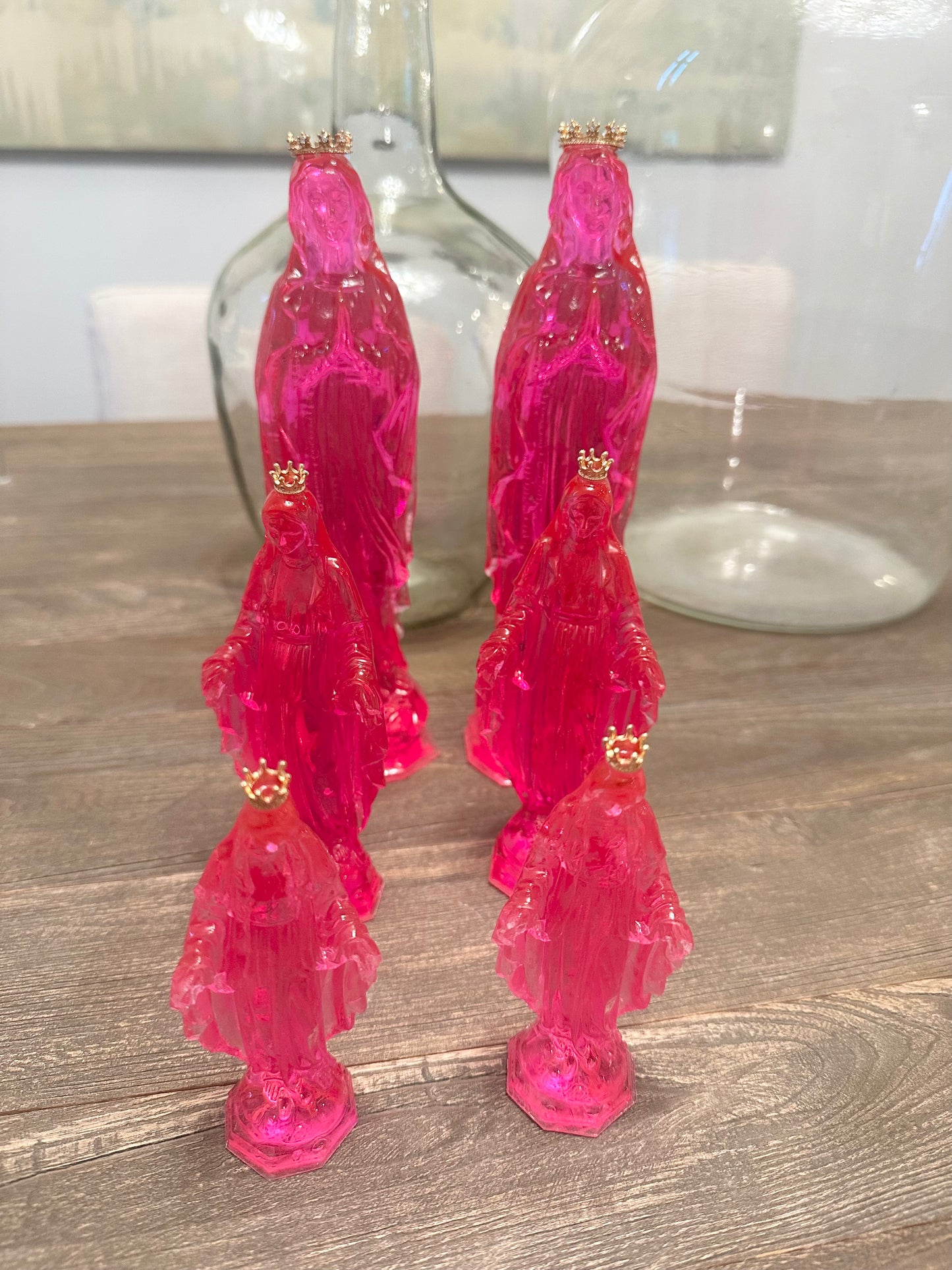 Each of our colorful, transparent Blessed Mother statues is lovingly handcrafted in a local art studio, making every piece a one-of-a-kind work of art. Crafted from high-quality resin, these radiant statues offer a modern, artistic interpretation of the Blessed Mother.