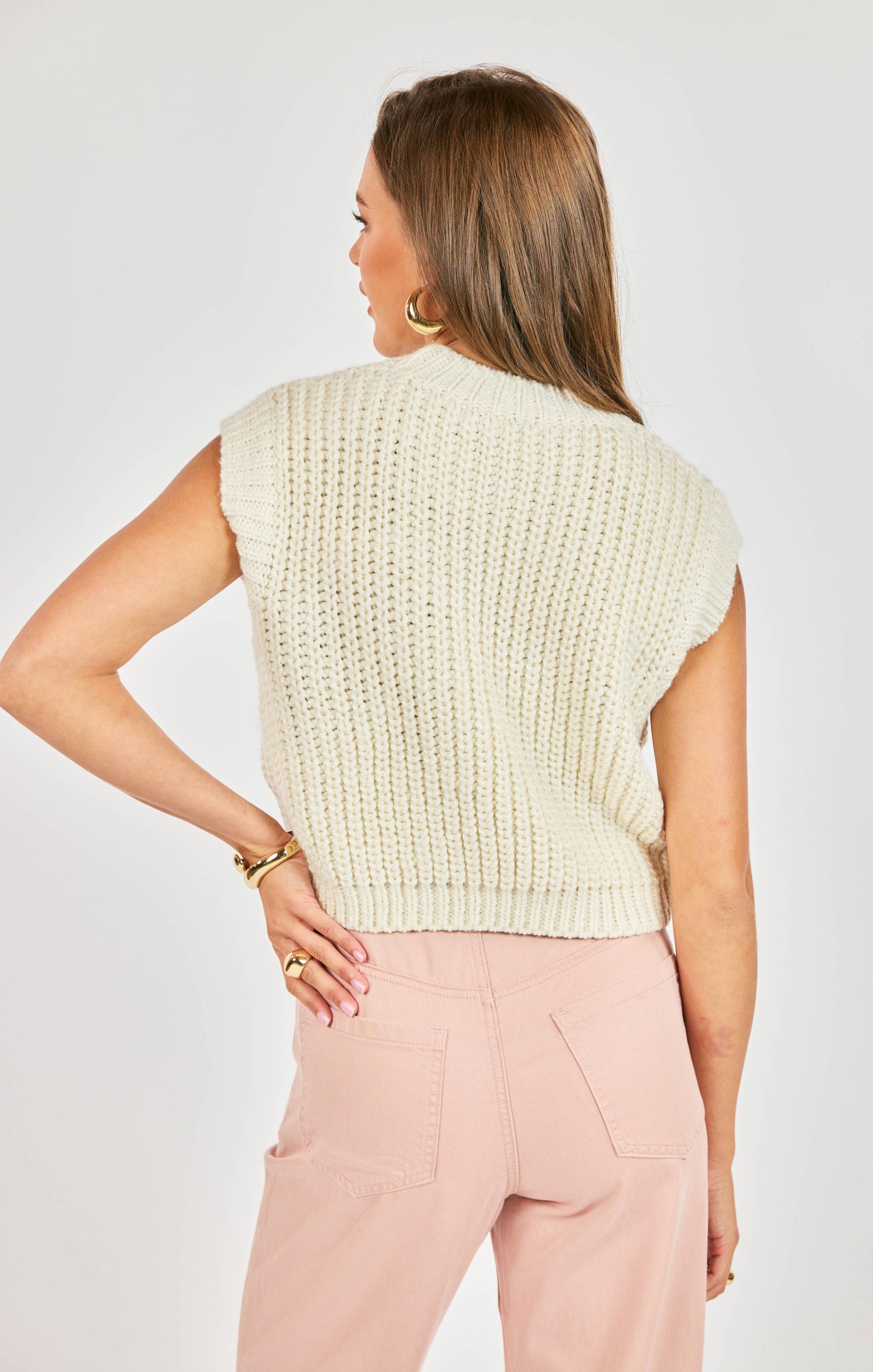 Layer this cozy chunky handknit tank over your favorite tee or style it solo with denim for an effortlessly chic vibe. The sleeveless design pairs beautifully with skirts for those days when you want to look put-together without trying too hard. Crafted by hand, each piece has its own unique character—because who wants to blend in anyway?