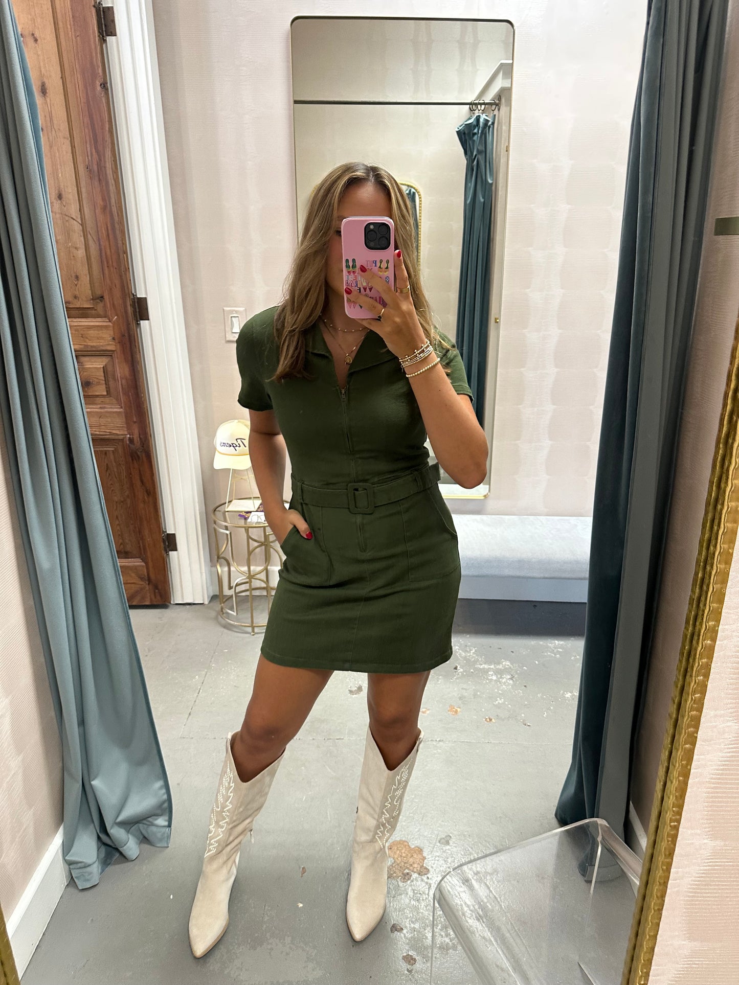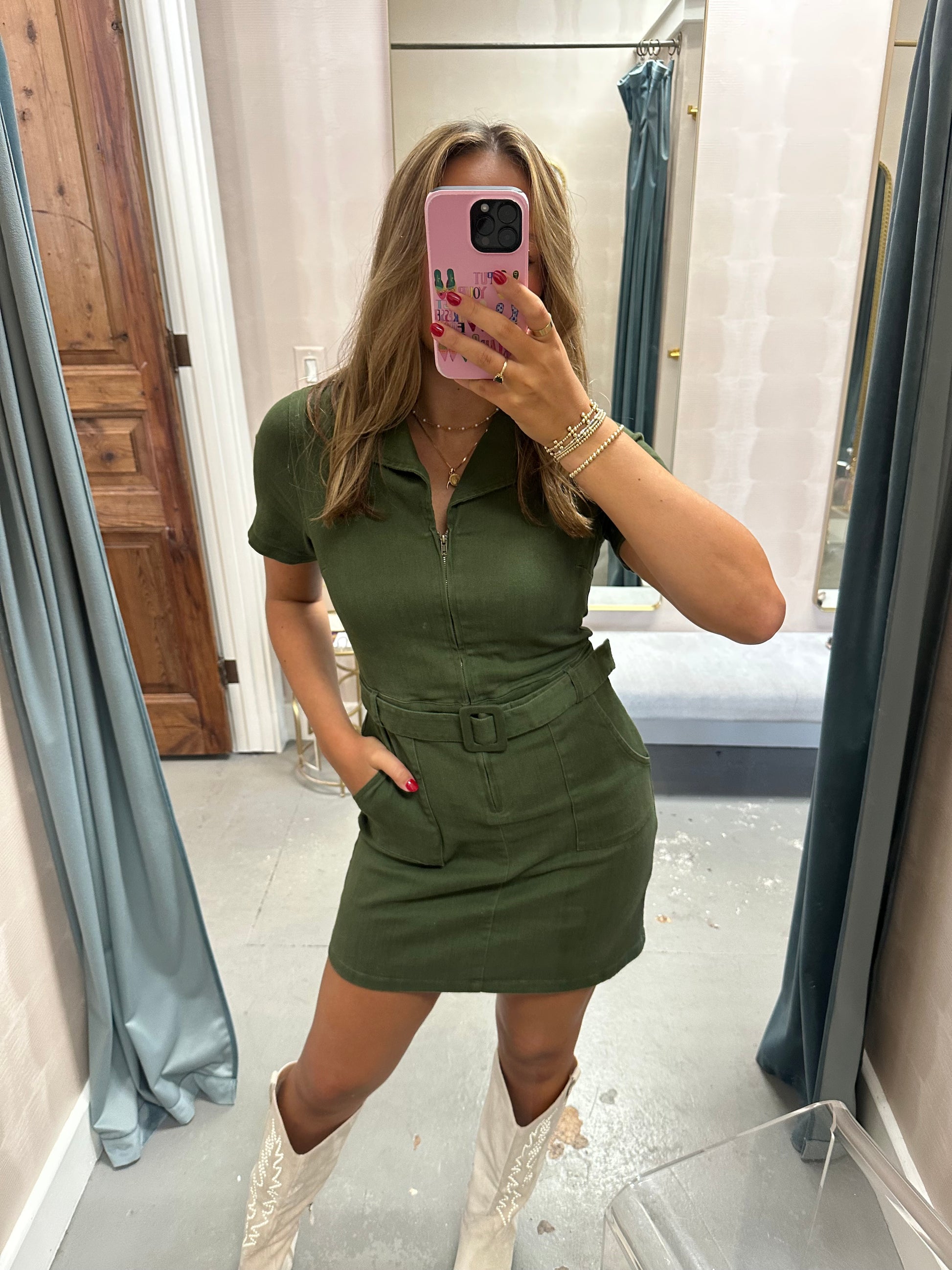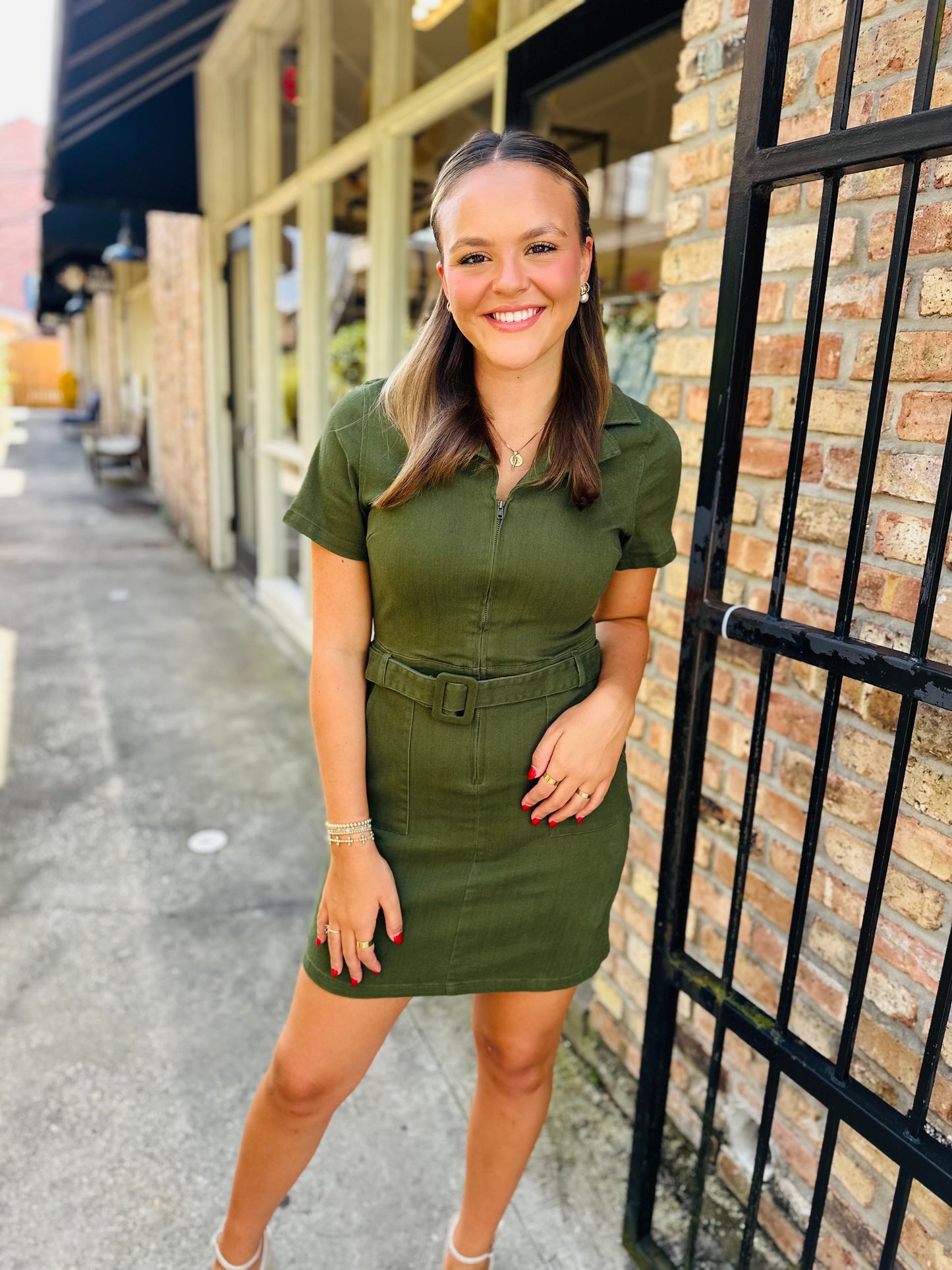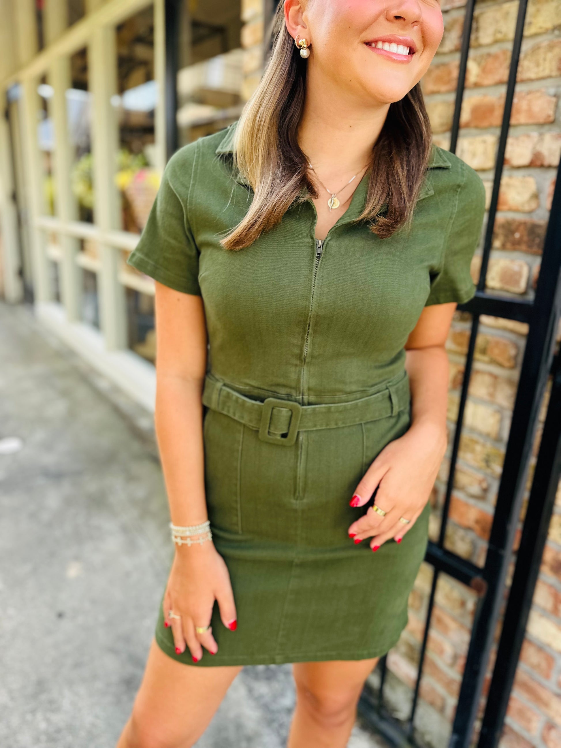 Upgrade your transitional/fall wardrobe with the Clear Eyes Belted Dress! This playful dress features a zip front for easy wear, while the belted waist adds a touch of style. Perfect for transitioning into, fall, this dress will keep you feeling happy and looking stylish. (And who doesn't want that?!)