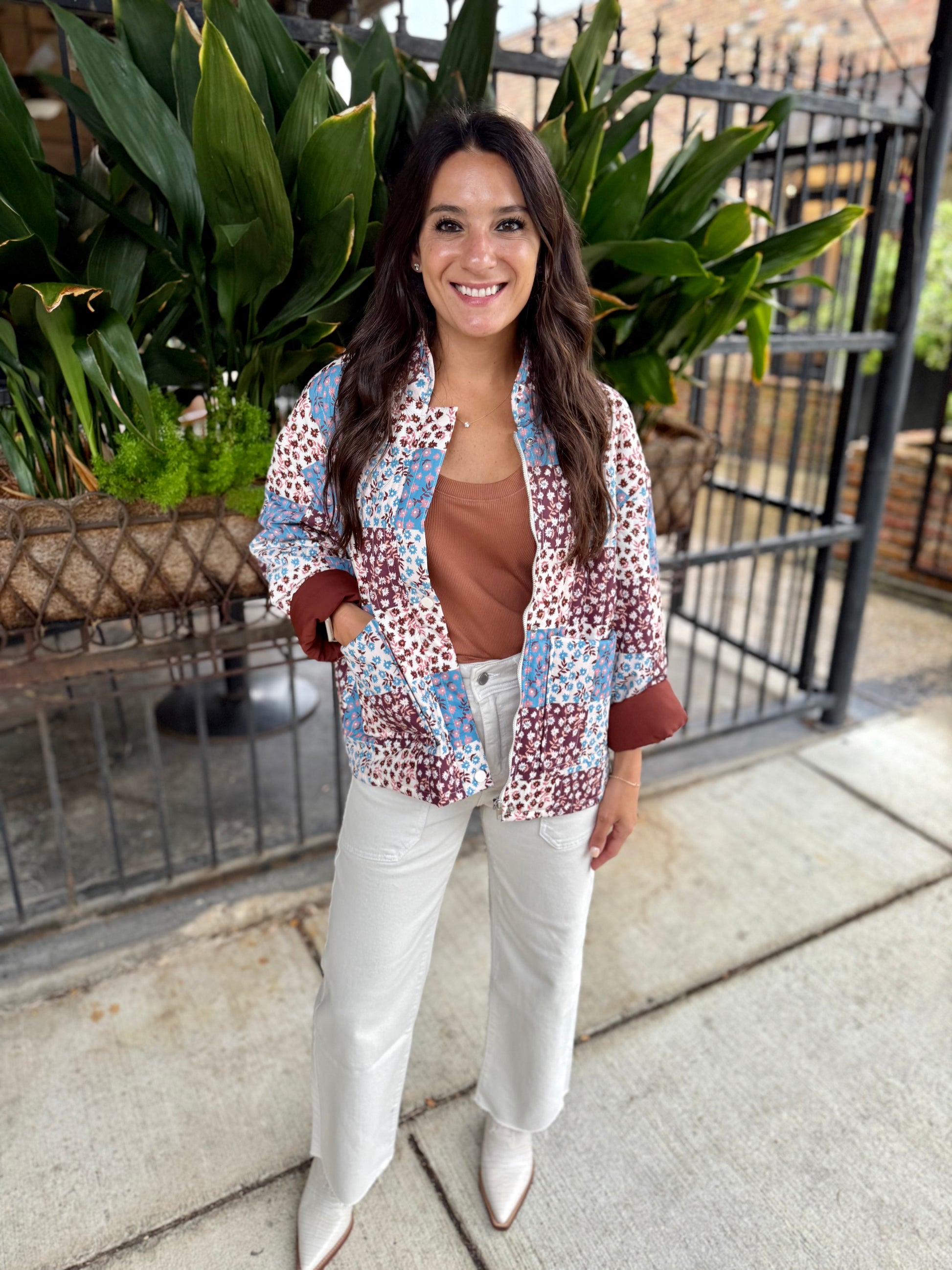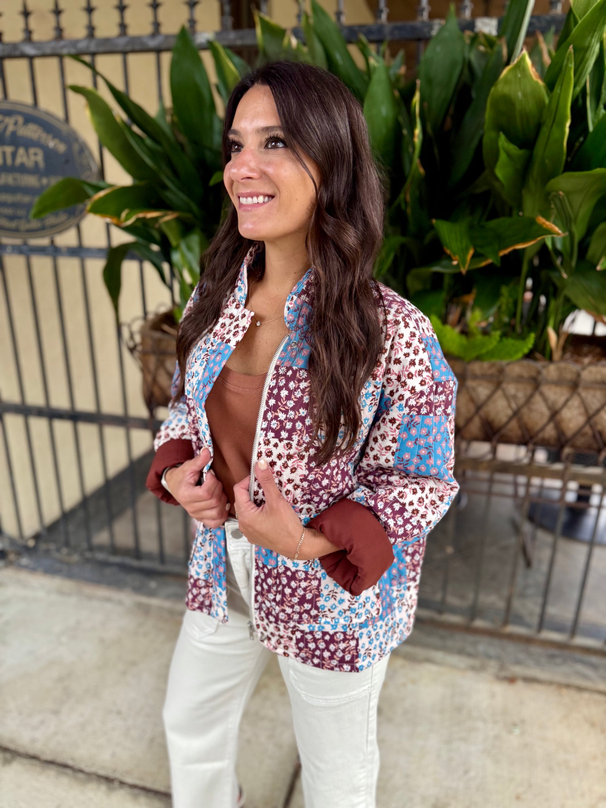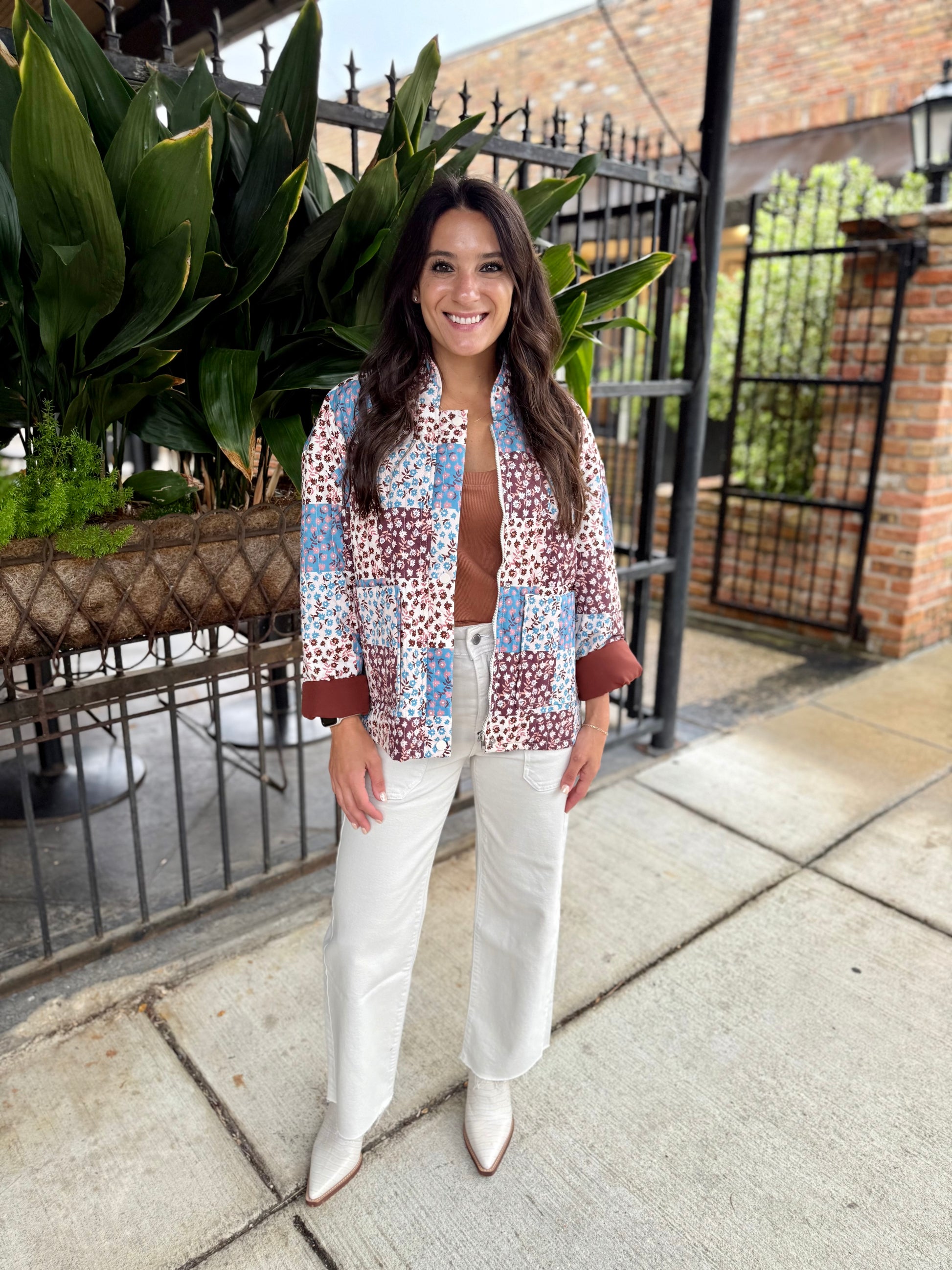 Stay cozy and stylish with the Collector Patchwork Quilted Jacket in Blue Multi. This playful jacket combines trendy patchwork design with soft quilting for a sweet, comfy fit that’s perfect for layering. Add a pop of color and charm to your outfit while staying warm and snug all day long.