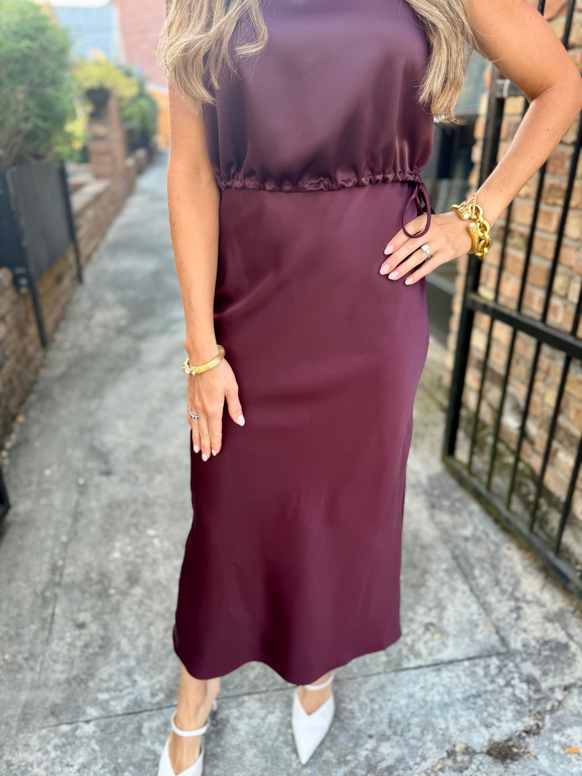 Flirt with fun in the Deep Trance Cropped Tank in rich wine color. Featuring playful side ties, this top lets you customize your fit while showing off just enough skin. Style it your way and own your vibe! Matches the Deep Trance Maxi Skirt for a set look.