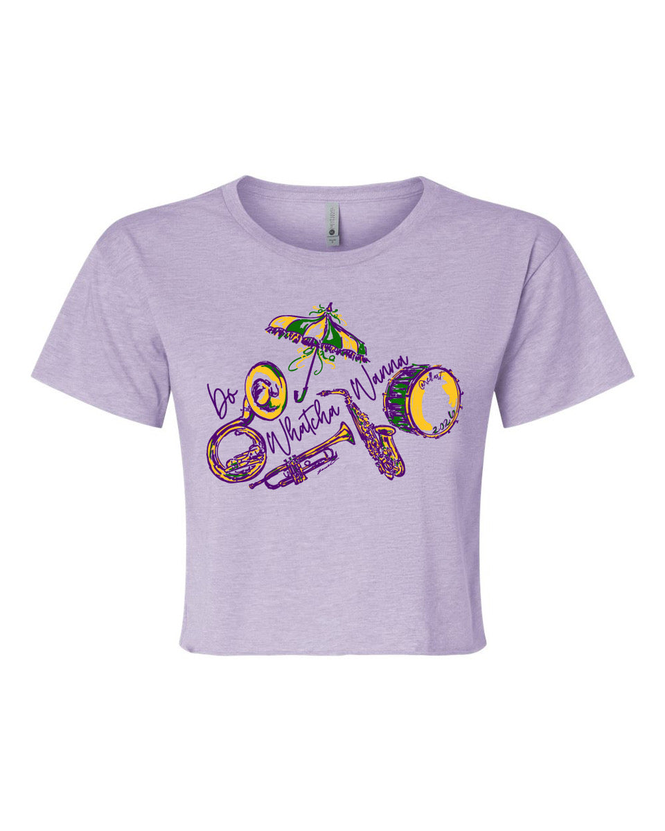Embrace your inner rebel with this playful cropped tee that screams "Do Whatcha Wanna!" Perfect for Mardi Gras celebrations or whenever you're feeling bold and carefree. The cropped silhouette offers a fun, flirty vibe that pairs effortlessly with high-waisted bottoms. Whether you're hitting the parade route or making a statement at your favorite Mardi Gras party, this tee lets your personality shine. Comfortable, cheeky, and unapologetically you.
