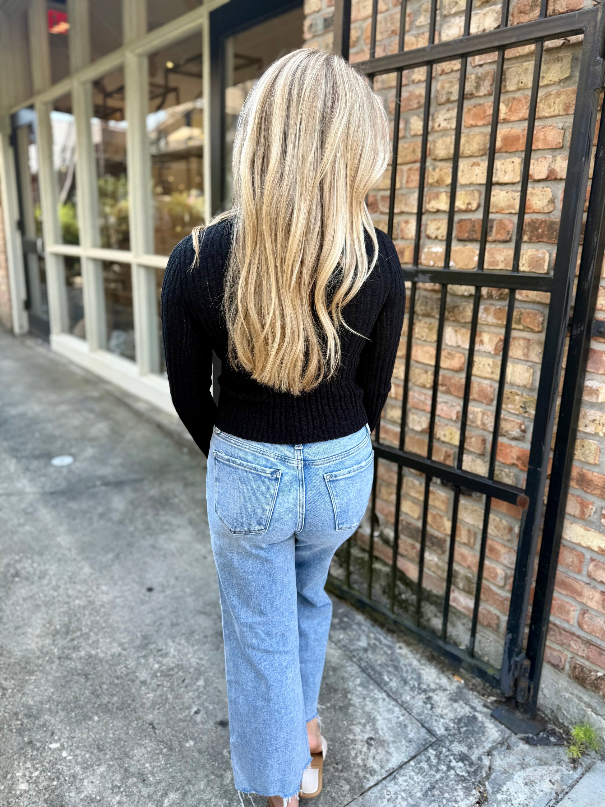 Embrace cozy charm with the Dylan Ribbed Knit Sweater. Its slim fit and crew neckline flatter your natural shape, while the playful elongated, flared sleeves bring a fun twist to any outfit. Perfect for adding a dash of sophistication to your everyday style or dressing up for a casual night out.