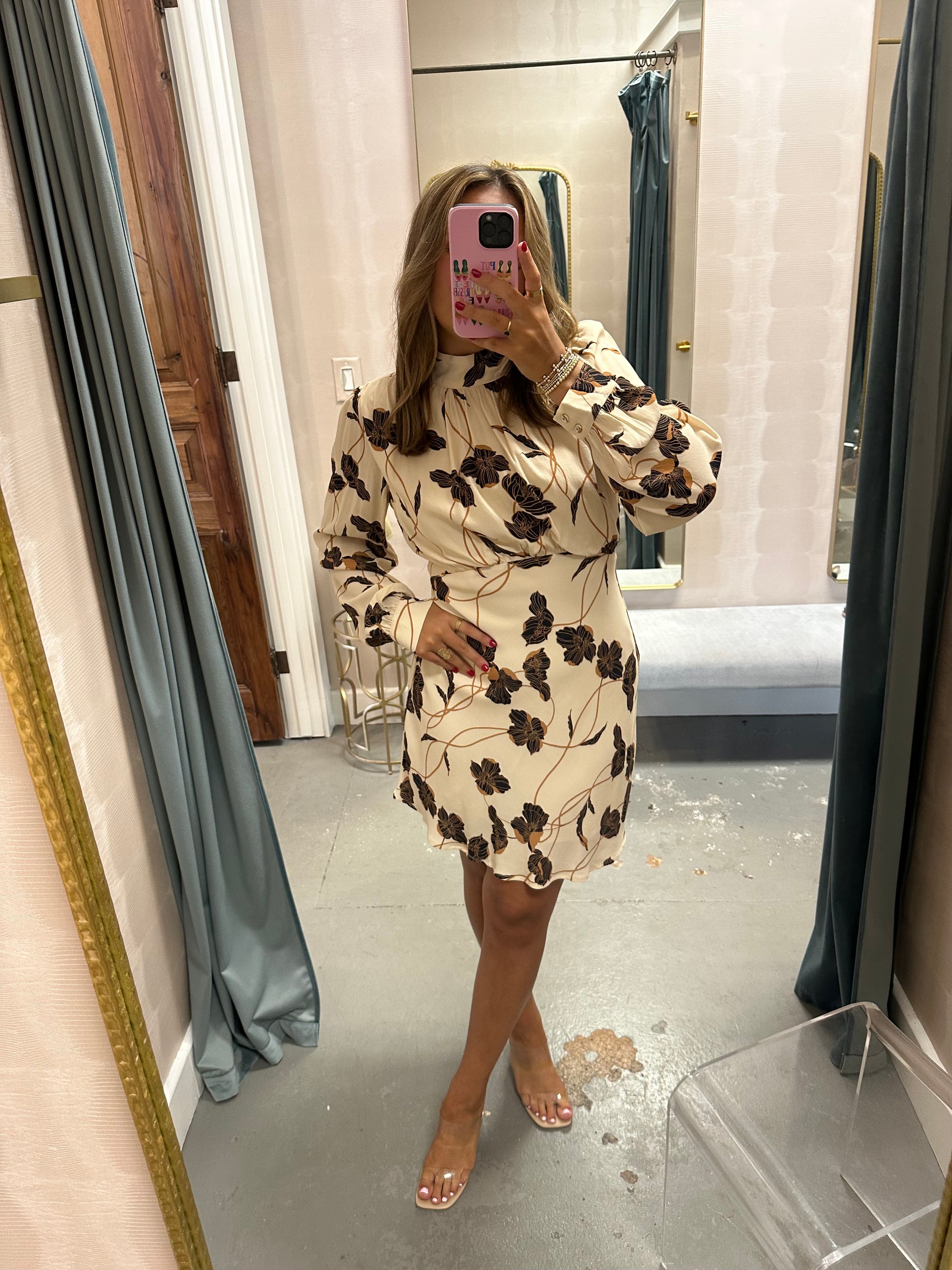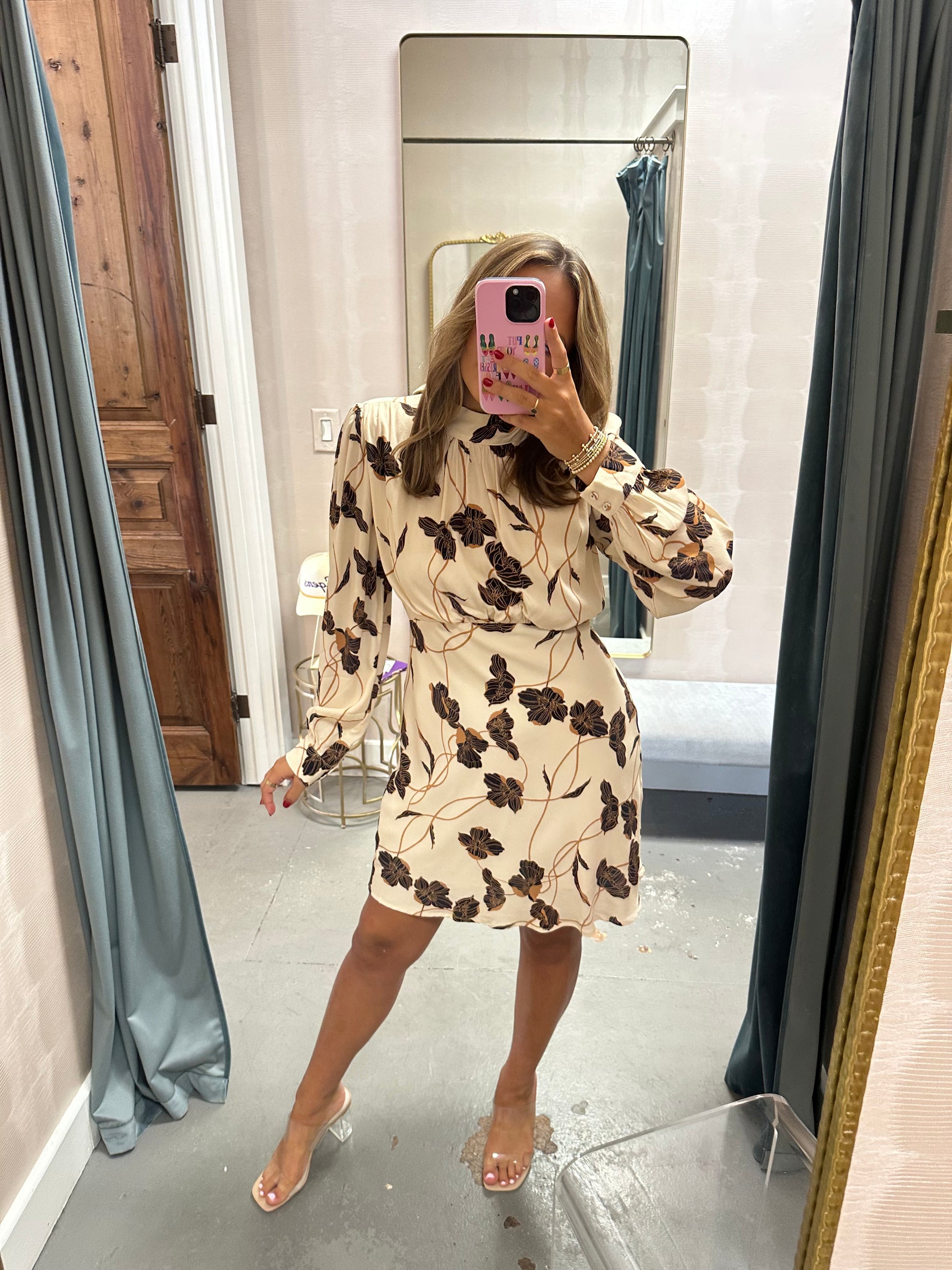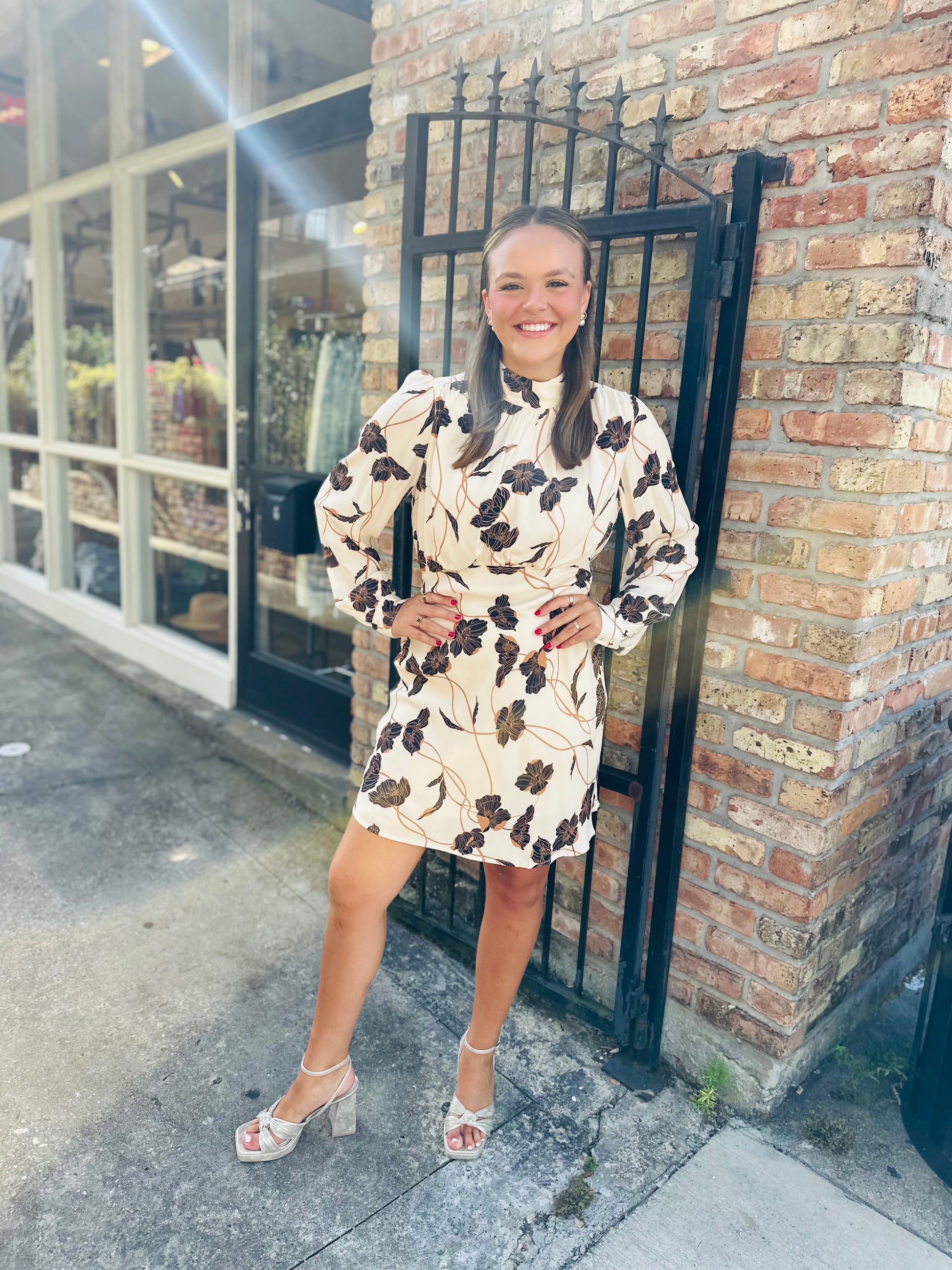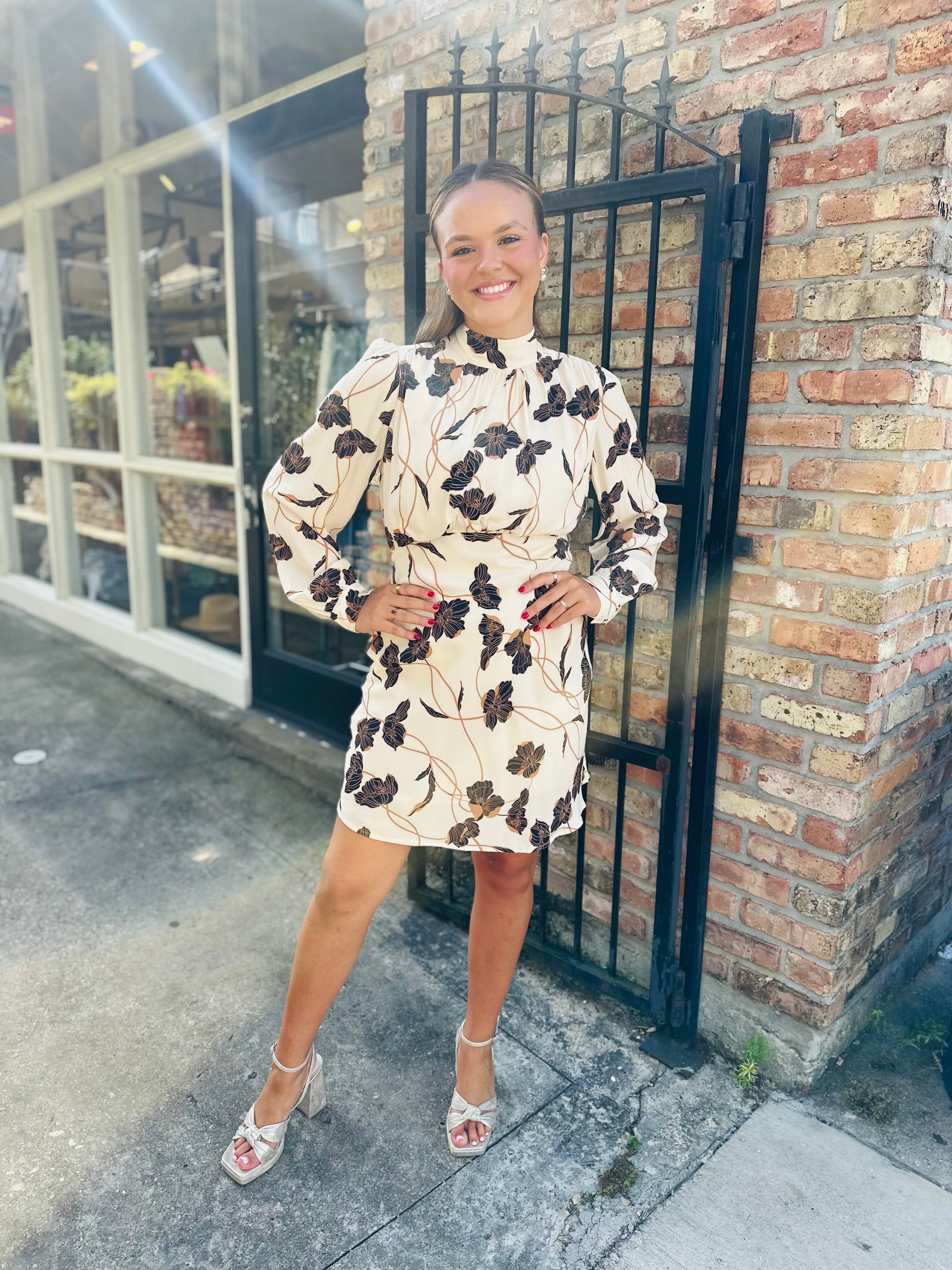 The Echoes Of Romance Mini Dress combines timeless elegance with modern design, featuring long sleeves and a high neck for a refined silhouette. An invisible zipper ensures a seamless finish, enhancing its sophisticated appeal. Perfect for occasions that call for understated grace and polished style.
