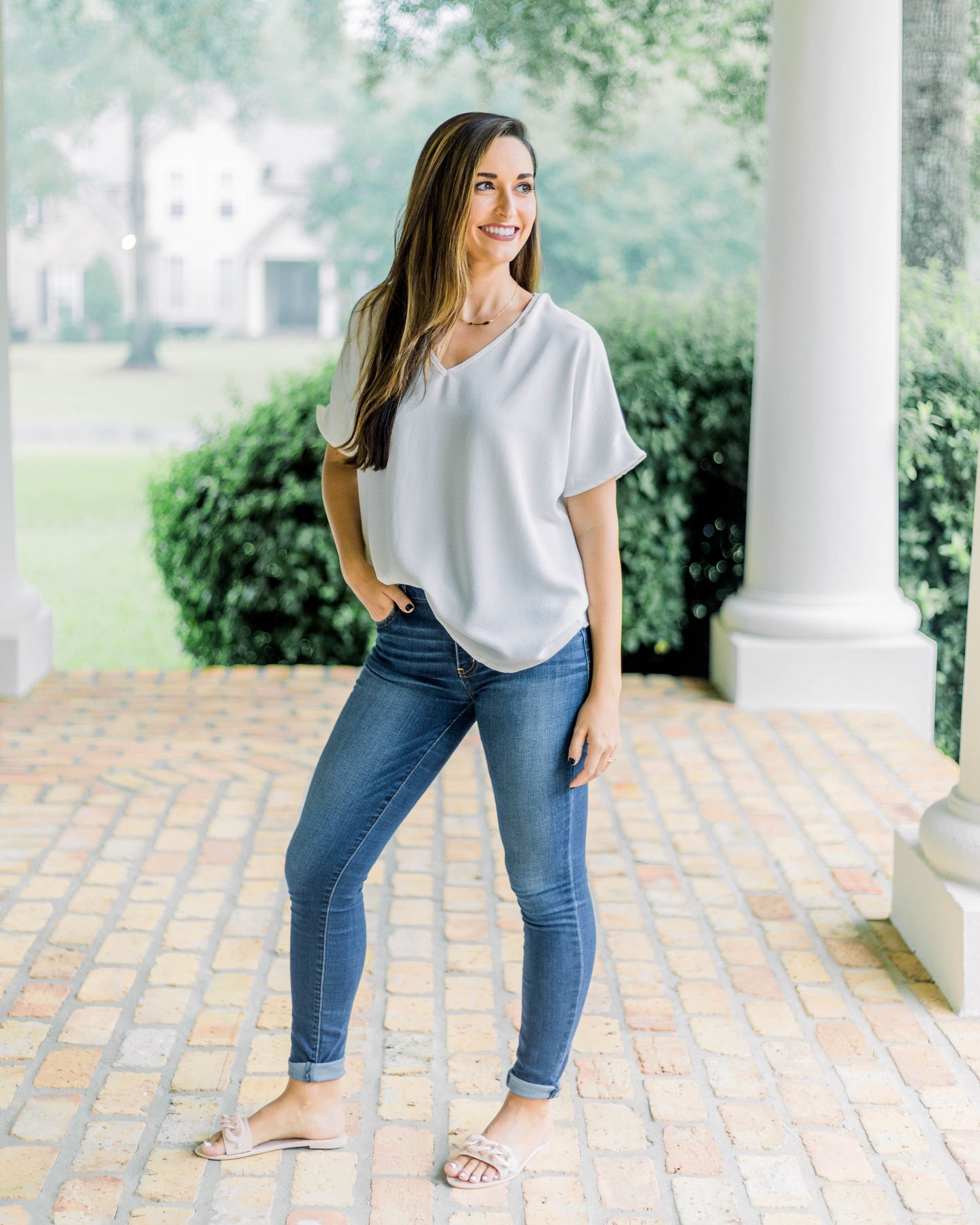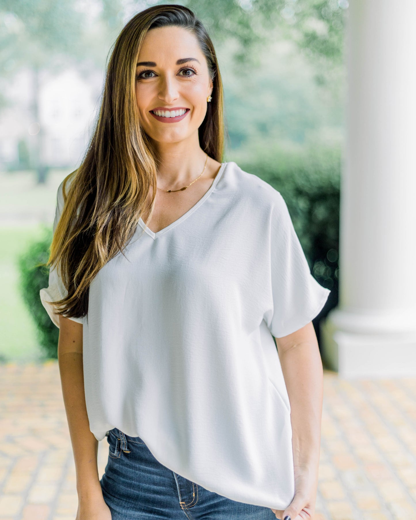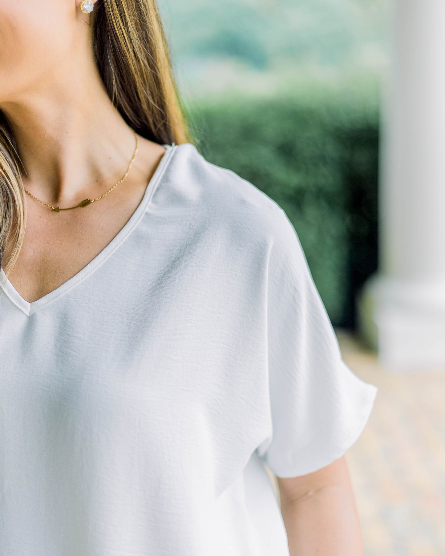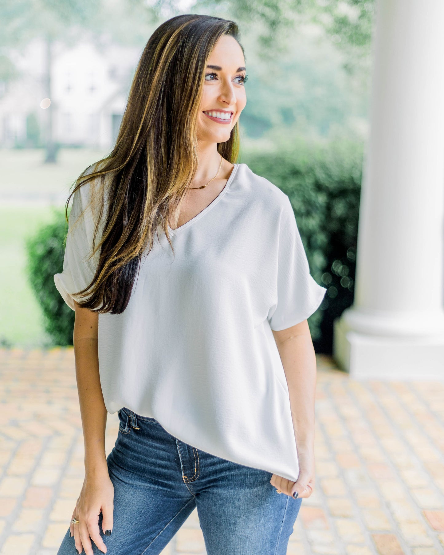 The Flowy V Blouse is a solid v-neck top featuring a rounded hem detail. The fabric is woven and super lightweight! This top can be taken from the office to the weekend. Style this one front tucked knotted, or untucked and you are sure to be back for more colors. A definite BESTSELLER!