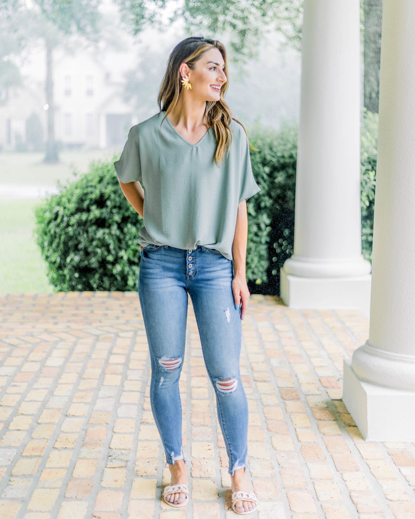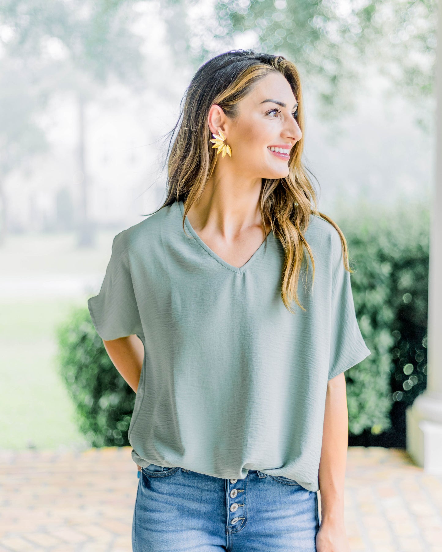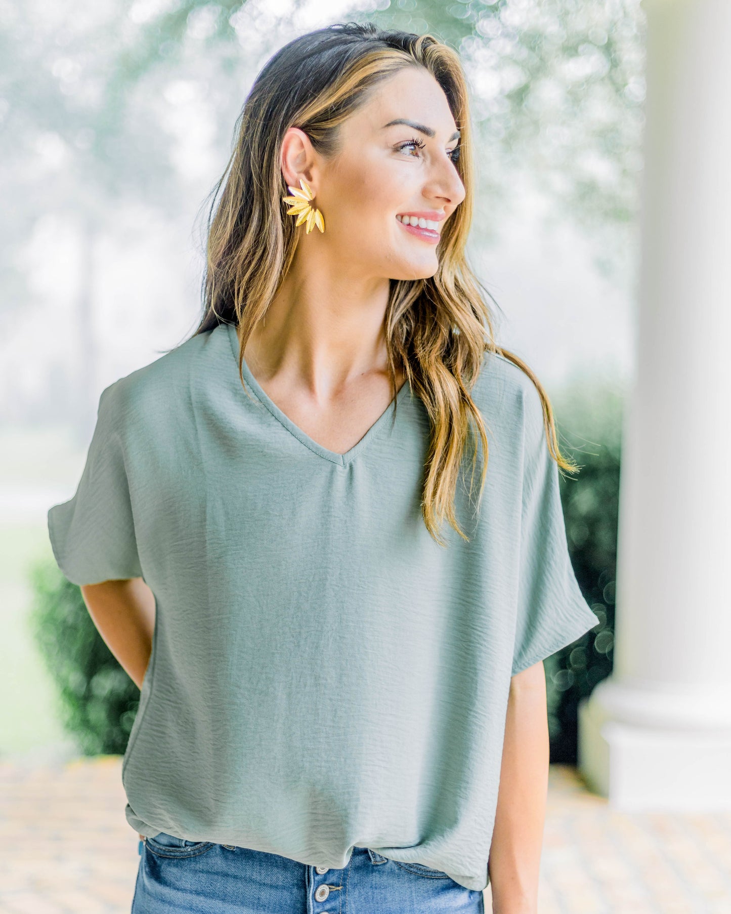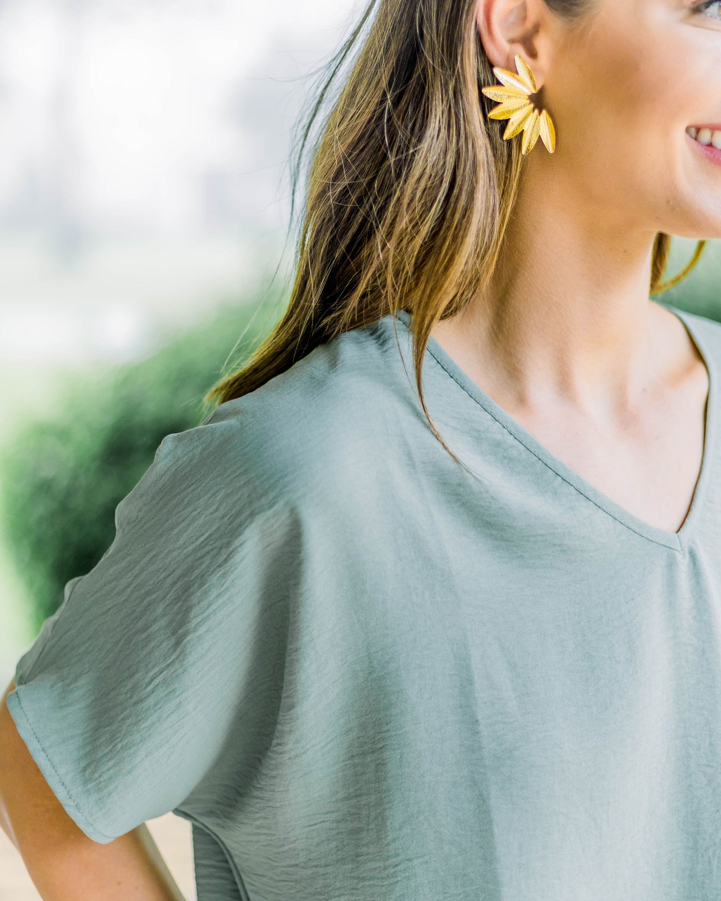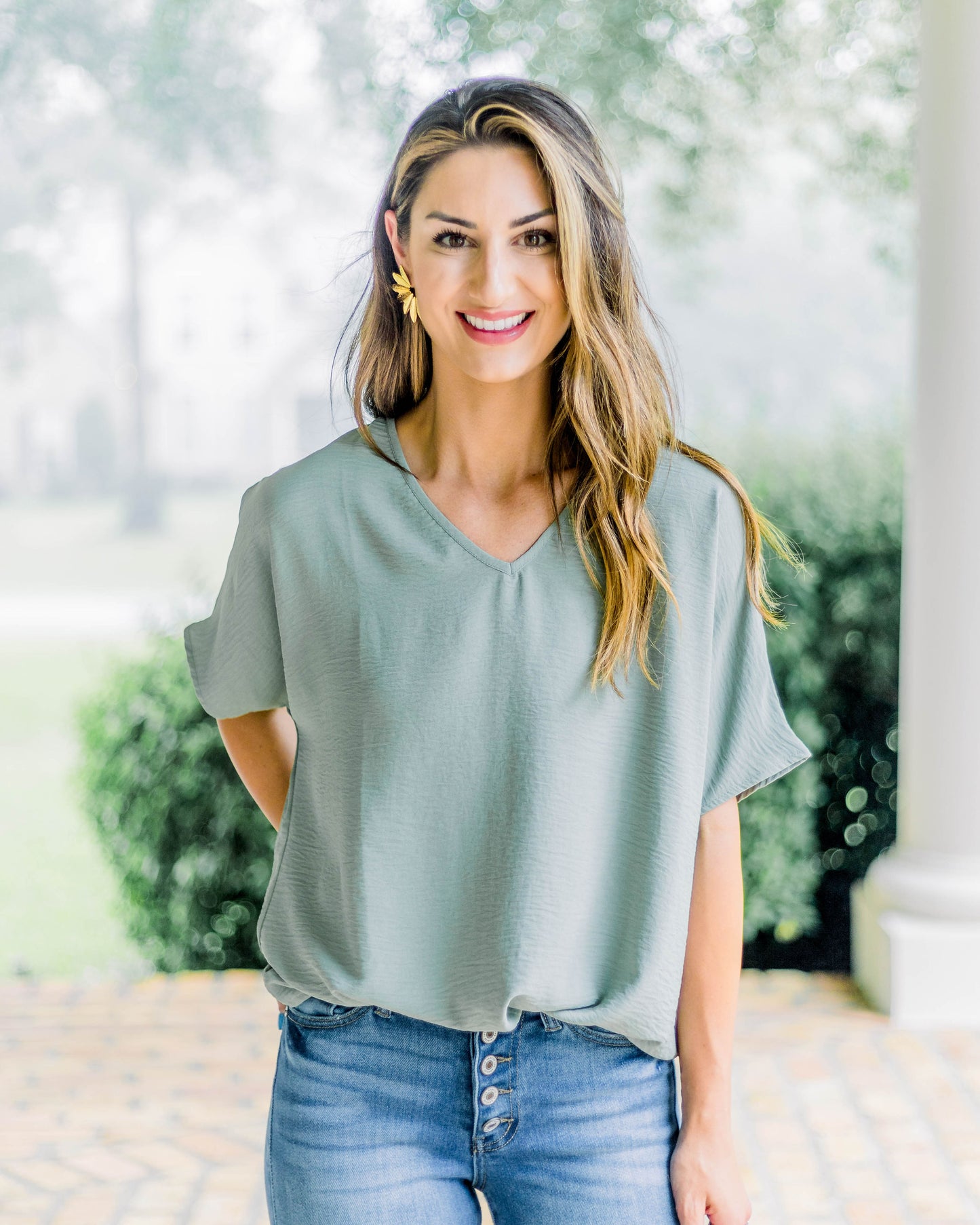 Flowy V Blouse- Sage