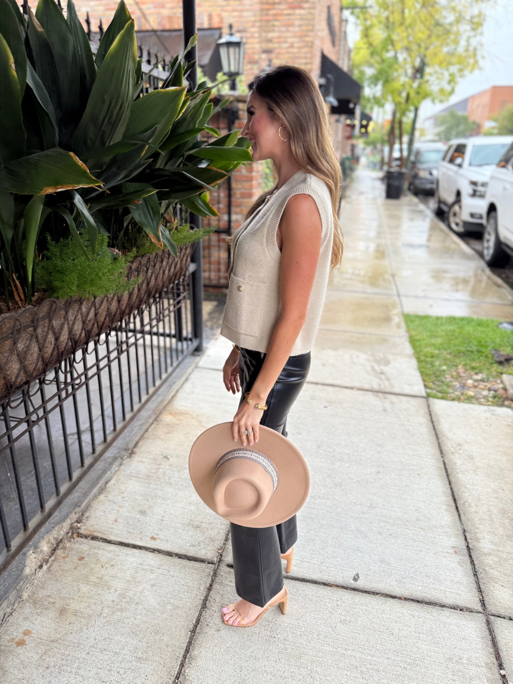 Add a touch of charm to your outfit with the Gracie Sweater Vest in Ecru. This solid knit vest features shiny gold buttons that brighten your look, plus handy front pockets foradded details. Lightweight and non-sheer, it layers perfectly without feeling bulky—your new go-to for playful, easy style.