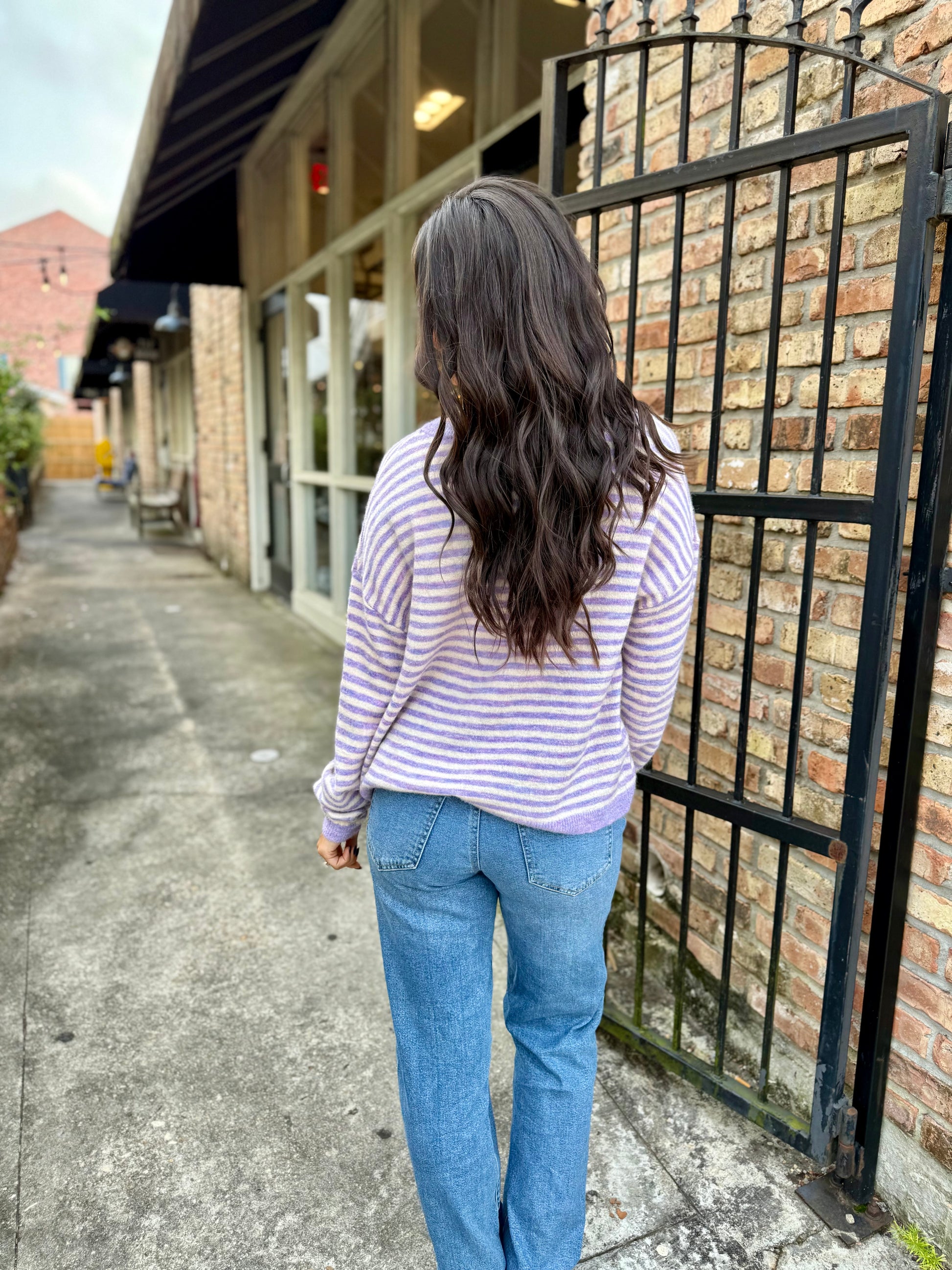 Stripes never go out of style—especially when they're this charming! The Haley Stripe Knit Sweater brings versatile lavender vibes perfect for Mardi Gras celebrations, LSU gameday spirit, or whenever you want to add a pop of color to your everyday rotation. Soft, comfortable, and effortlessly chic, this striped knit is your new go-to for looking put-together without trying too hard.