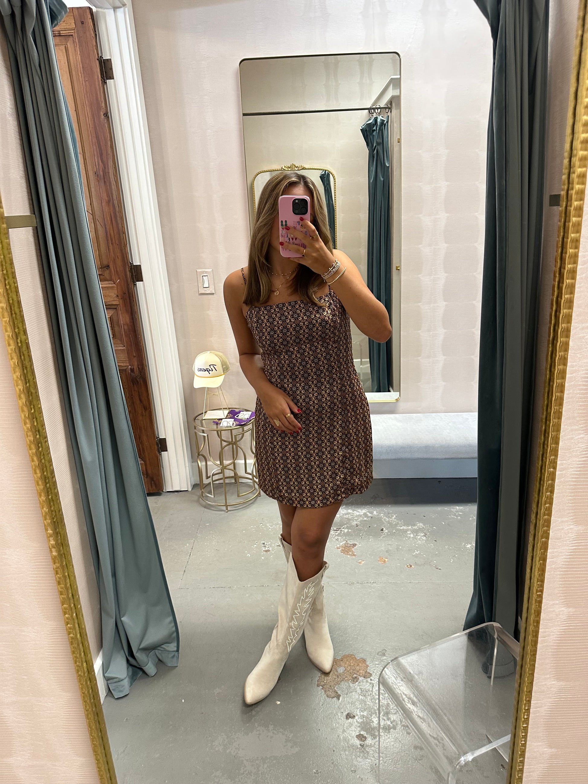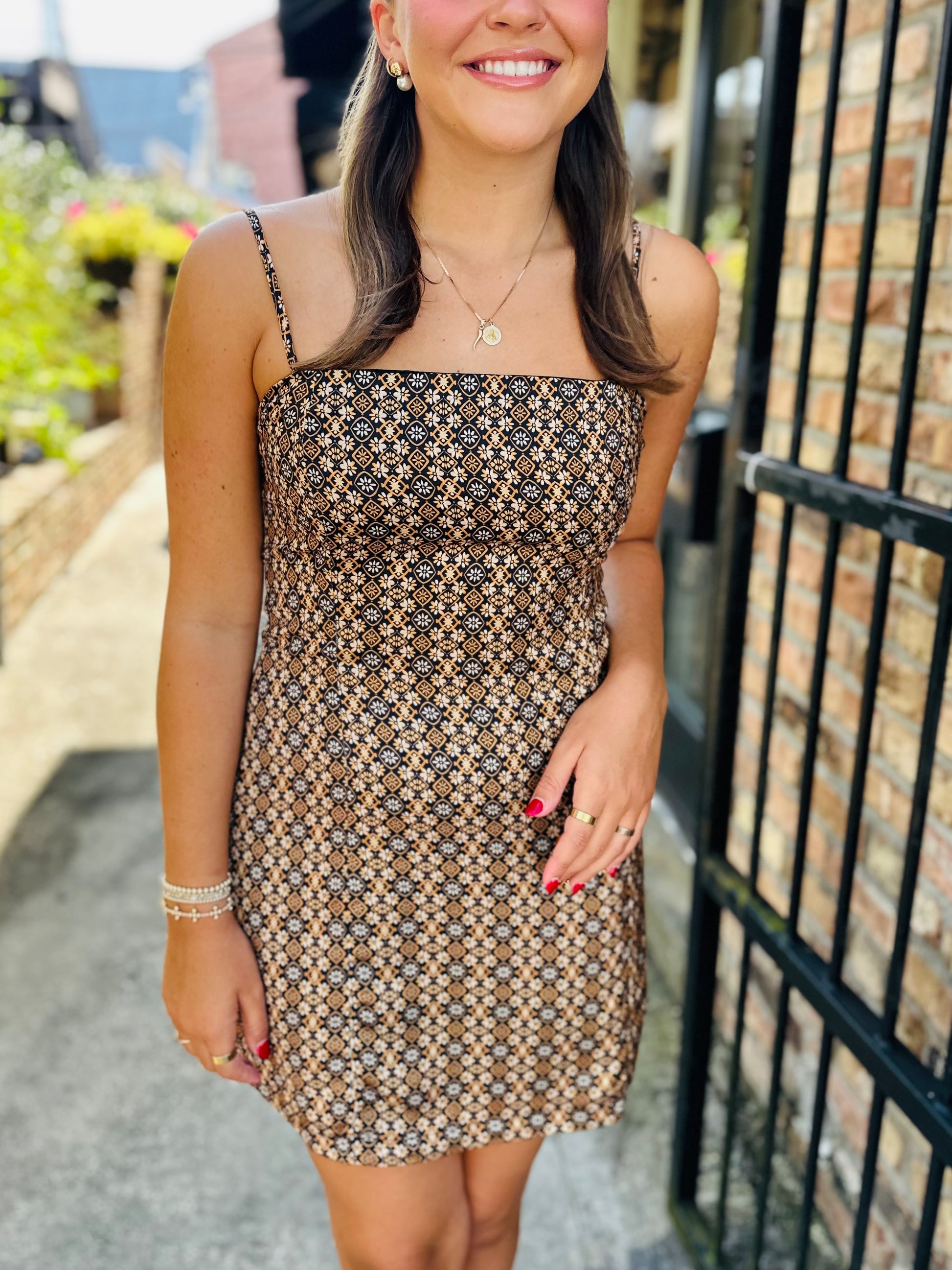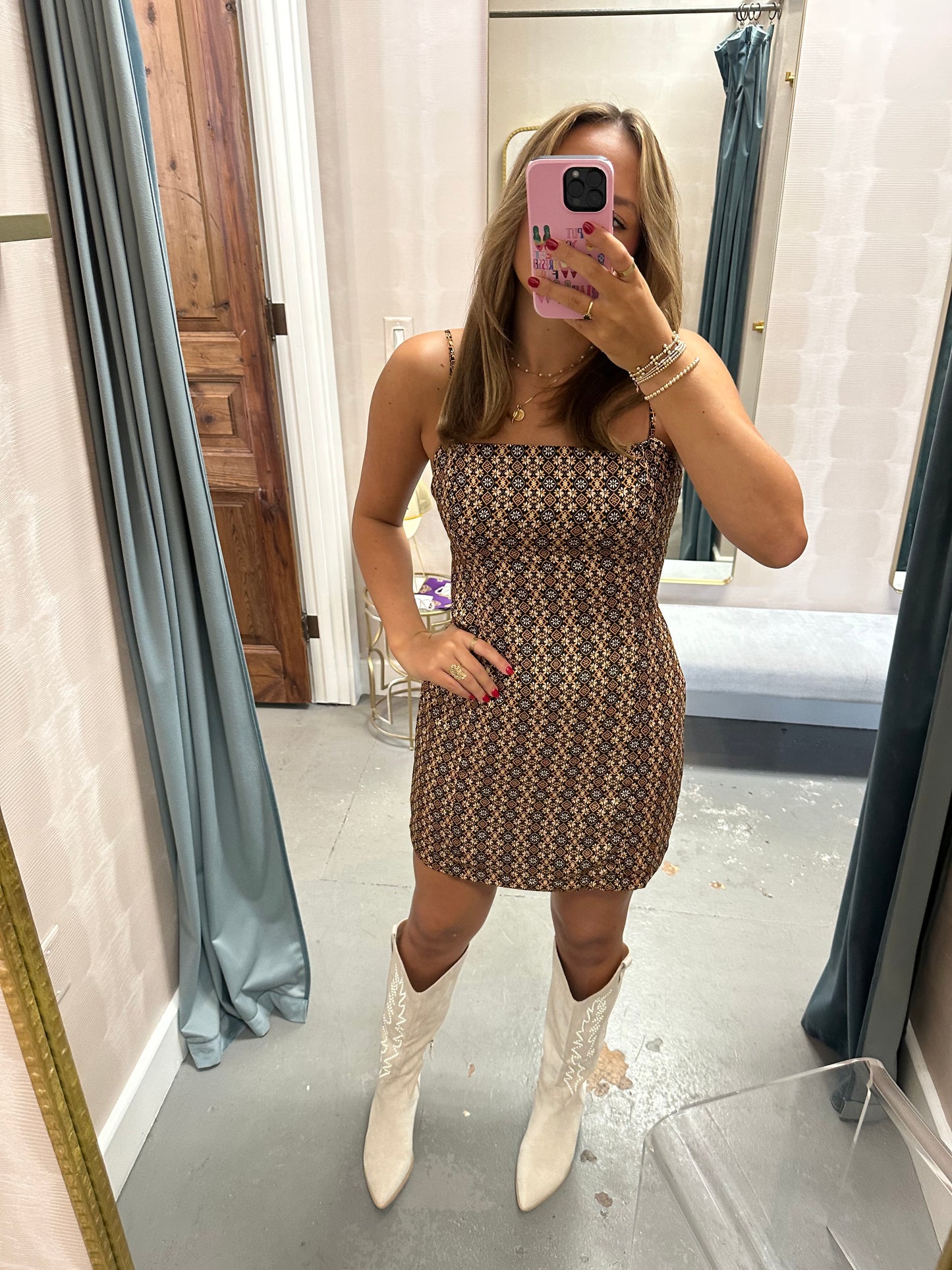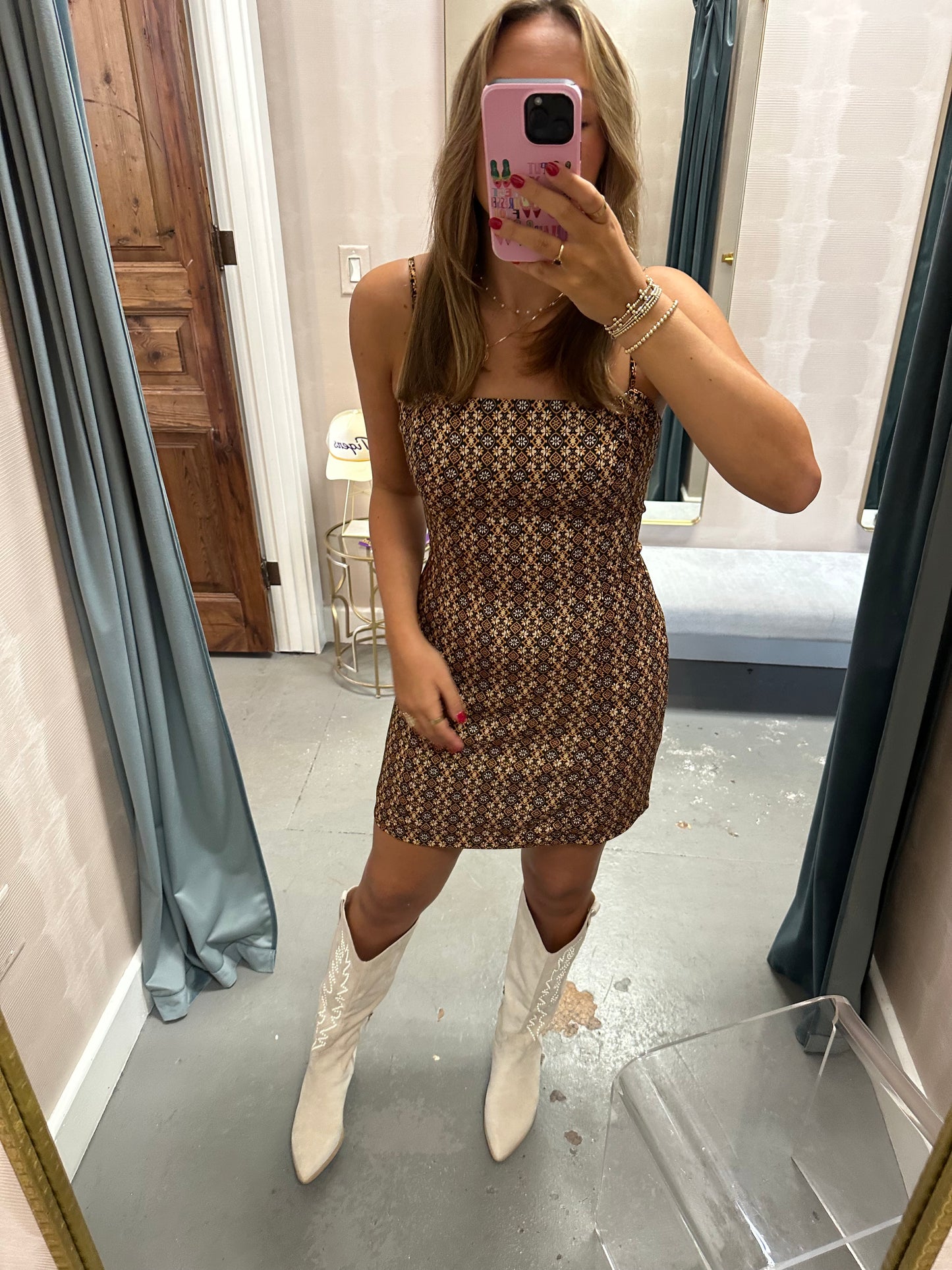Embrace the essence of autumn with the Heritage Revival Mini Dress, featuring elegant back smocking for a flattering fit and adjustable straps that ensure personalized comfort. Its rich fall colors evoke warmth and timeless style, making it the perfect choice for sophisticated seasonal gatherings or everyday elegance.