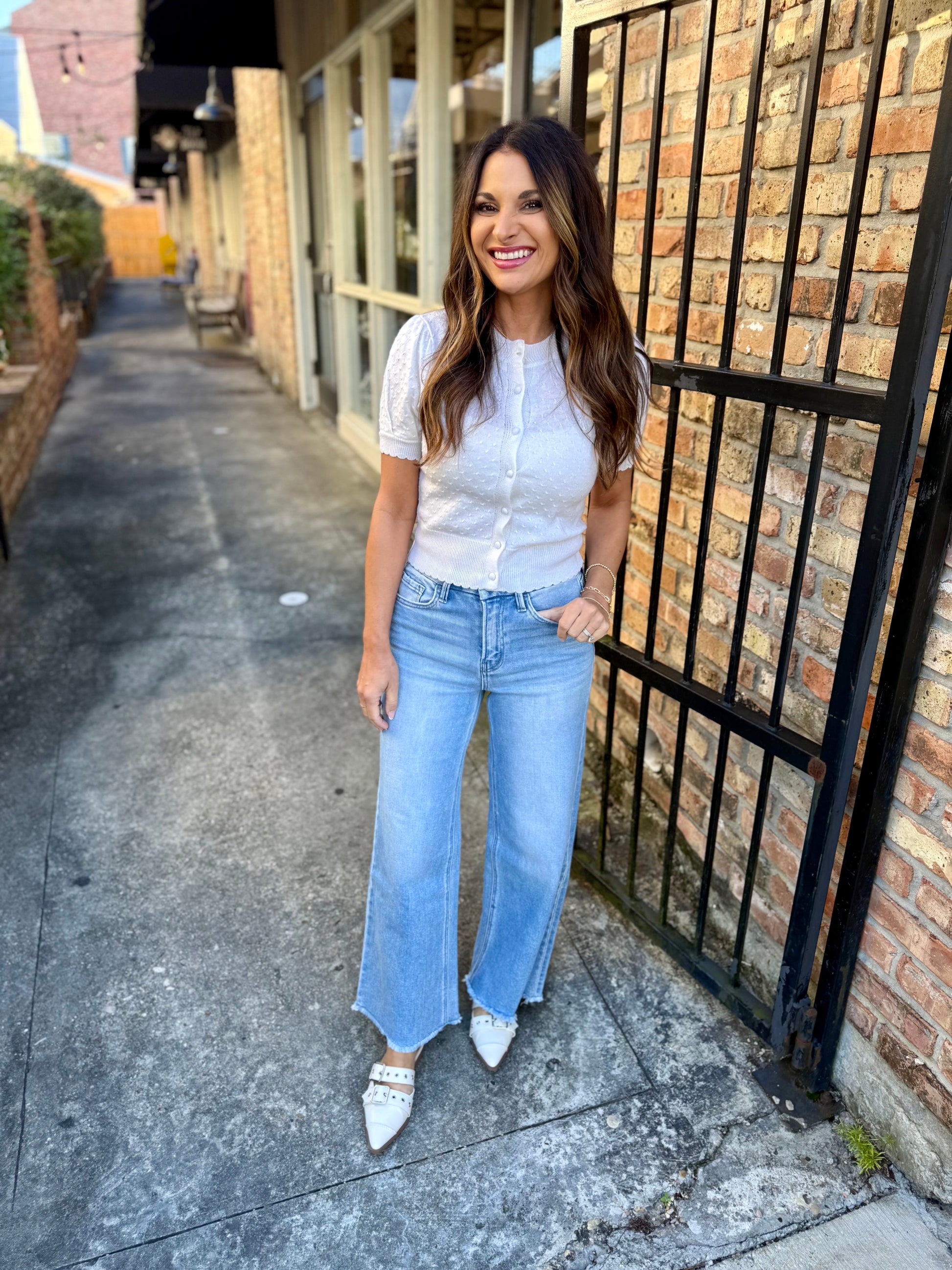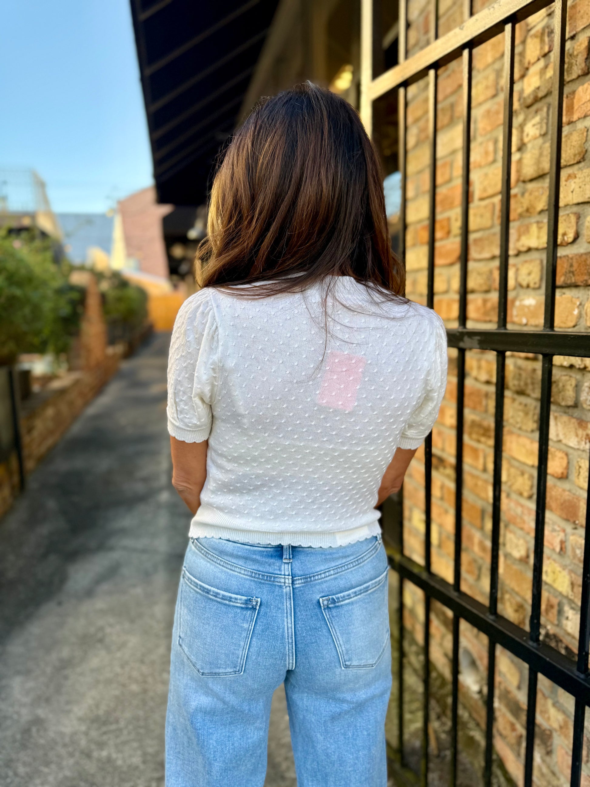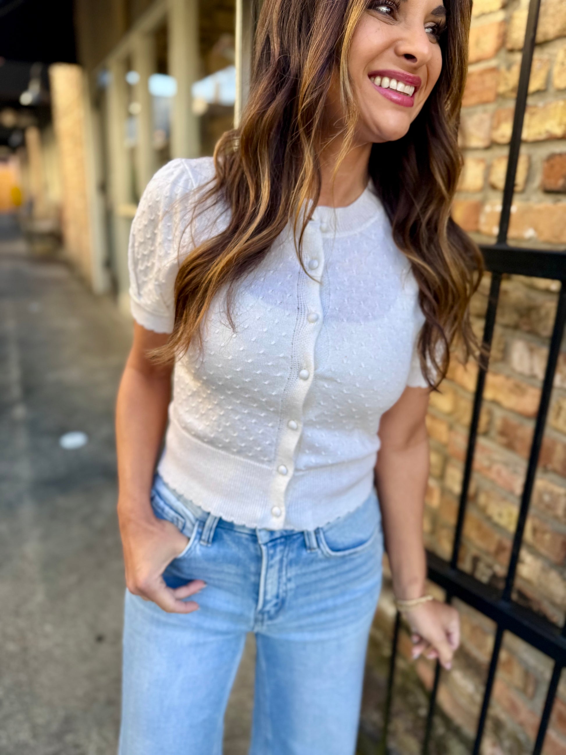 Wrap yourself in cozy charm with the Janelle Textured Knit Cardigan. Puff sleeves with ribbed cuffs create an effortlessly feminine silhouette, while the all-over textured knit pattern in a luxurious wool blend delivers warmth and visual interest. Perfect for layering over your favorite basics, this cardigan brings both comfort and style to any outfit.