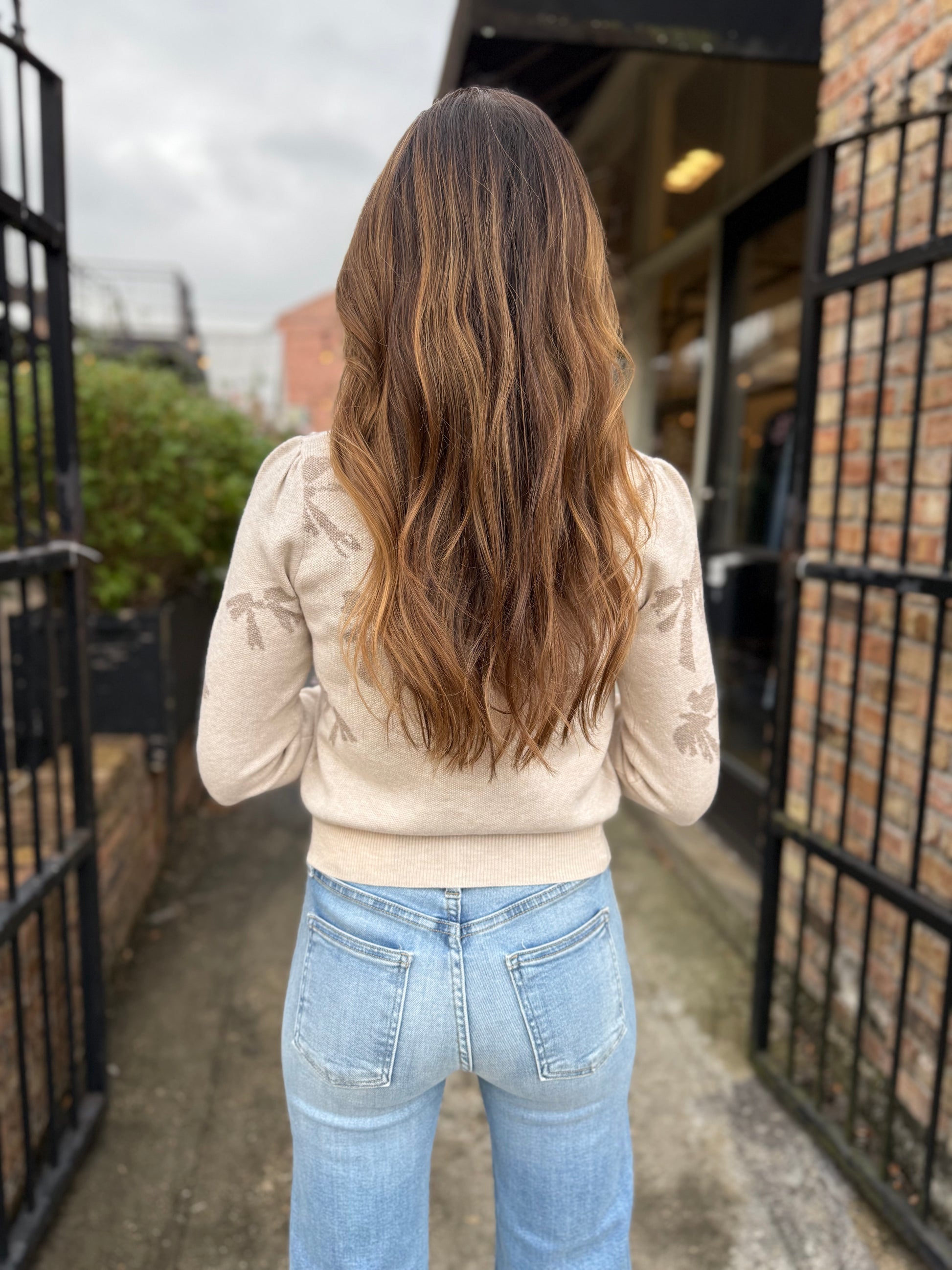Slip into effortless elegance with the Katari Cardigan in soft oat. This charming sweater features delicate bow print and gleaming gold buttons that add a touch of whimsy to any outfit. Perfect for pairing with skirts or with your favorite jeans, it's the cozy companion that brings personality to your everyday style. Embrace feminine flair with every wear.