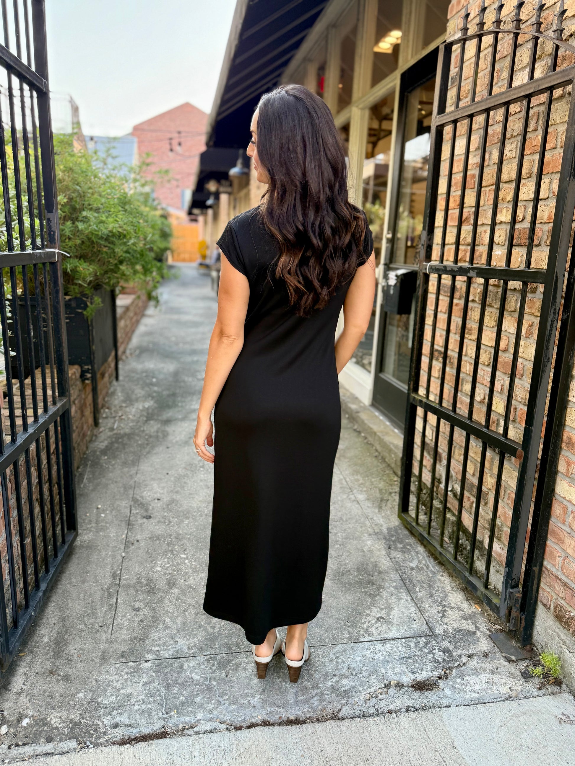 Slide into effortless style with the Katina Cap Sleeve Maxi in classic black. This lightweight, knit pullover dress features solid cap sleeves and a flowing maxi length, perfect for twirling through warm days or easy evenings. Unlined and non-sheer, it offers a breathable, comfortable fit that moves with you—making it your go-to for playful outings or relaxed moments.