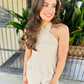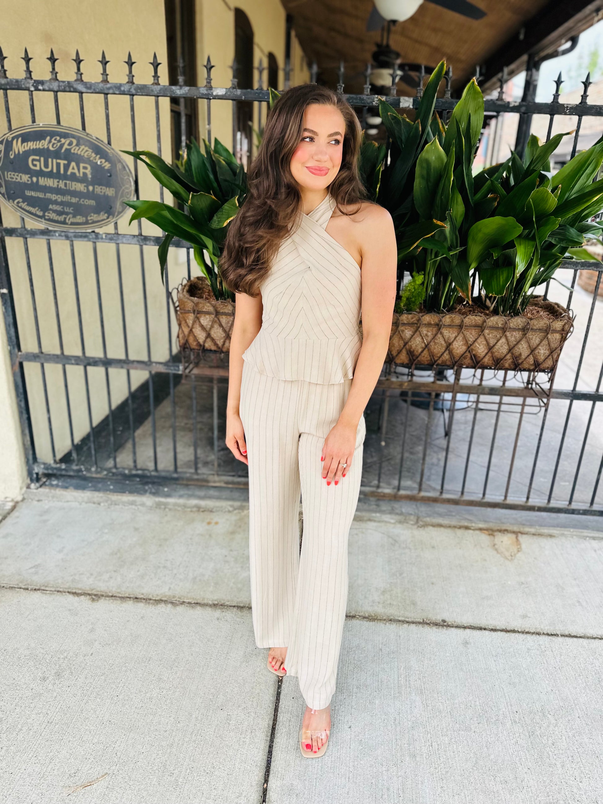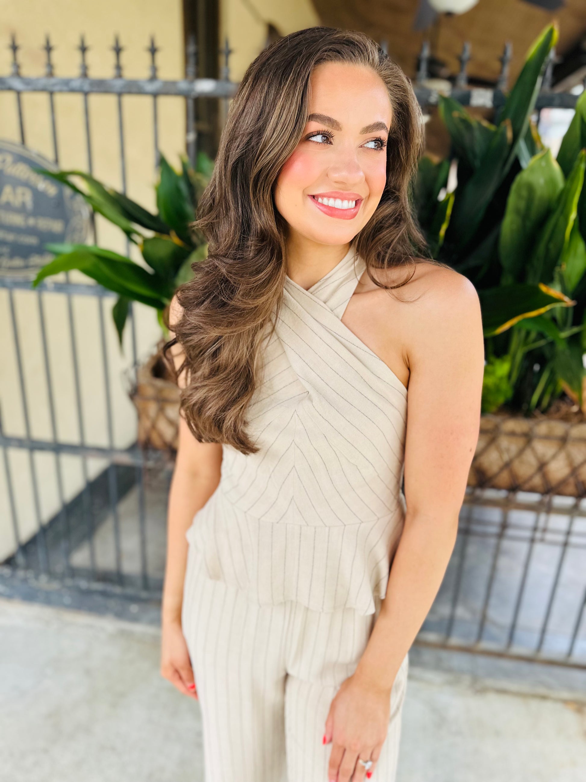 Rock the night in our Kosta Top, featuring a playful twist halter style neckline that adds a touch of chic. This top will have you turning heads with its effortless style and undeniable charm. Who says a set has to be boring?! Grab the matching Venetia Pants too!