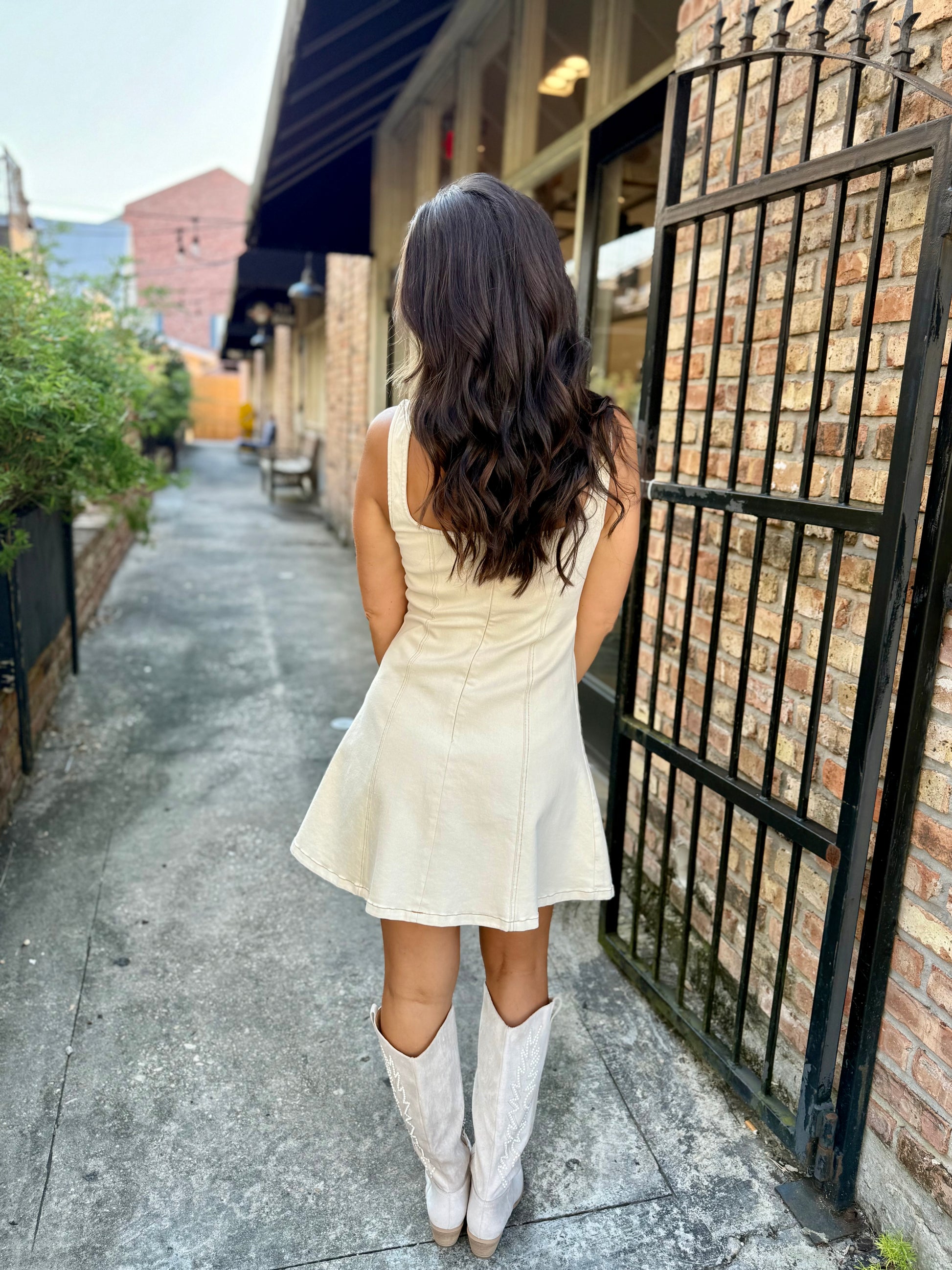 Step out in sweet sophistication with the Lacey Square Neck Mini Dress in ecru. Its flirty square neckline and flare skirt give it a playful vibe perfect for sunny days or evening fun. Lightweight and breezy, this mini dress moves with you, making every moment feel effortlessly delightful.
