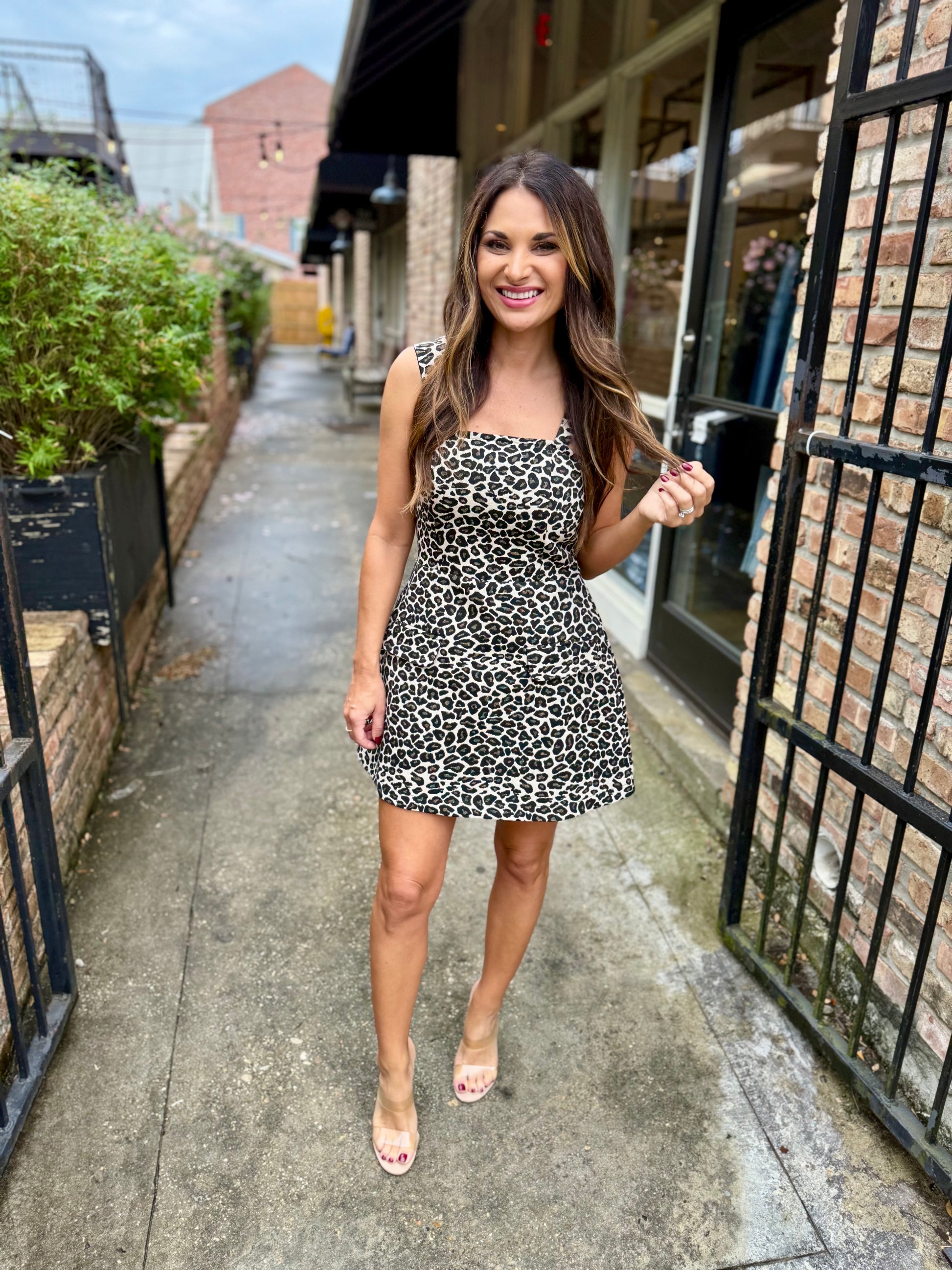 Make a bold statement with this playful leopard printed mini dress featuring a square neckline and fun print that keeps you cool and confident. The exposed back zipper adds a trendy edge, while the soft lining ensures comfort all day or night. Perfect for turning heads and embracing your wild side in style.