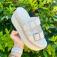 Our new addition, LUCINDA, features buckles on the dual-strap upper of this dreamy faux buttery leather slide sandal. It floats on a cushy memory foam footbed and a timeless faux leather-wrapped wedge platform. Wear yours with breezy summer dresses or in the fall with jeans.