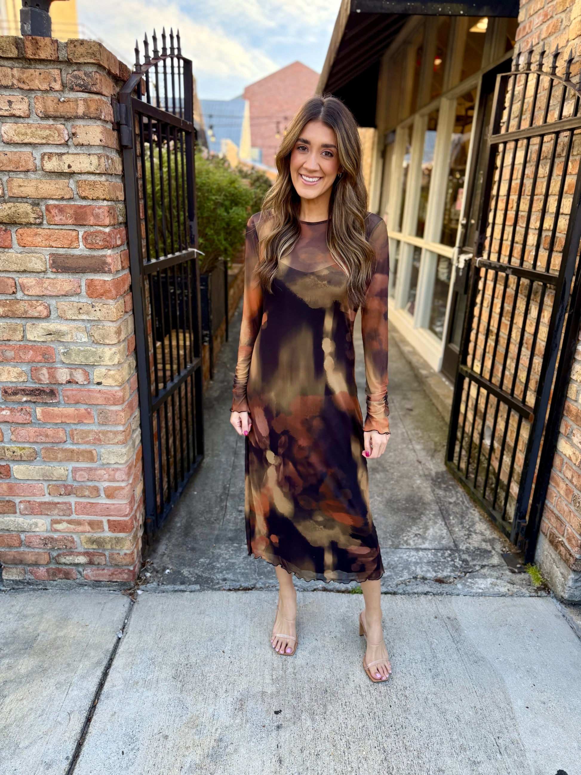 The Moonlit Meadow Maxi Dress combines elegance with seasonal charm, featuring delicate mesh material & long sleeves perfect for cooler days. Its sophisticated fall floral print evokes the serene beauty of autumn meadows, making it an ideal choice for both daytime outings and evening festivities. Made to flatter your silhouette while offering comfort, this dress effortlessly blends timeless style with modern grace. Elevate your wardrobe with a piece that celebrates the allure of the season in every detail.