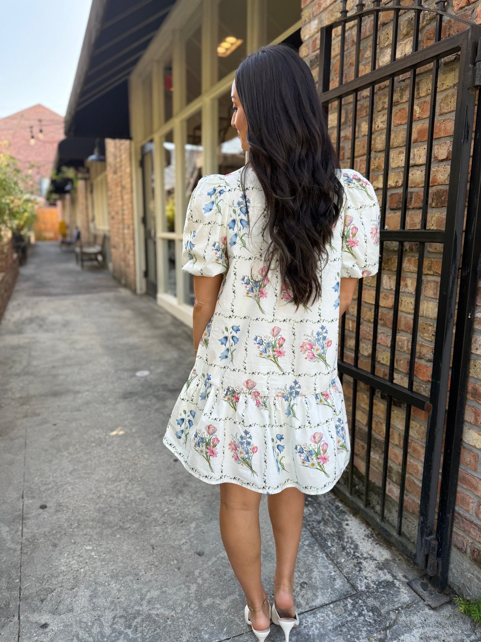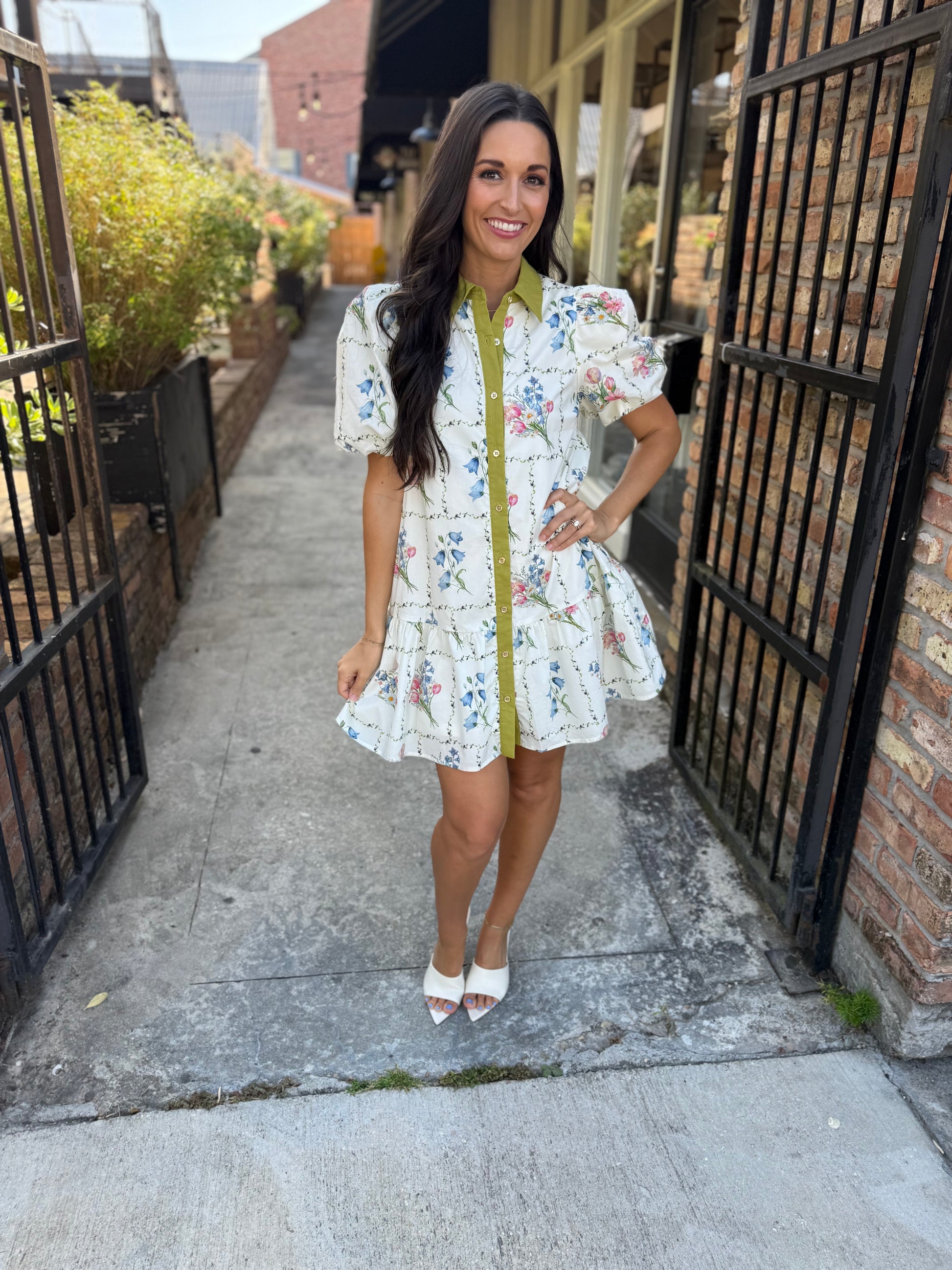 Embrace effortless charm in this floral print mini dress. Designed with short puff sleeves and a crisp contrast collar, it features a front button closure and functional side pockets for everyday convenience. The lined, woven construction ensures a non-sheer finish with a lightweight feel, making it perfect for warm-weather styling. Pair it with sneakers for casual outings or dress it up with heels for a polished look.
