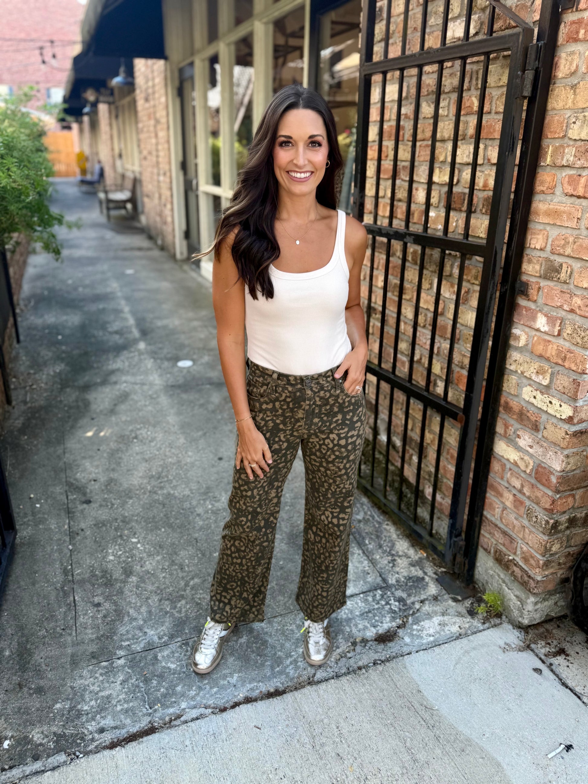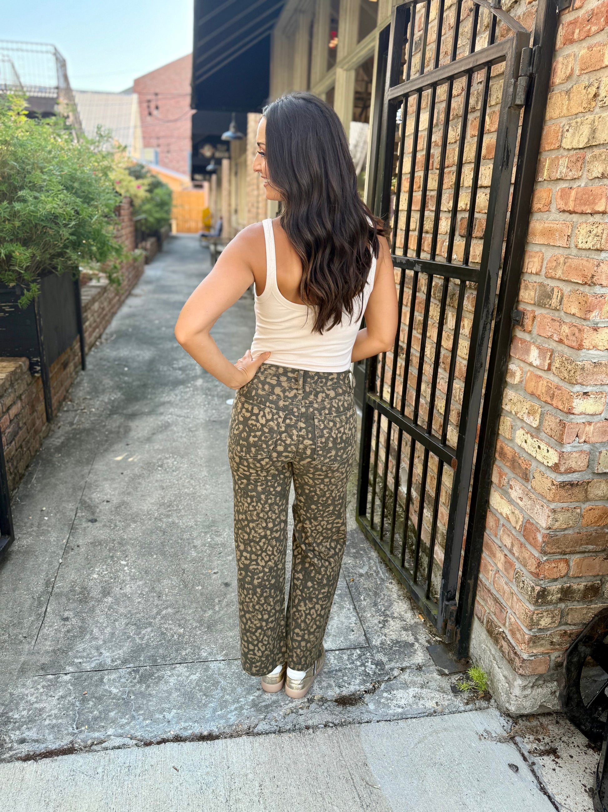 Own your look in these high rise wide leg pants featuring a bold animal print in rich wood tones. The structured waist flatters while the wide leg brings effortless flow and edge. A statement piece that’s anything but basic.
