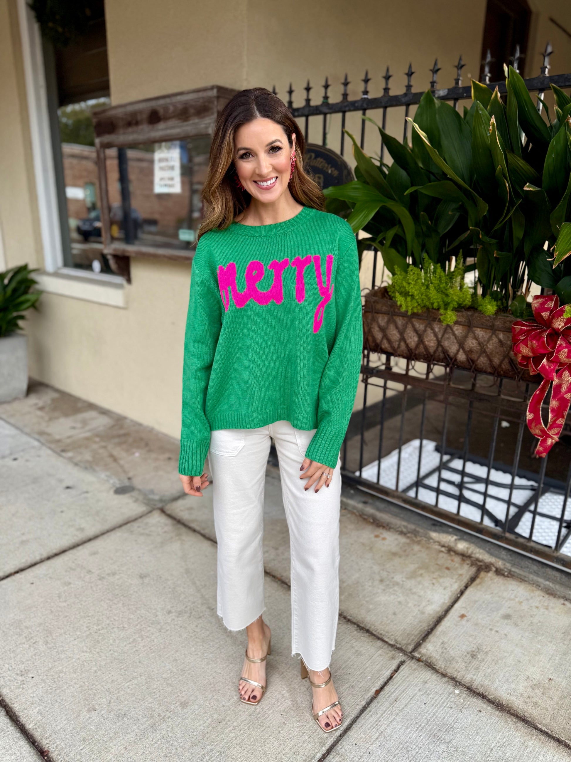 Get into the holiday spirit with the Merry Crown Sweater in cheerful green and pink. This playful knit sweater adds a festive touch to your celebrations while keeping you cozy and comfortable all season long. Perfect for spreading joy at any holiday gathering!