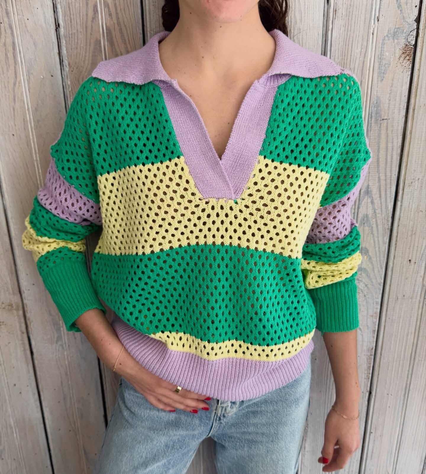 Celebrate in style with this Mardi Gras-inspired rugby polo that brings festive flair to your wardrobe. The loose knit construction offers comfort and breathability, perfect for layering or wearing solo during cooler months. Classic rugby styling meets carnival spirit with eye-catching details that make a statement. Whether you're hitting the streets for the big parade or just channeling that New Orleans energy, this long sleeve polo delivers laid-back sophistication with a playful twist. Dress it up or down—this versatile piece is ready for whatever adventure comes your way.