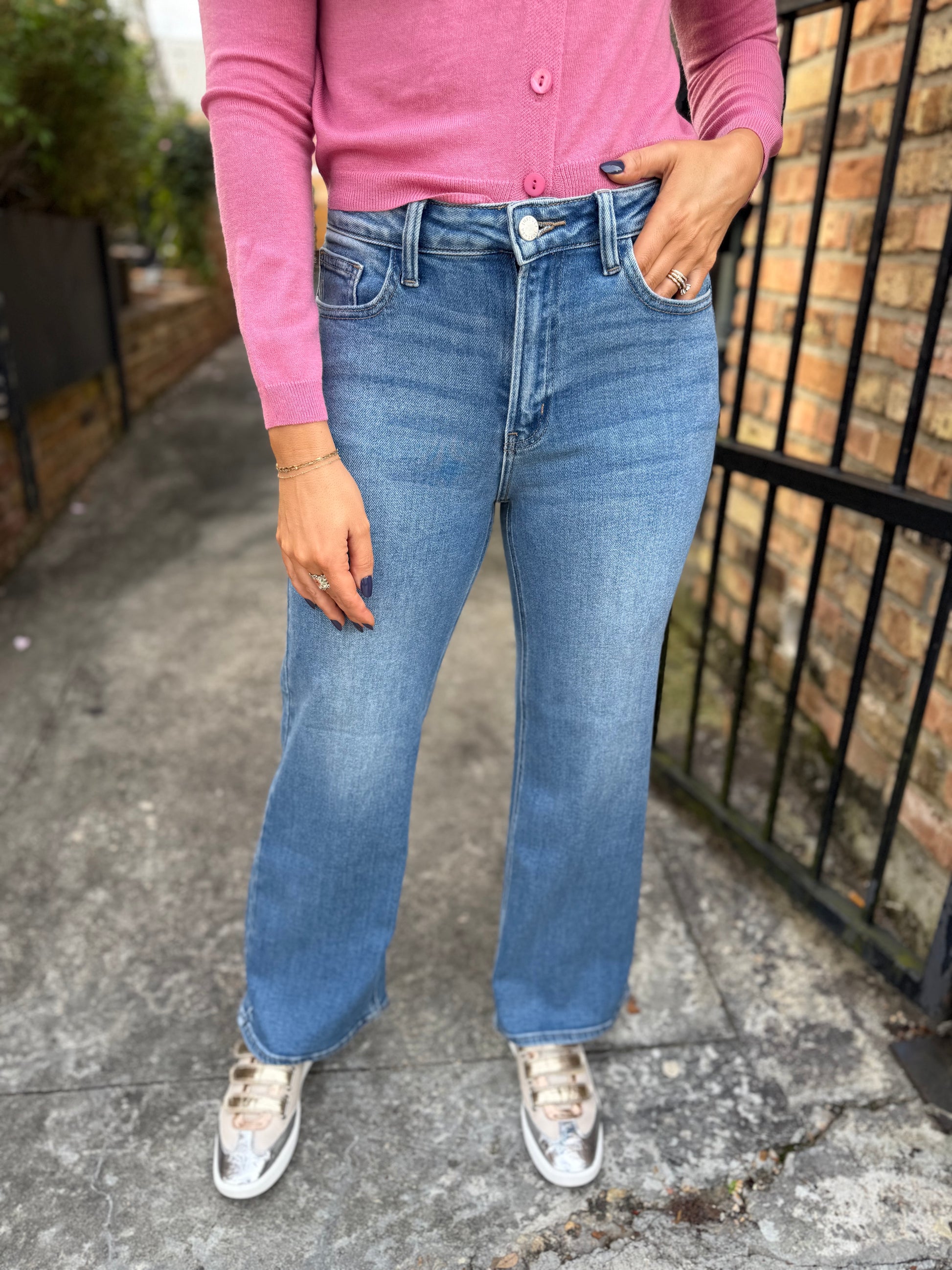 Meet your new wardrobe MVP—the Mingo HR Slim Wide Leg in medium denim. The high-rise waistband sits perfectly at your natural waist for a flattering fit, while generous leg room keeps you comfortable and moving freely all day long. Polished enough for the office, relaxed enough for weekend adventures—this is the jean that works as hard as you do.