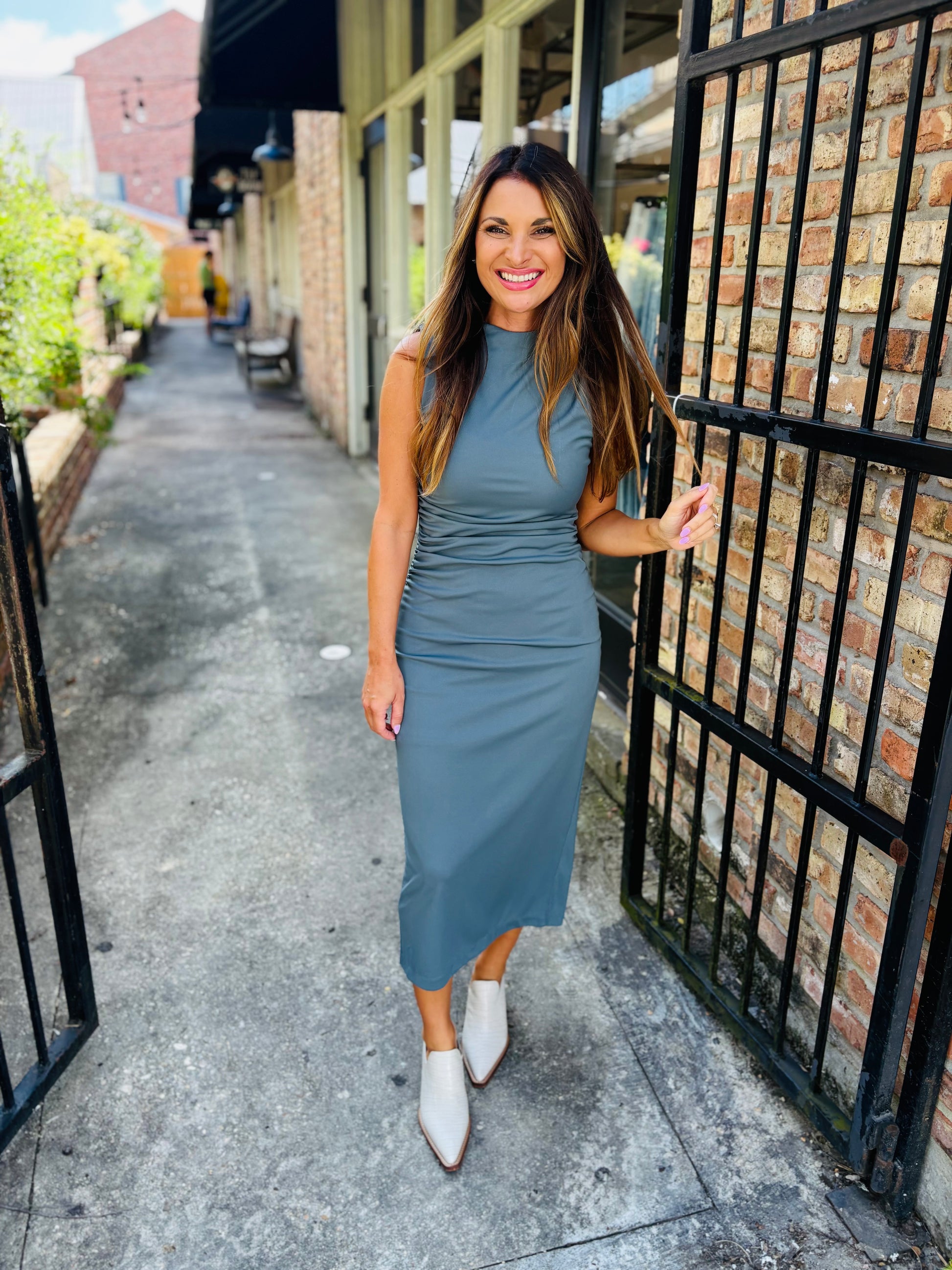 Effortlessly stylish, the Mo Dress offers comfort and convenience with its machine washable knit fabric and hidden back zipper closure. The partially lined design adds a touch of sophistication while the ruched sides create a flattering silhouette. Perfect for any occasion, this dress also features a back vent for extra mobility. Get ready to turn heads with this must-have addition to your wardrobe!