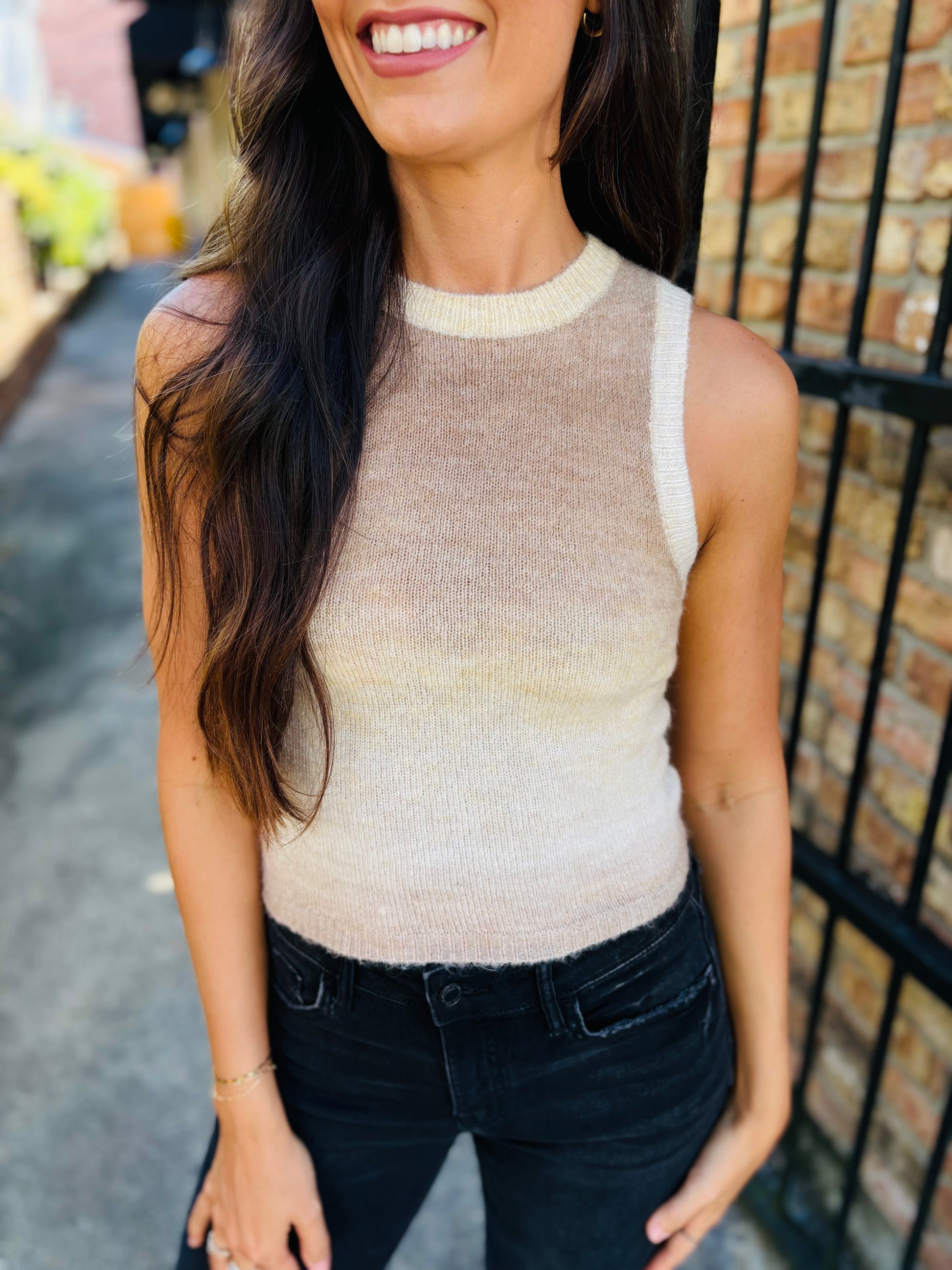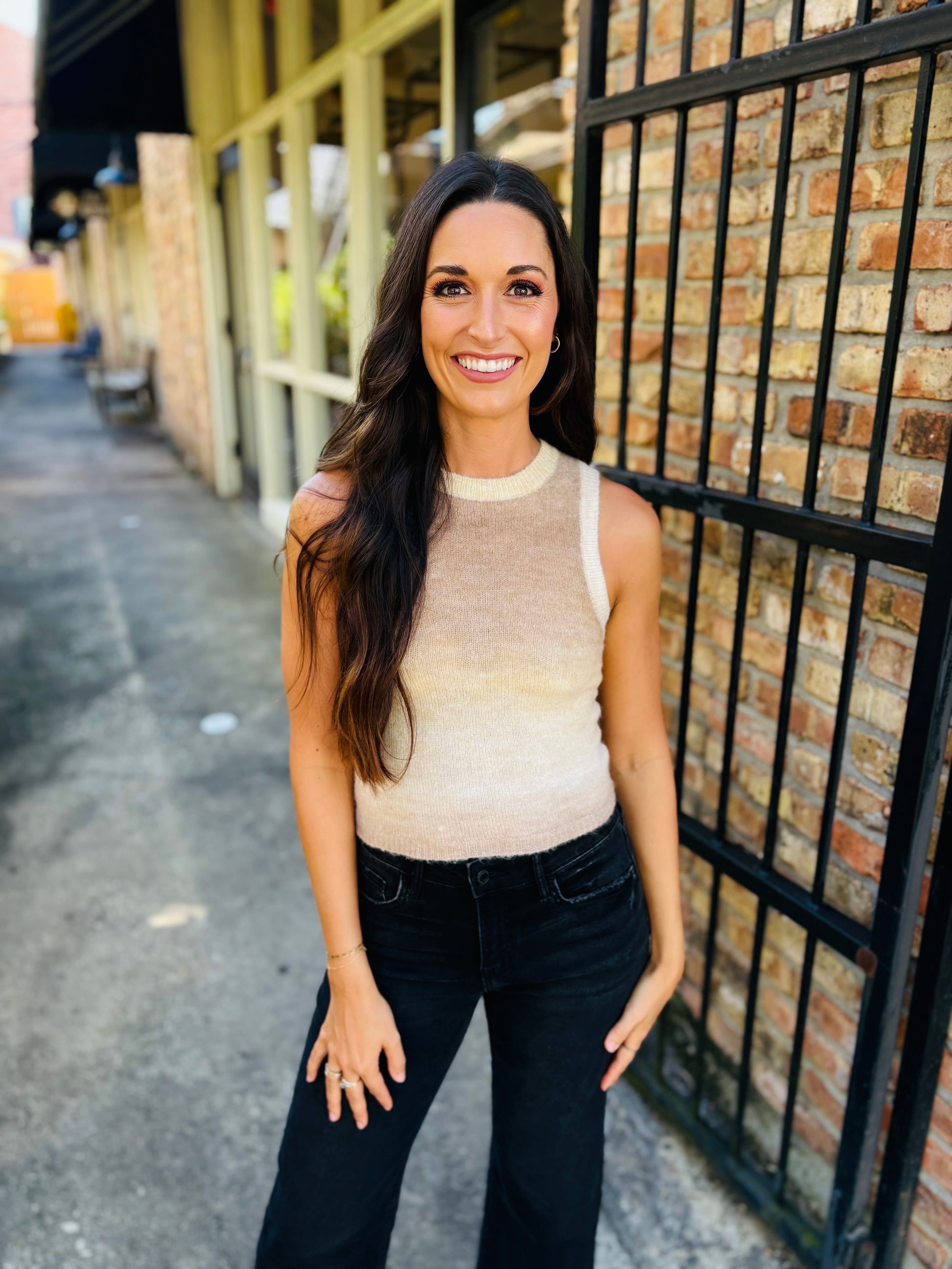 The Palmer Ombre Sweater Tank in Taupe Multi adds a fun twist to your fall wardrobe. Its soft ombre hues make it perfect for layering—wear it solo with your favorite denim or slip it under a jacket for a cozy, stylish vibe. Embrace the season with this playful, versatile piece that’s ready to mix and match!