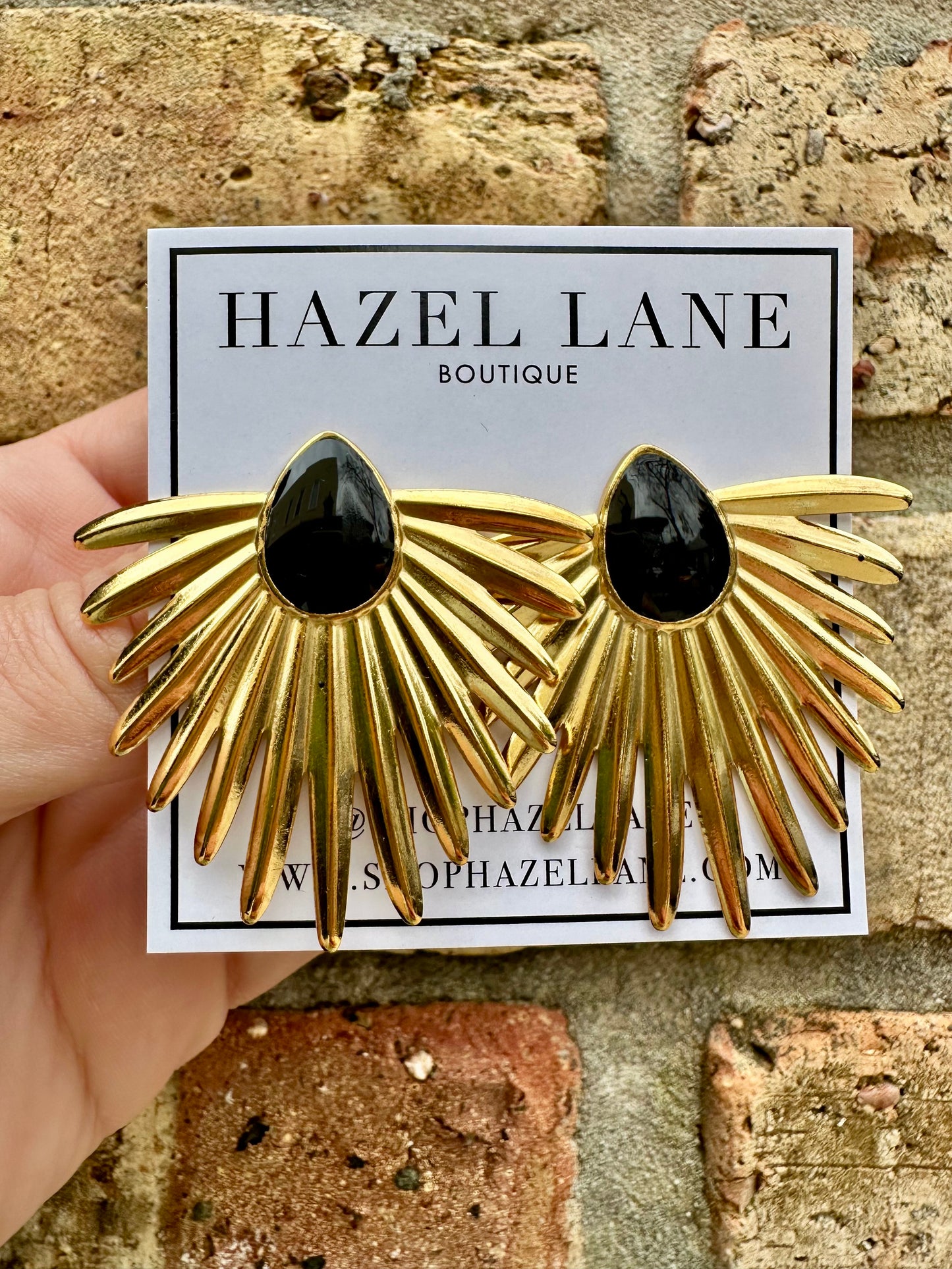 Add some pop to your wardrobe with our Black Phoenix Studs. These gold statement earrings are not heavy, making them comfortable to wear all day. Stand out from the crowd and let your style soar with these unique and playful studs.