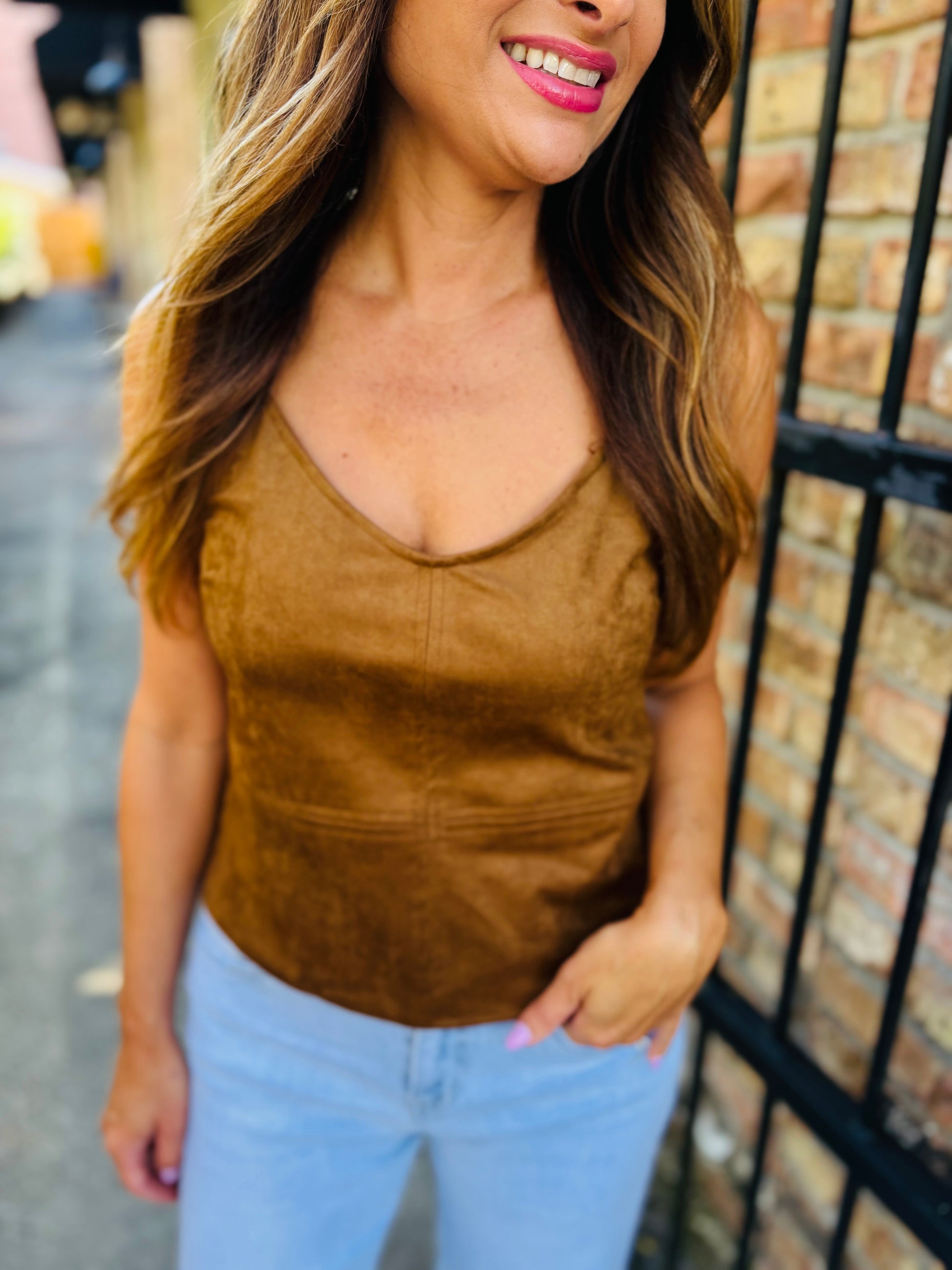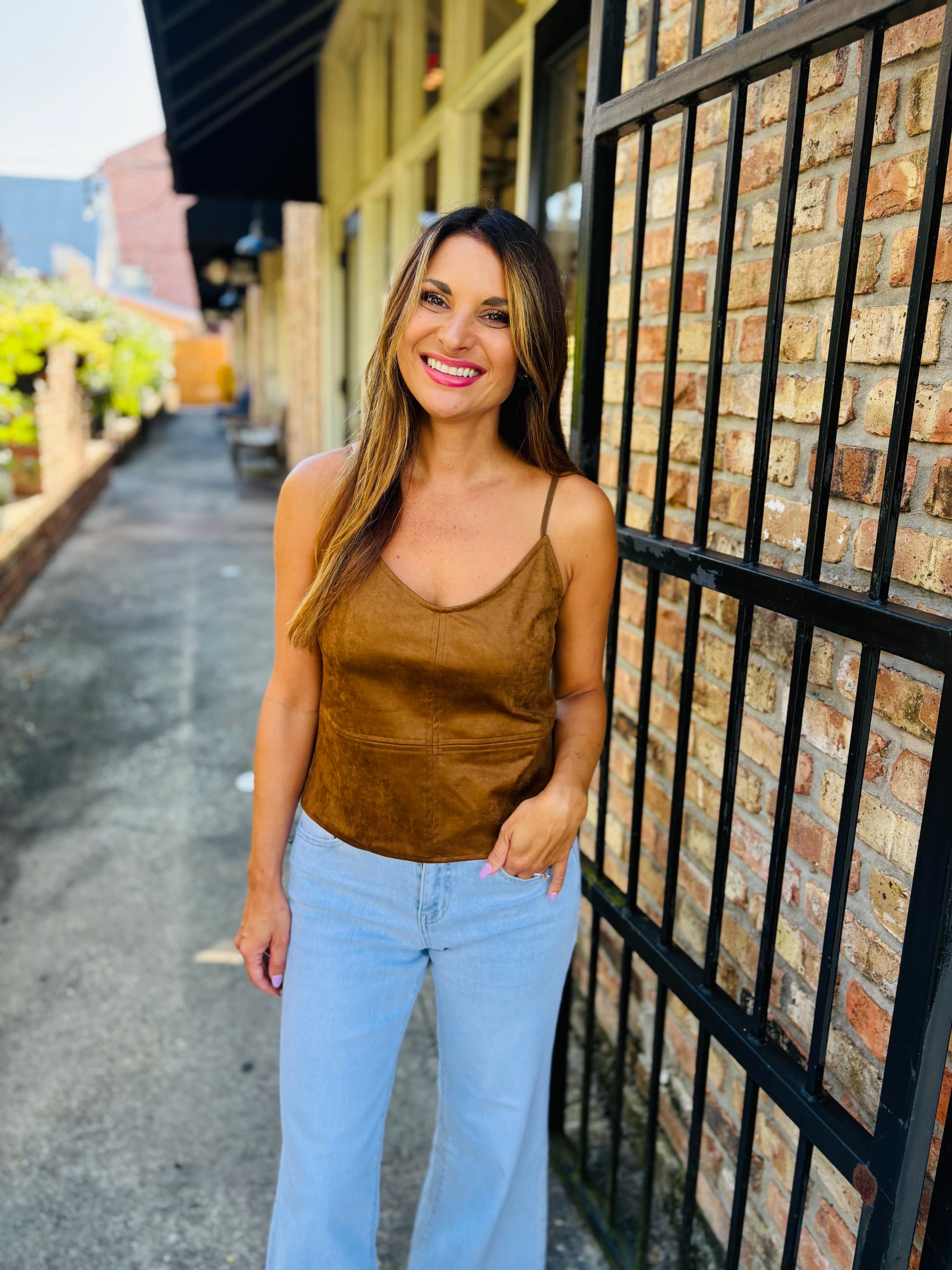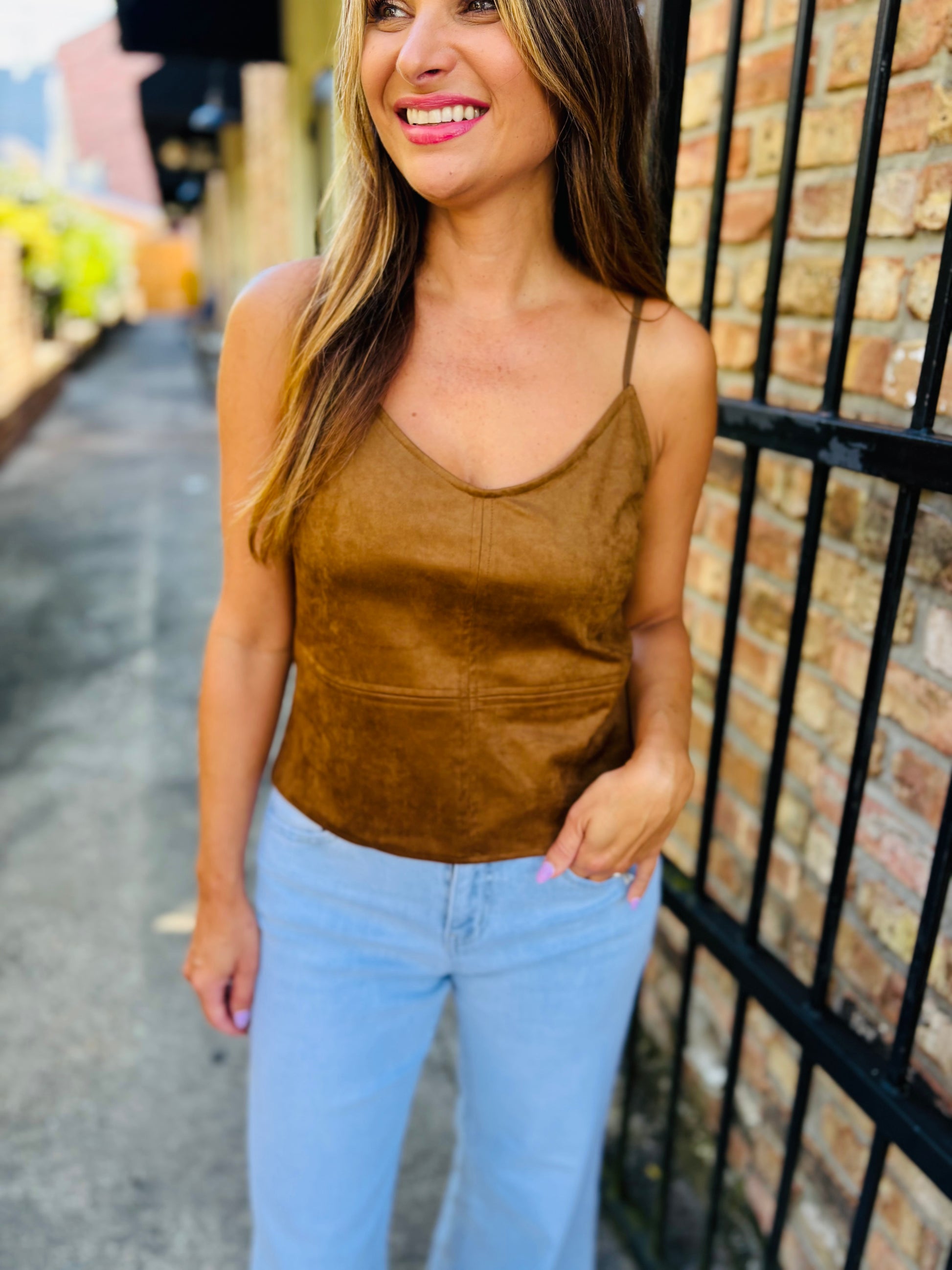 The Raani Cami is a chic, effortless basic. Made from a super soft suede, it features a slim fit and adjustable straps.