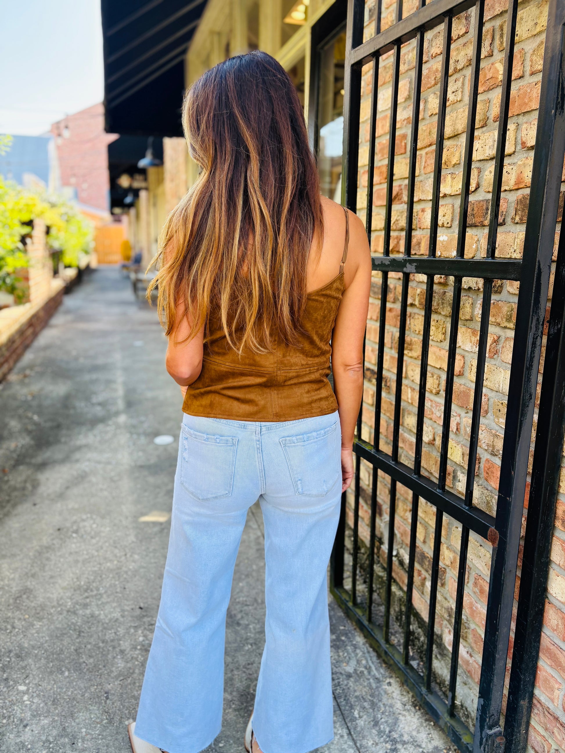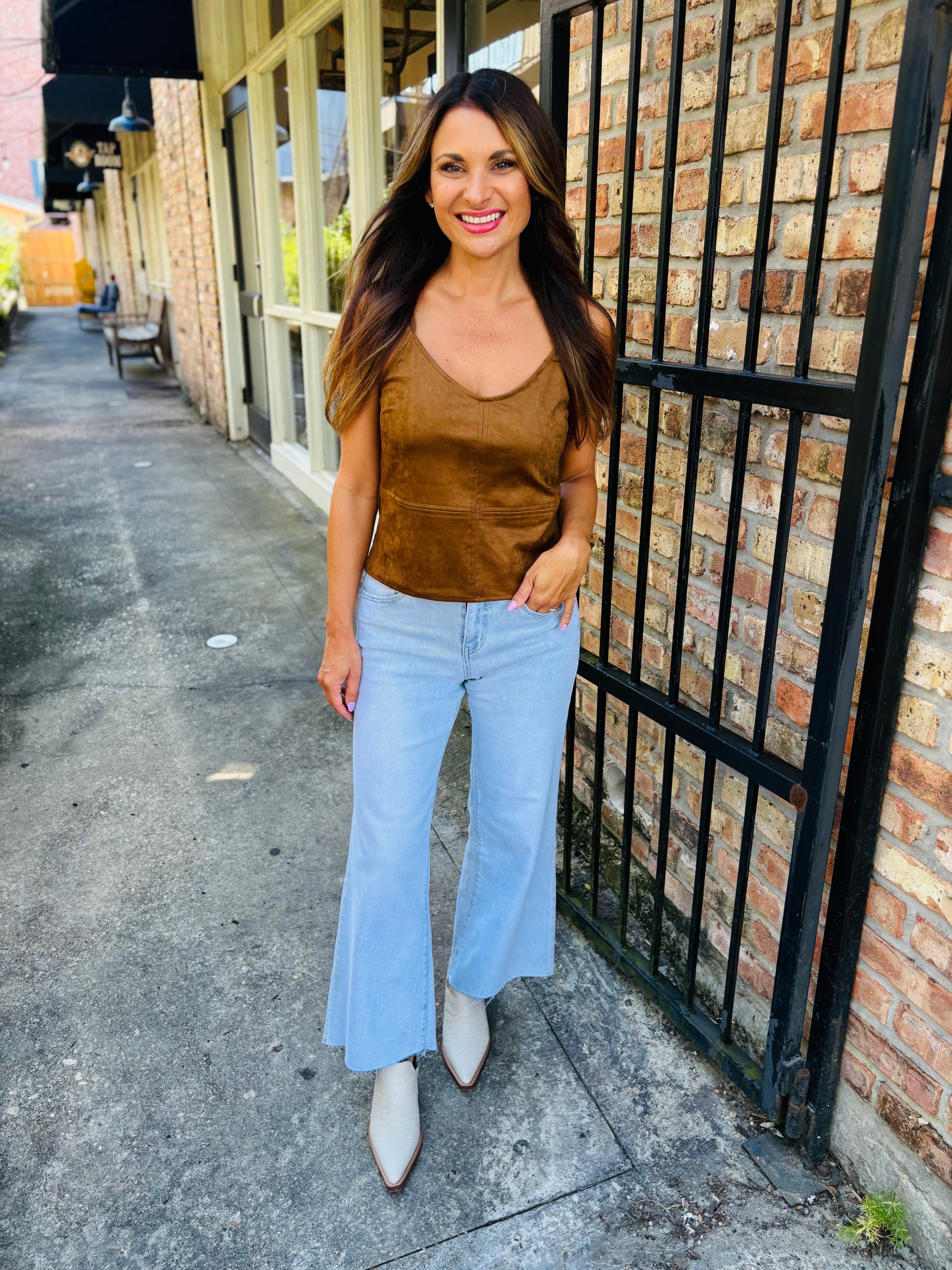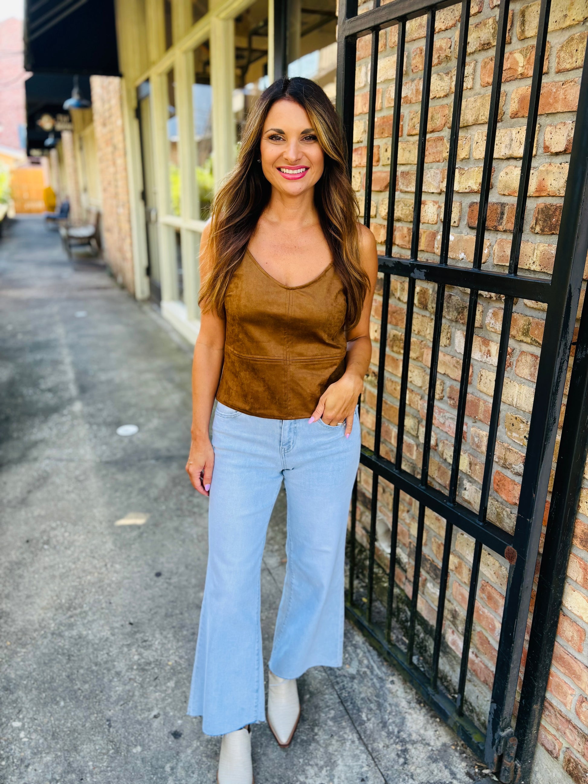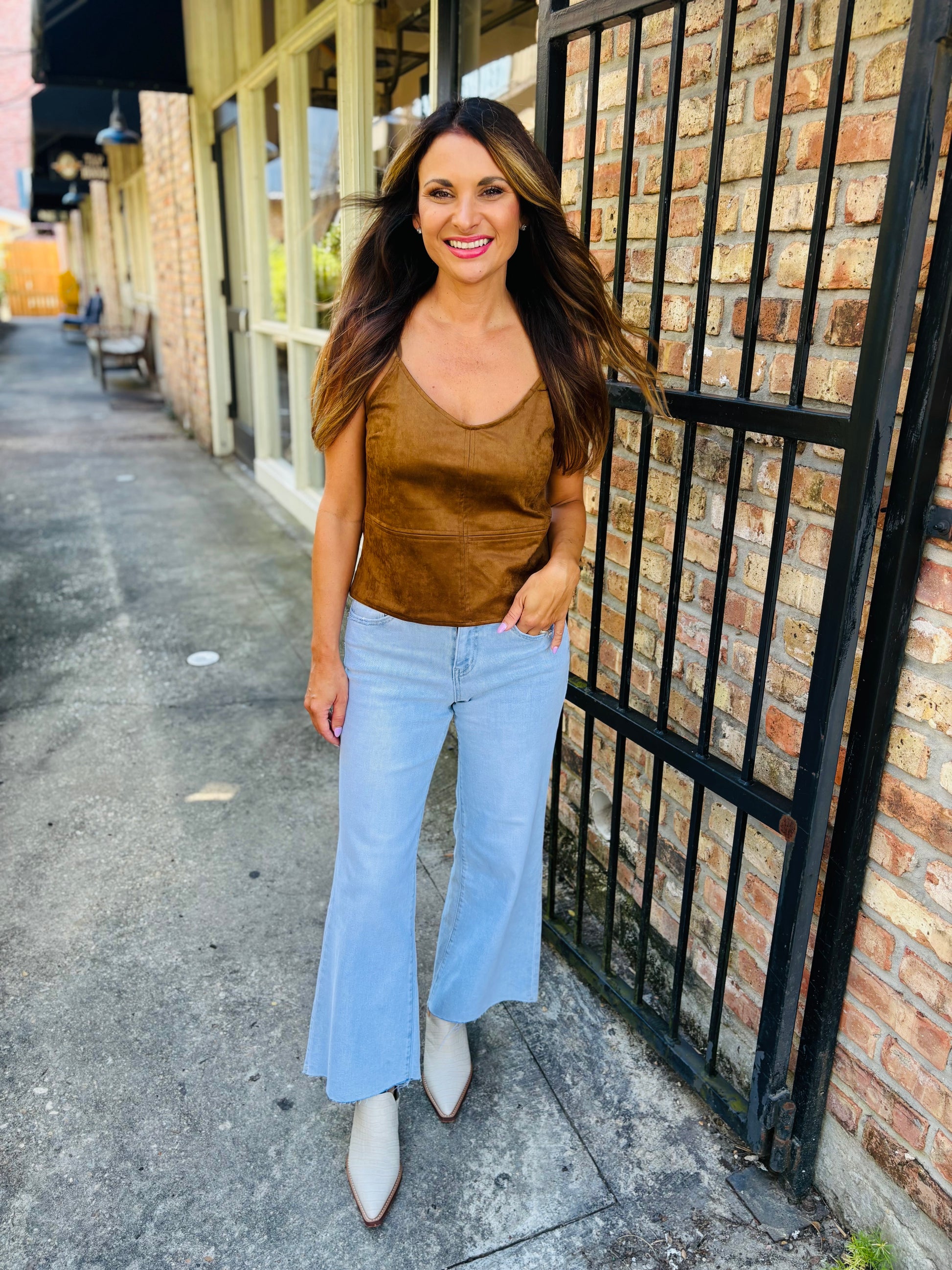 The Raani Cami is a chic, effortless basic. Made from a super soft suede, it features a slim fit and adjustable straps.