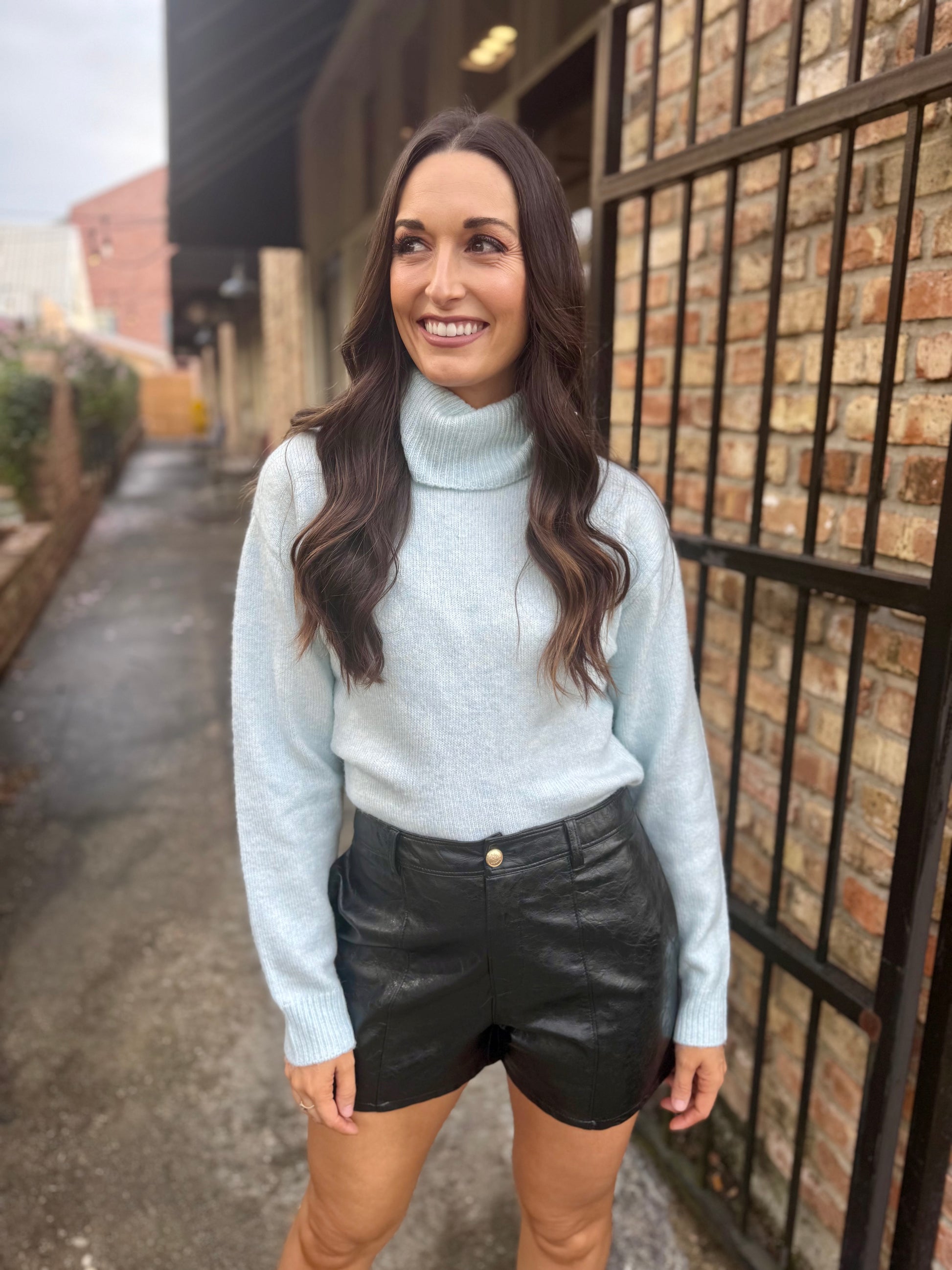 Wrap yourself in cozy comfort with the Raegann Sweater in a stunning powder blue that's as dreamy as it gets. This warm, luxurious turtleneck is your new go-to for effortless style—perfect for layering through chilly seasons or wearing solo when you want to make a statement. The soft, inviting hue brings a touch of calm sophistication to any outfit, while the classic silhouette keeps things timeless and versatile. Snuggle up and glow in this gorgeous blue beauty.