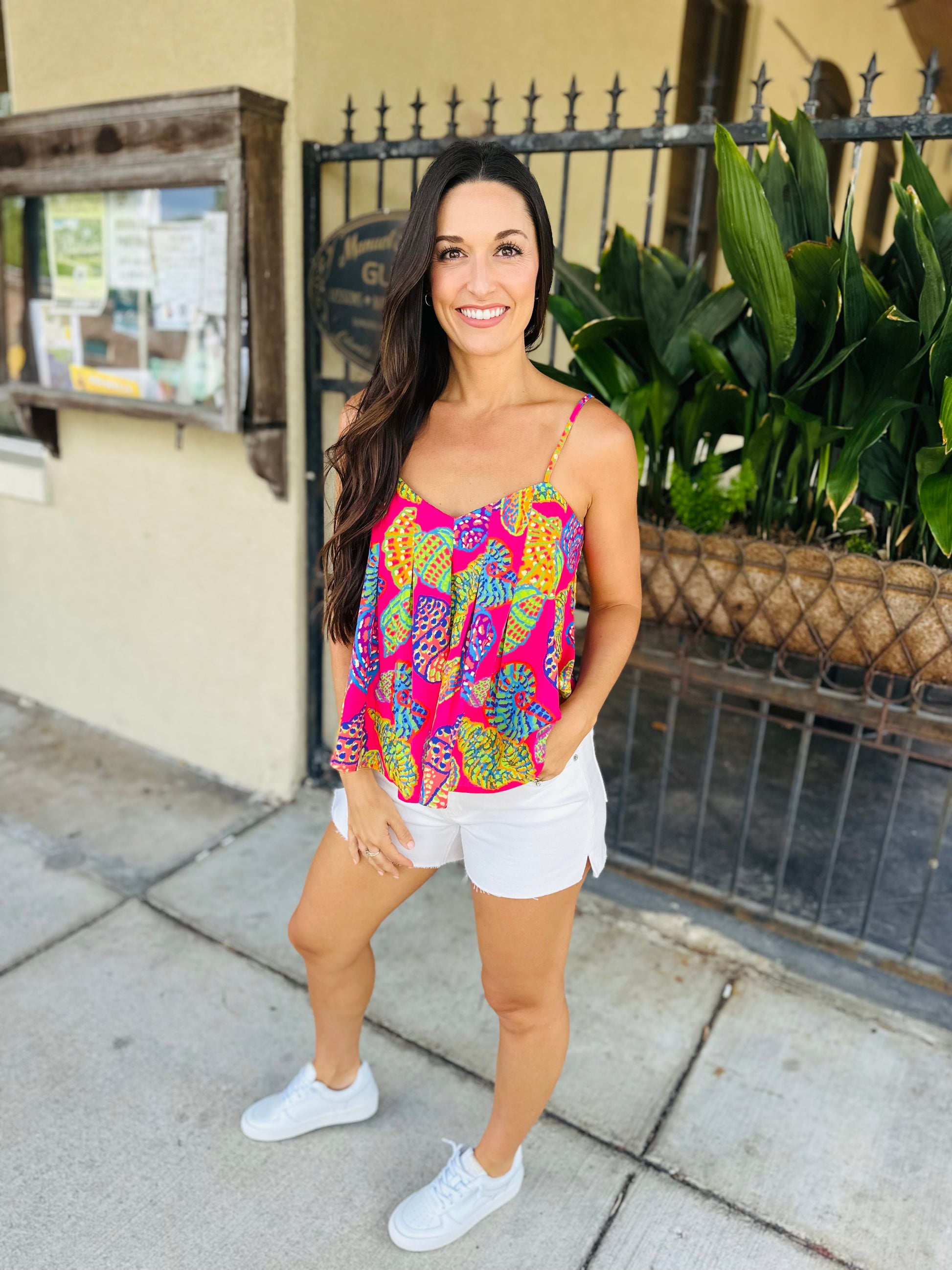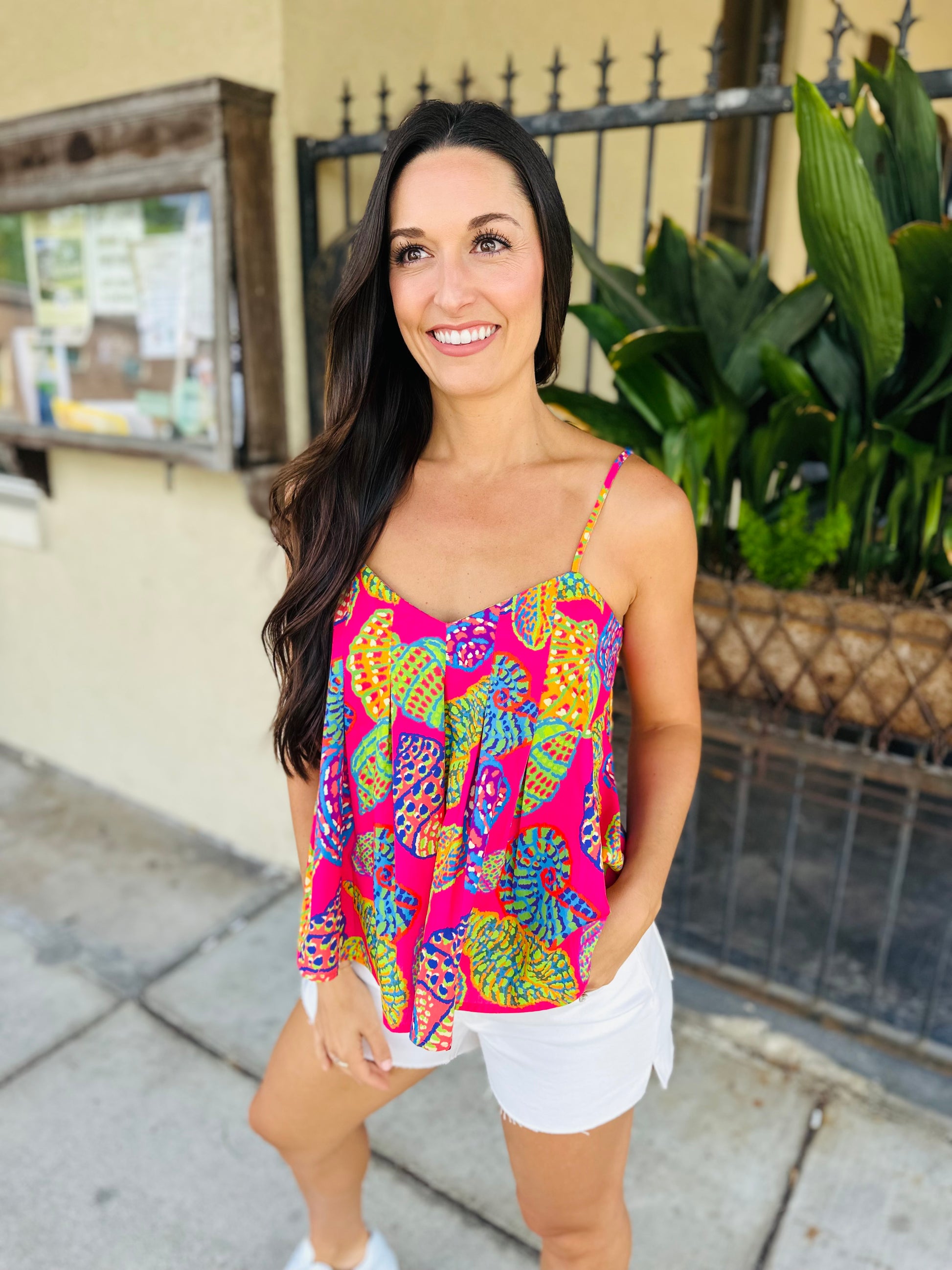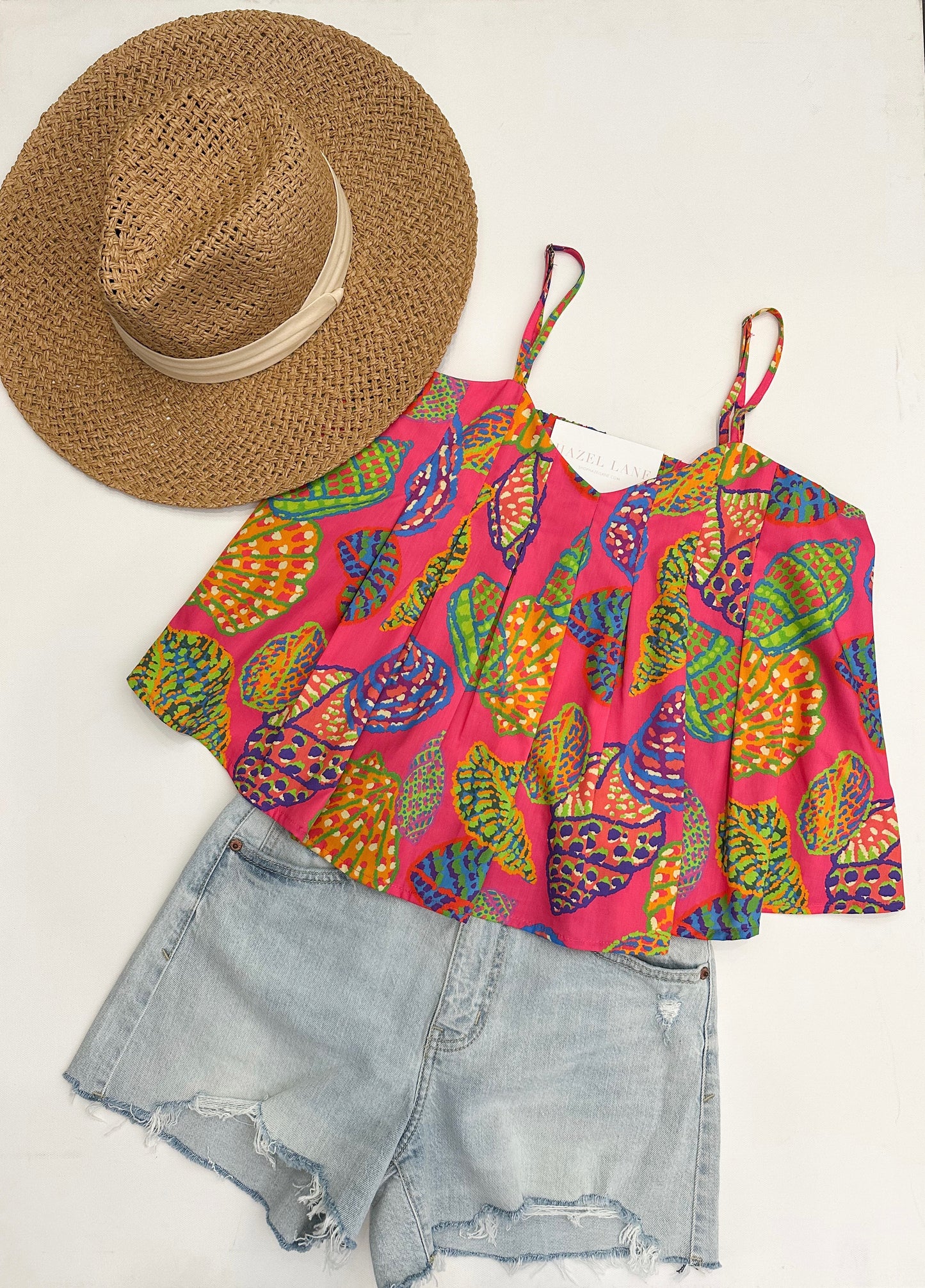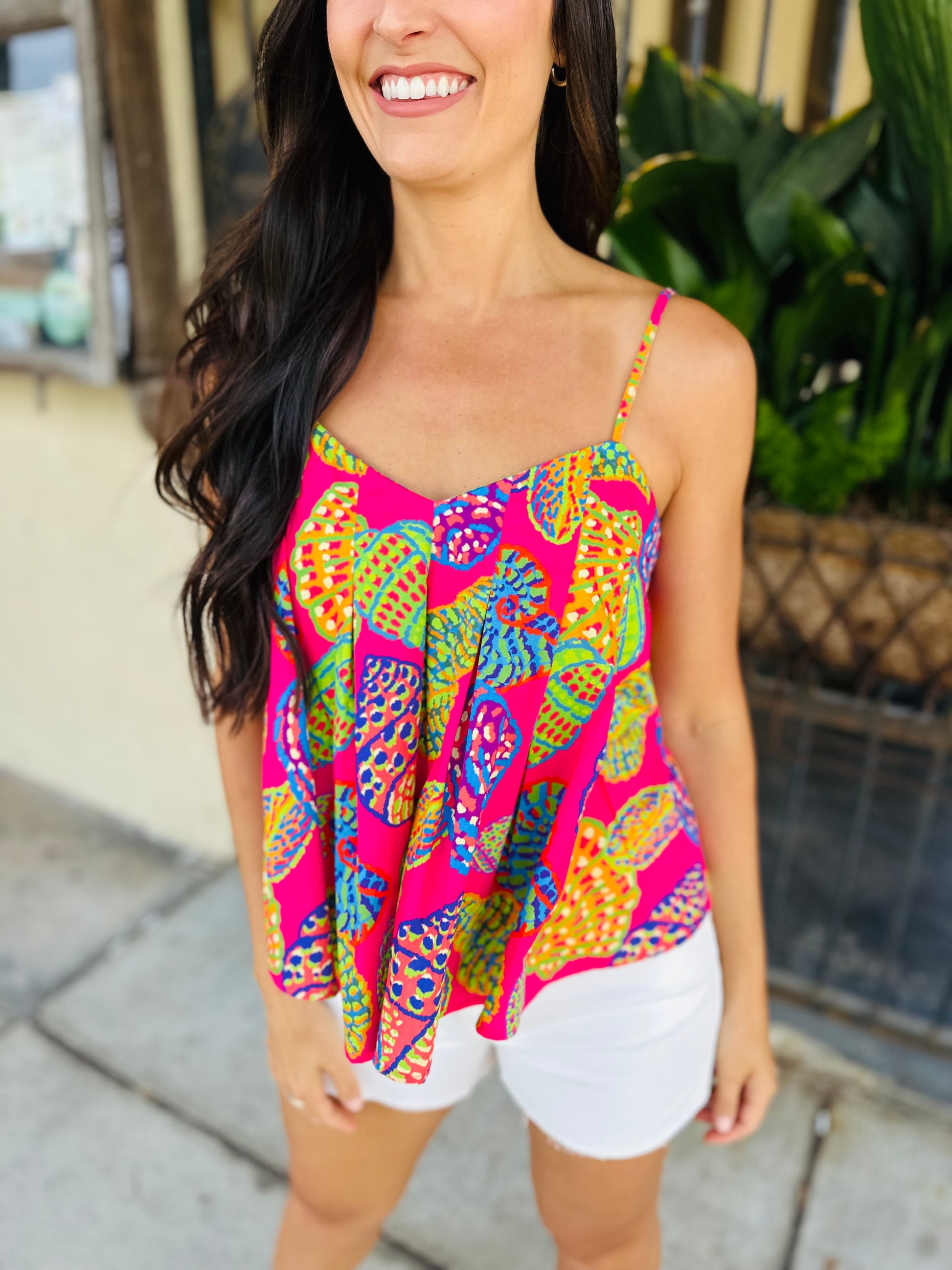 Shake up your summer style with the Rebstock Tank Top! This playful cami boasts a flowy bodice and eye-catching abstract shell print, available in a fun and flirty pink hue. A go-to favorite for your warm weather wardrobe!