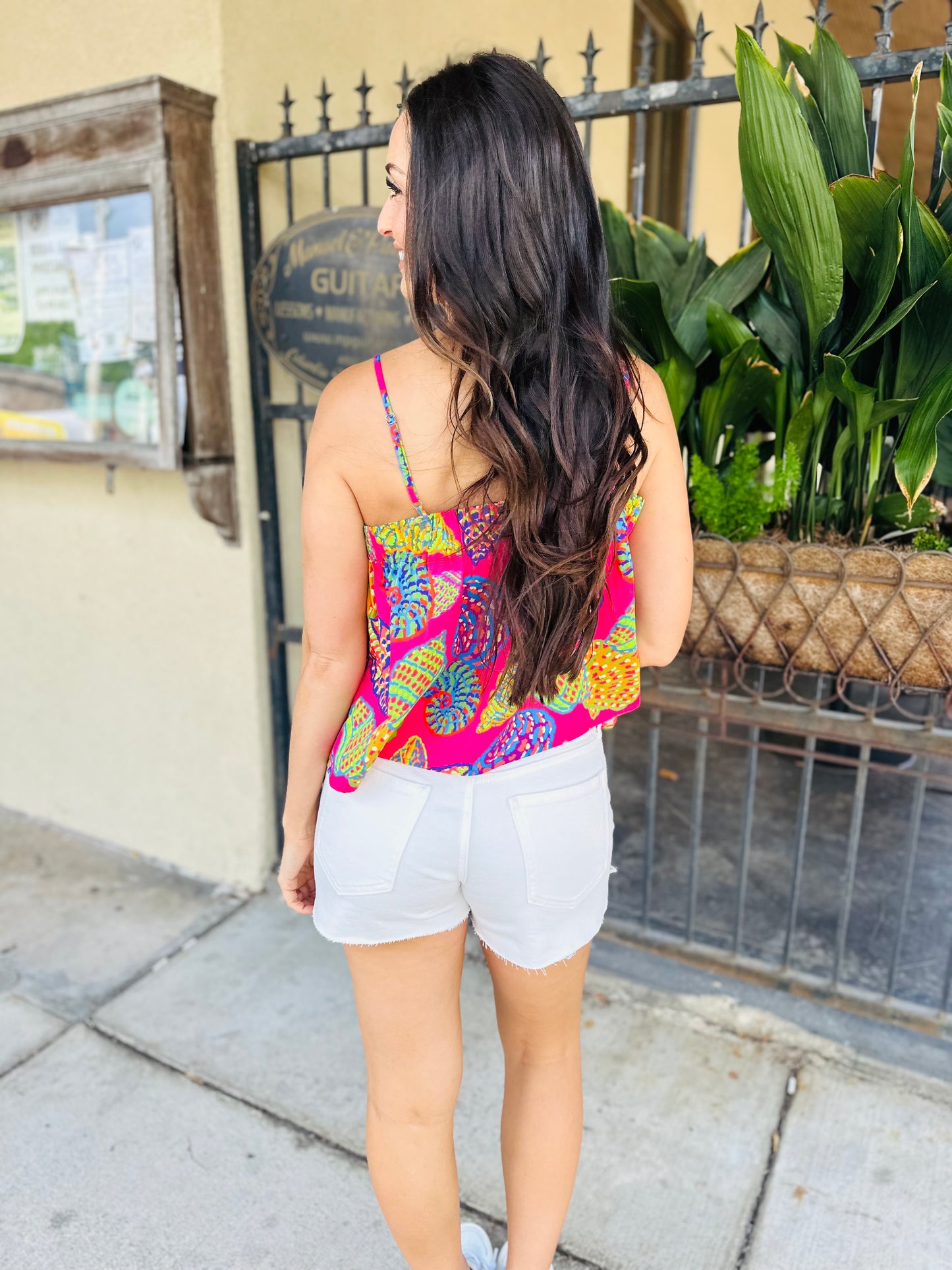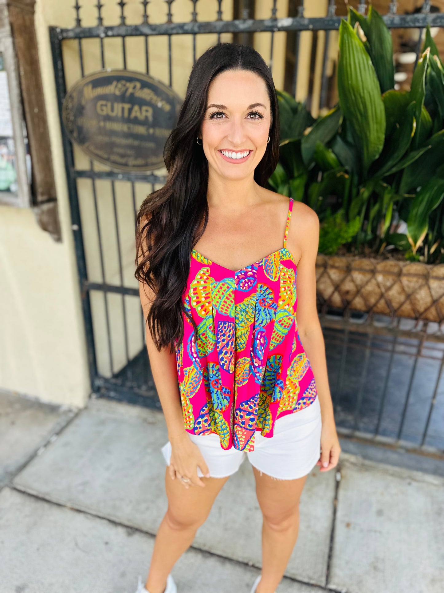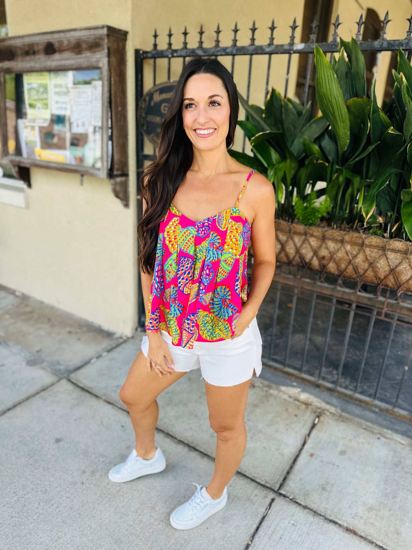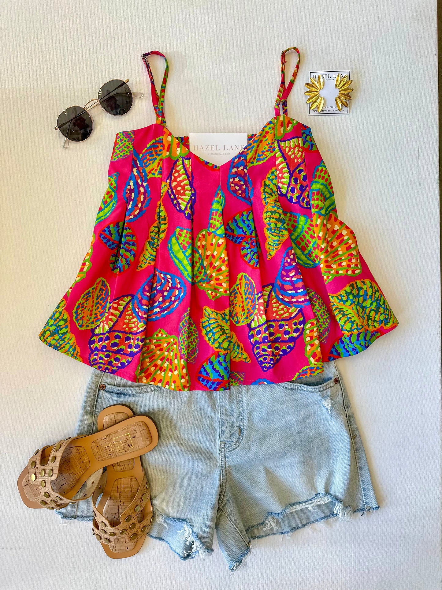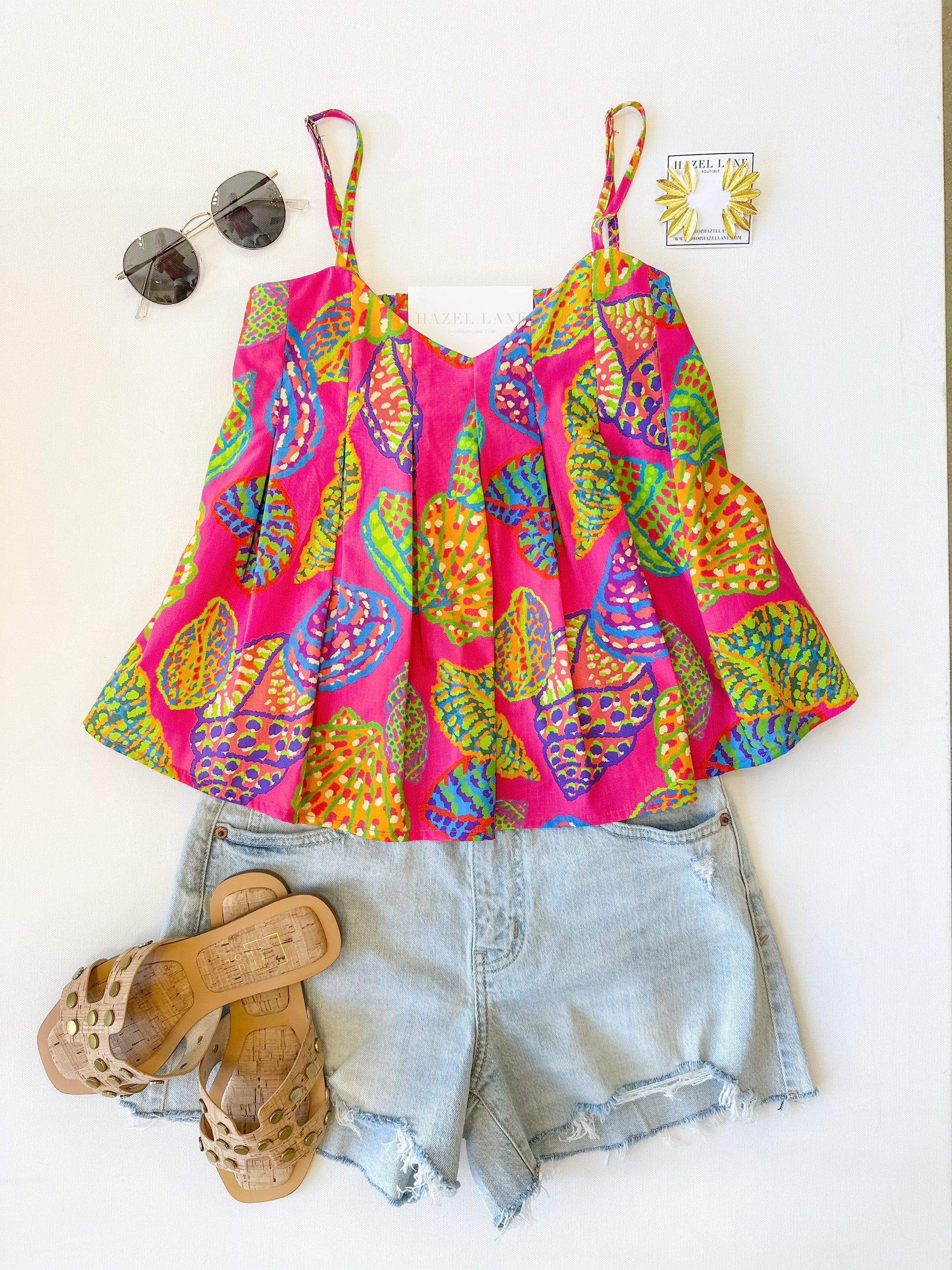 Shake up your summer style with the Rebstock Tank Top! This playful cami boasts a flowy bodice and eye-catching abstract shell print, available in a fun and flirty pink hue. A go-to favorite for your warm weather wardrobe!