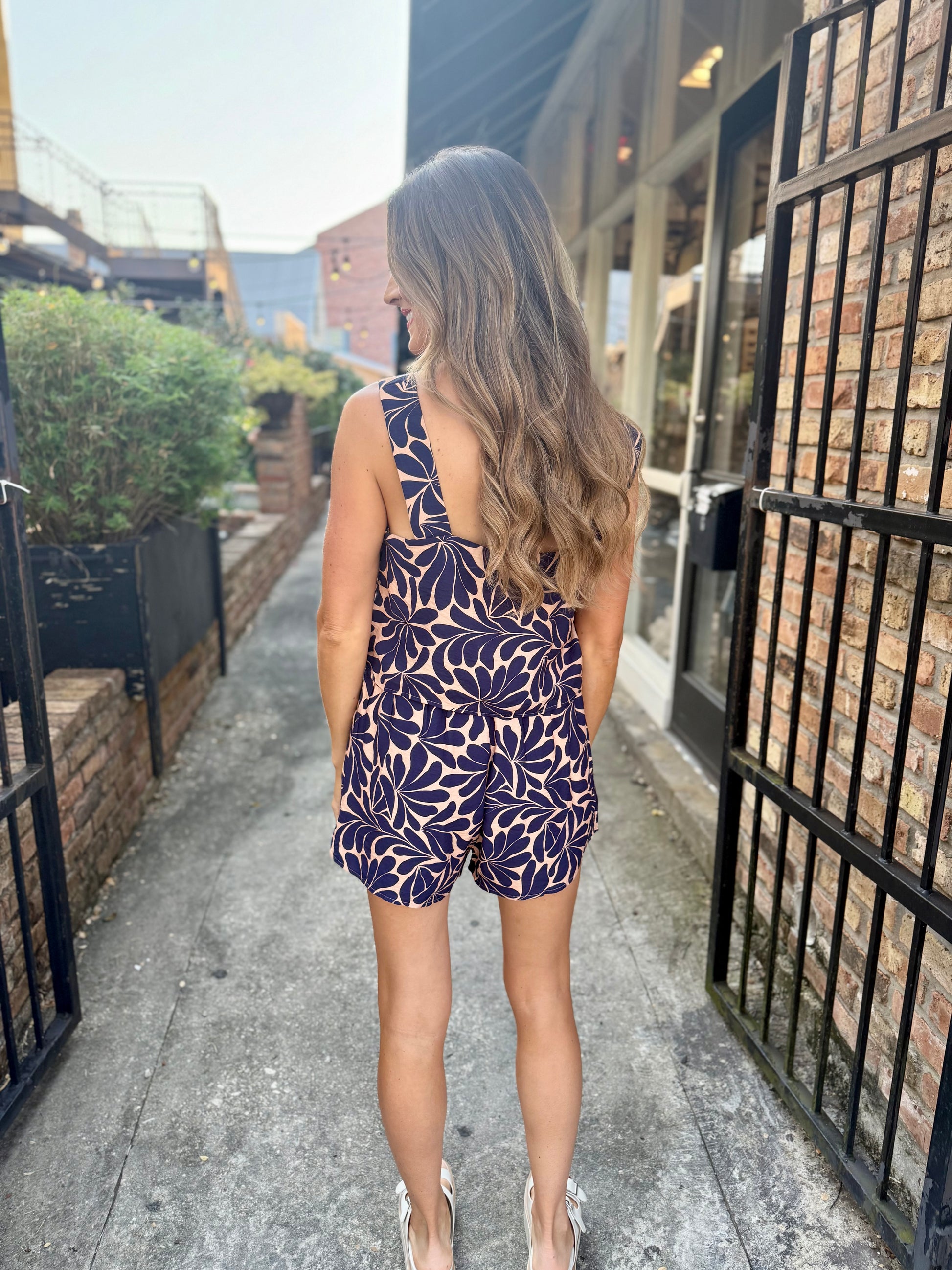 Turn heads with the Ricky Geometric 2 PC Set in navy and clay! Featuring a playful square neck top paired with matching shorts, this duo blends bold patterns with breezy comfort. Perfect for sunny days or casual outings, it’s your new go-to for effortless style with a fun, modern twist.