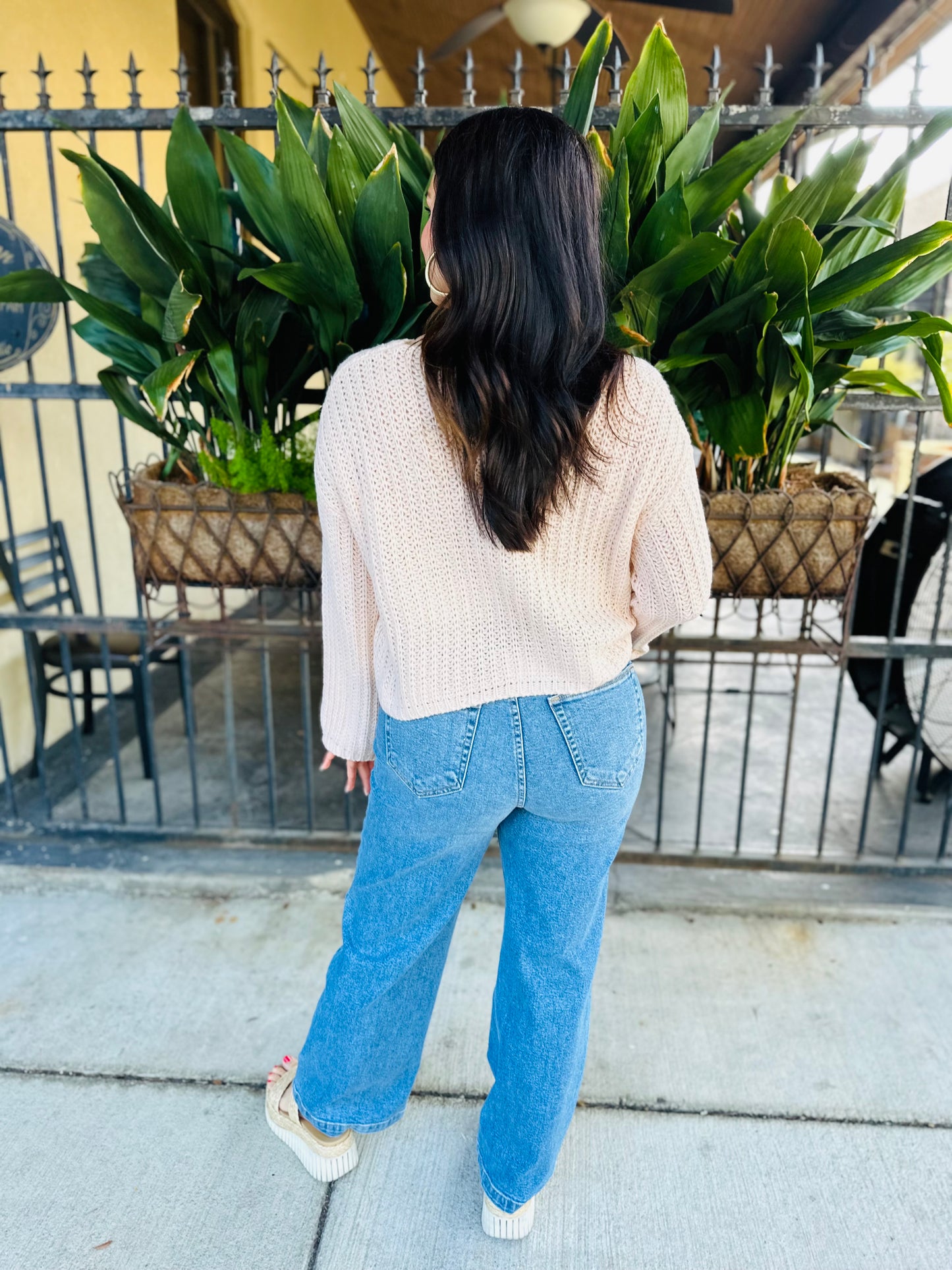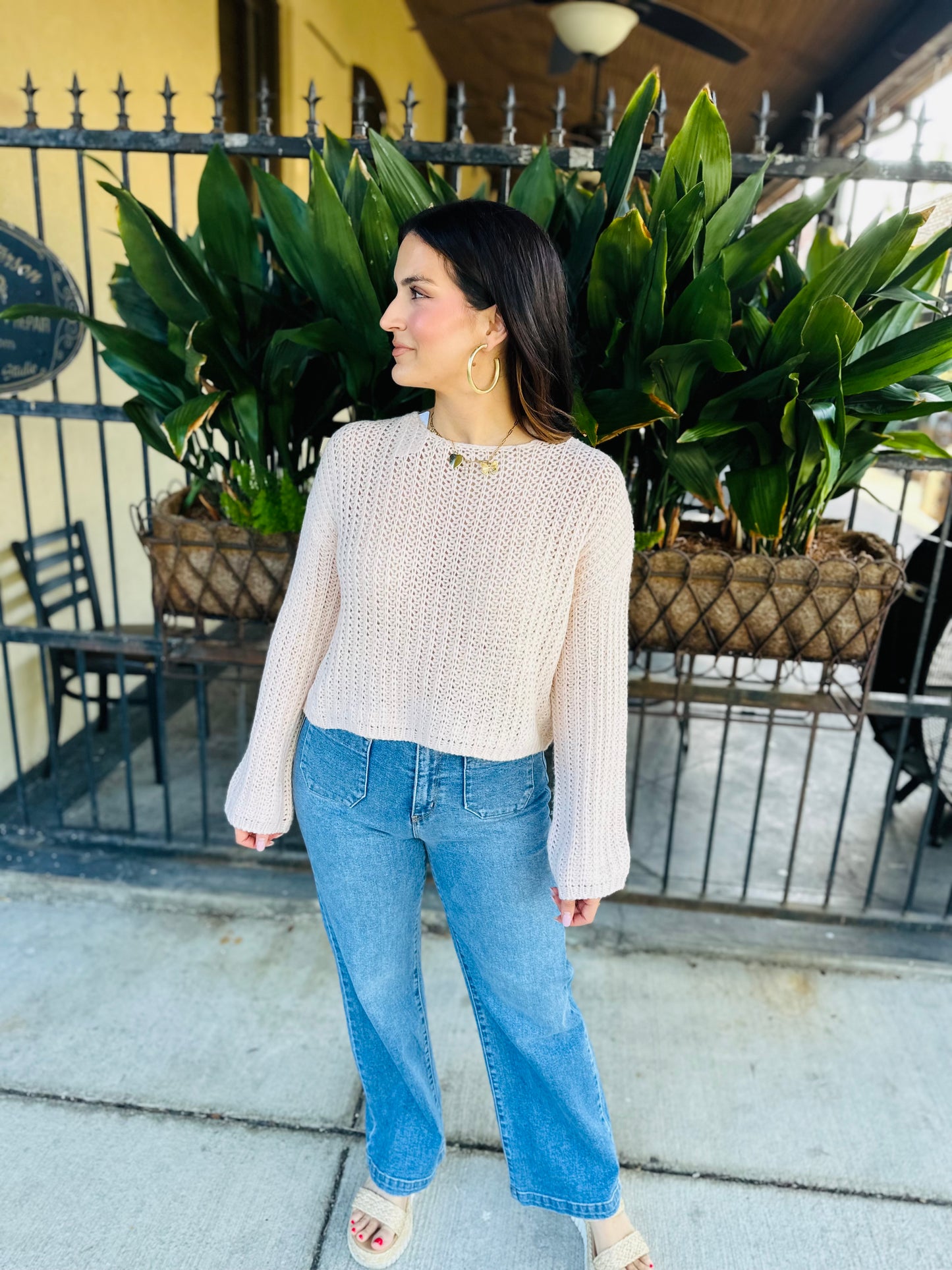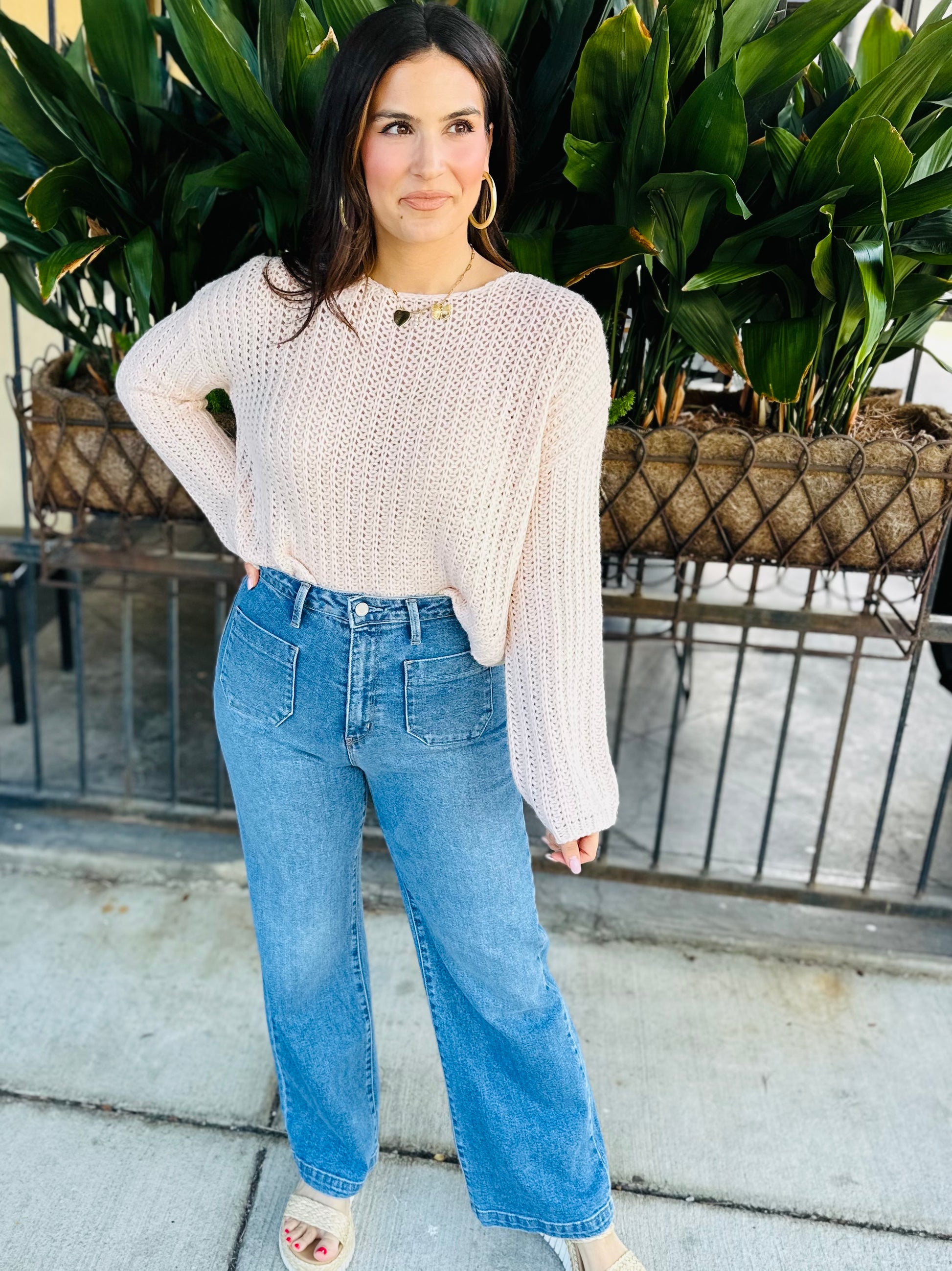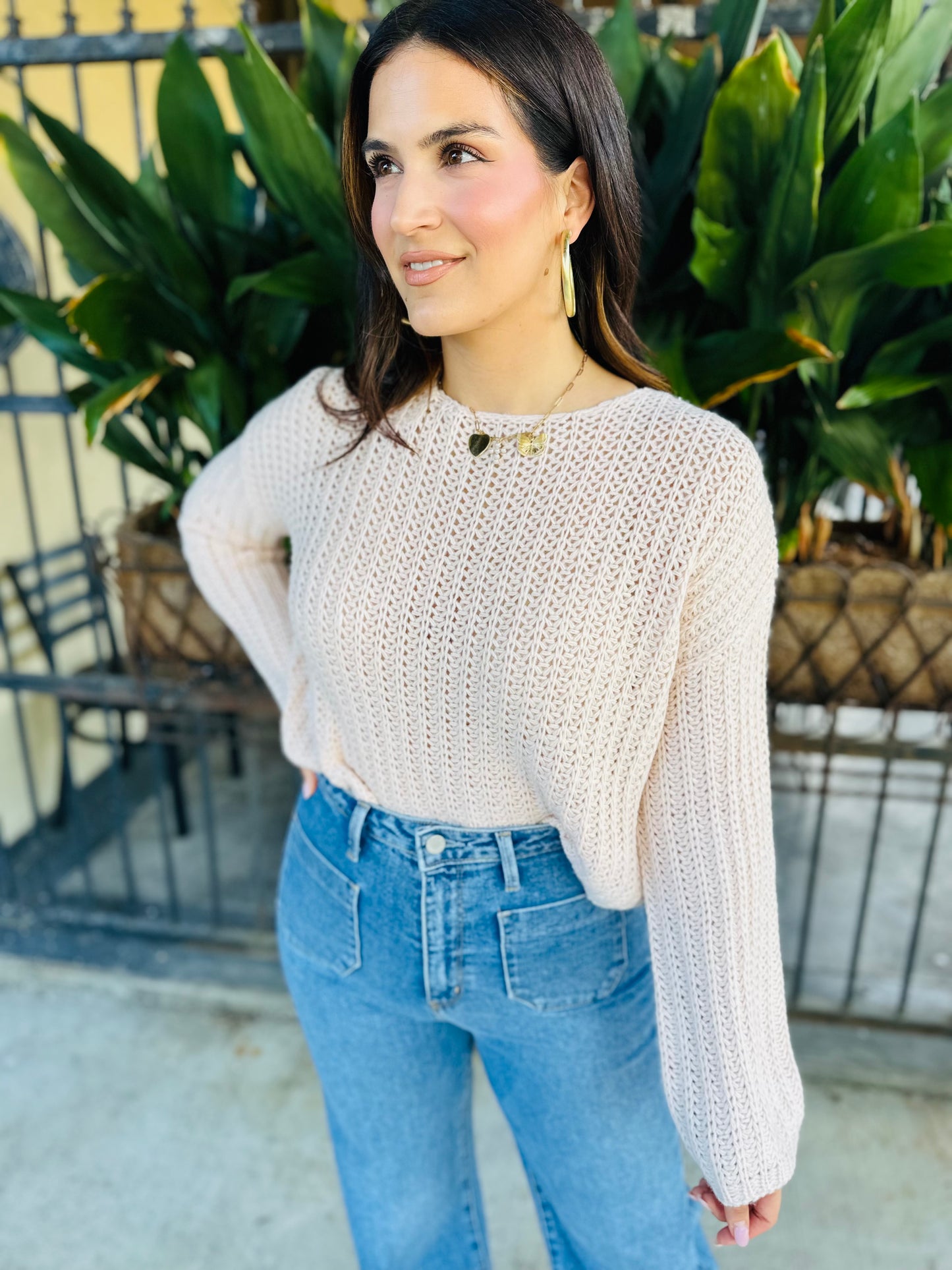 The Rosalia Sweater in blush is your new year-round favorite! Light enough to pair with shorts for a breezy summer look, yet cozy enough to layer with denim when the temperature drops. Its soft blush hue adds a playful pop to any outfit, making it perfect for mixing and matching through every season.