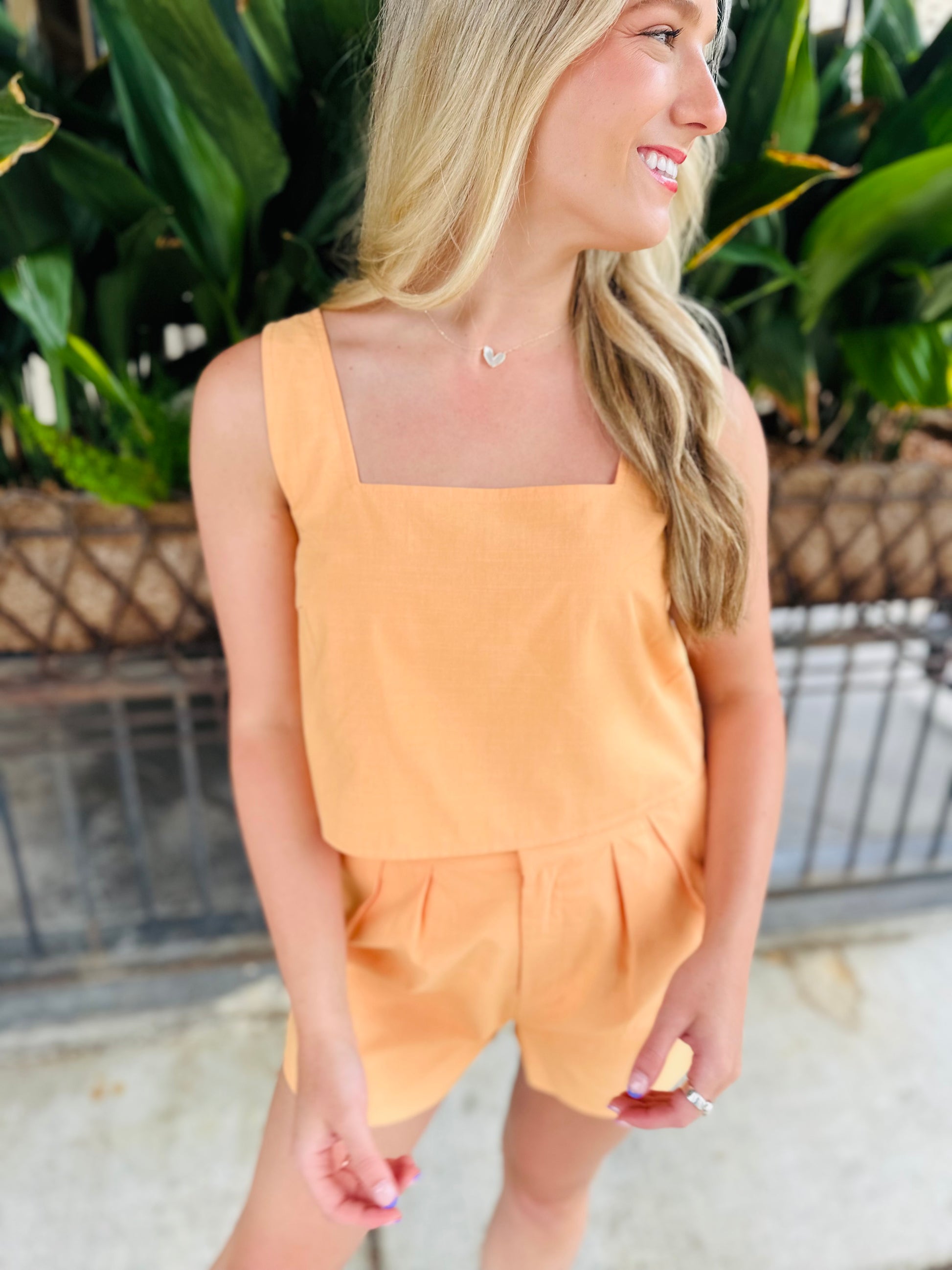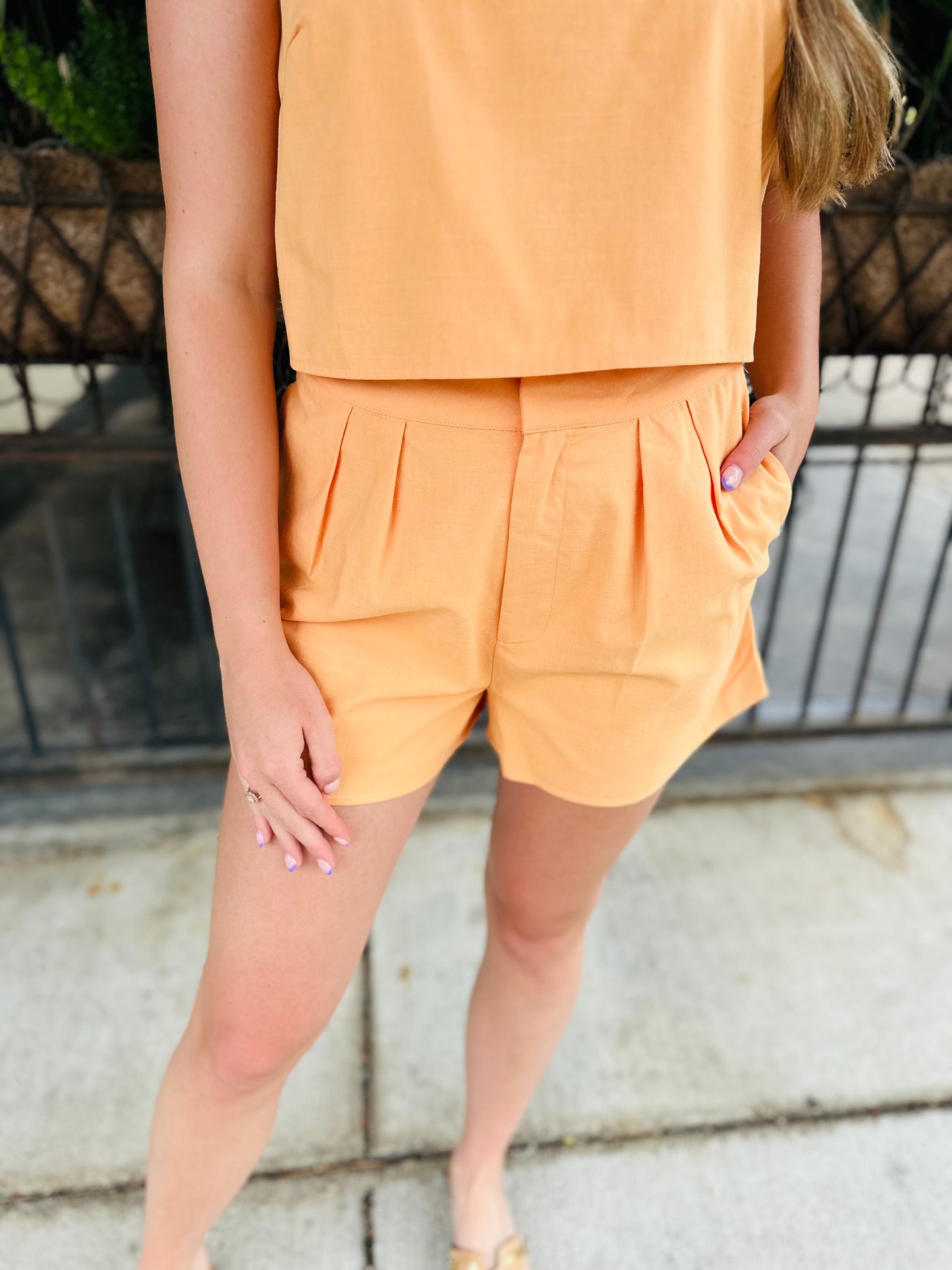 Bounce into summer with our Salter Pleated Linen Shorts in delicious Apricot! These high-waisted beauties combine breezy linen fabric with playful pleats for the perfect mix of comfort and style. Pair with the matching Salter Square Neck Linen Top for a set look or with a comfy bodysuit.