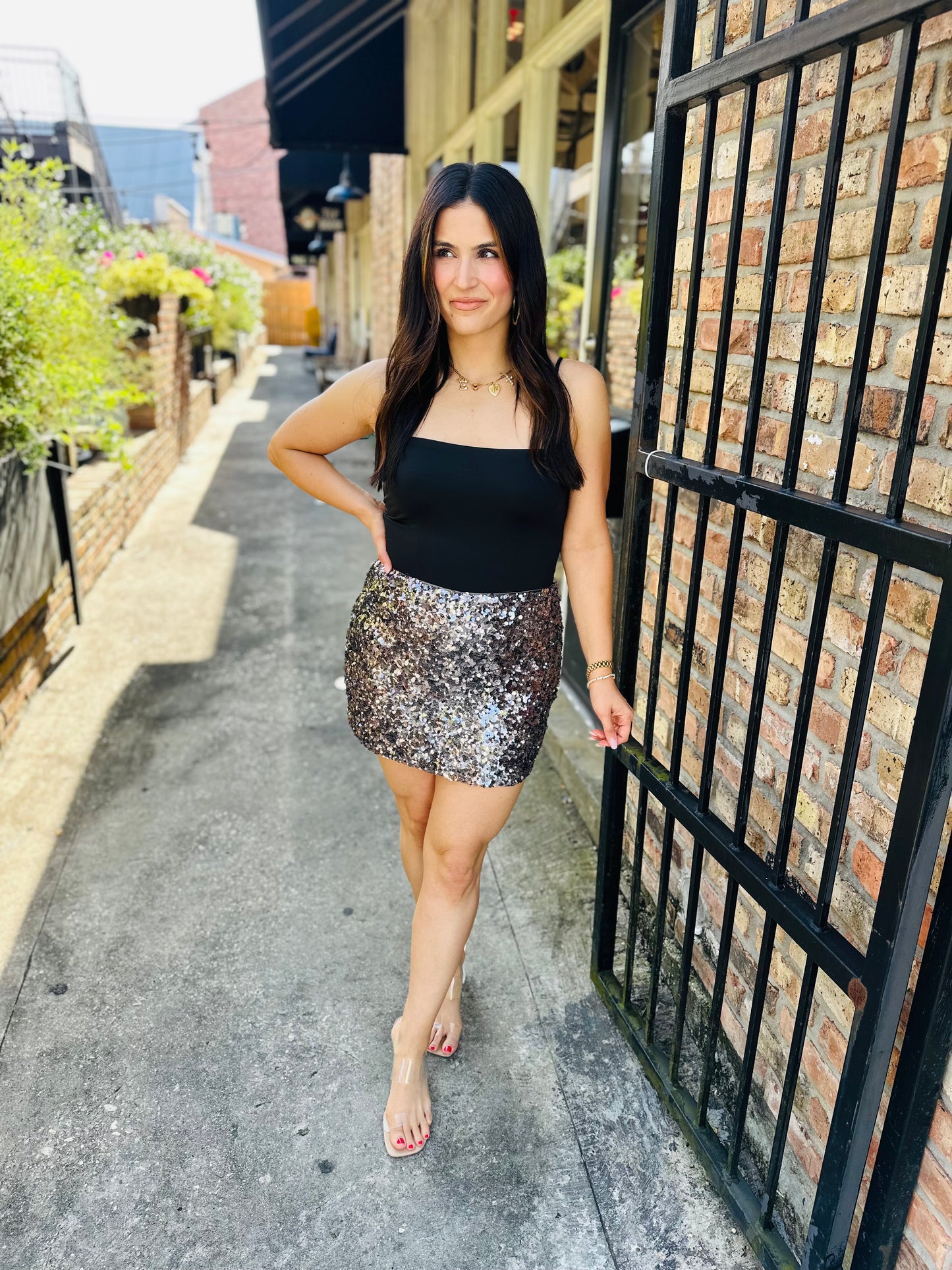 Shine bright in this playful sequin mini skirt featuring a straight fit that flatters every silhouette. The side zipper ensures easy wear, while the smooth lining adds comfort beneath the dazzling metal sequins. Perfect for turning heads at any party or night out!